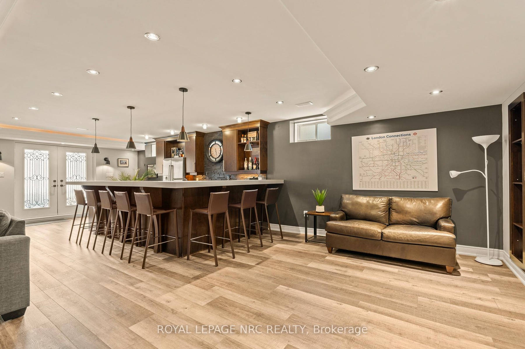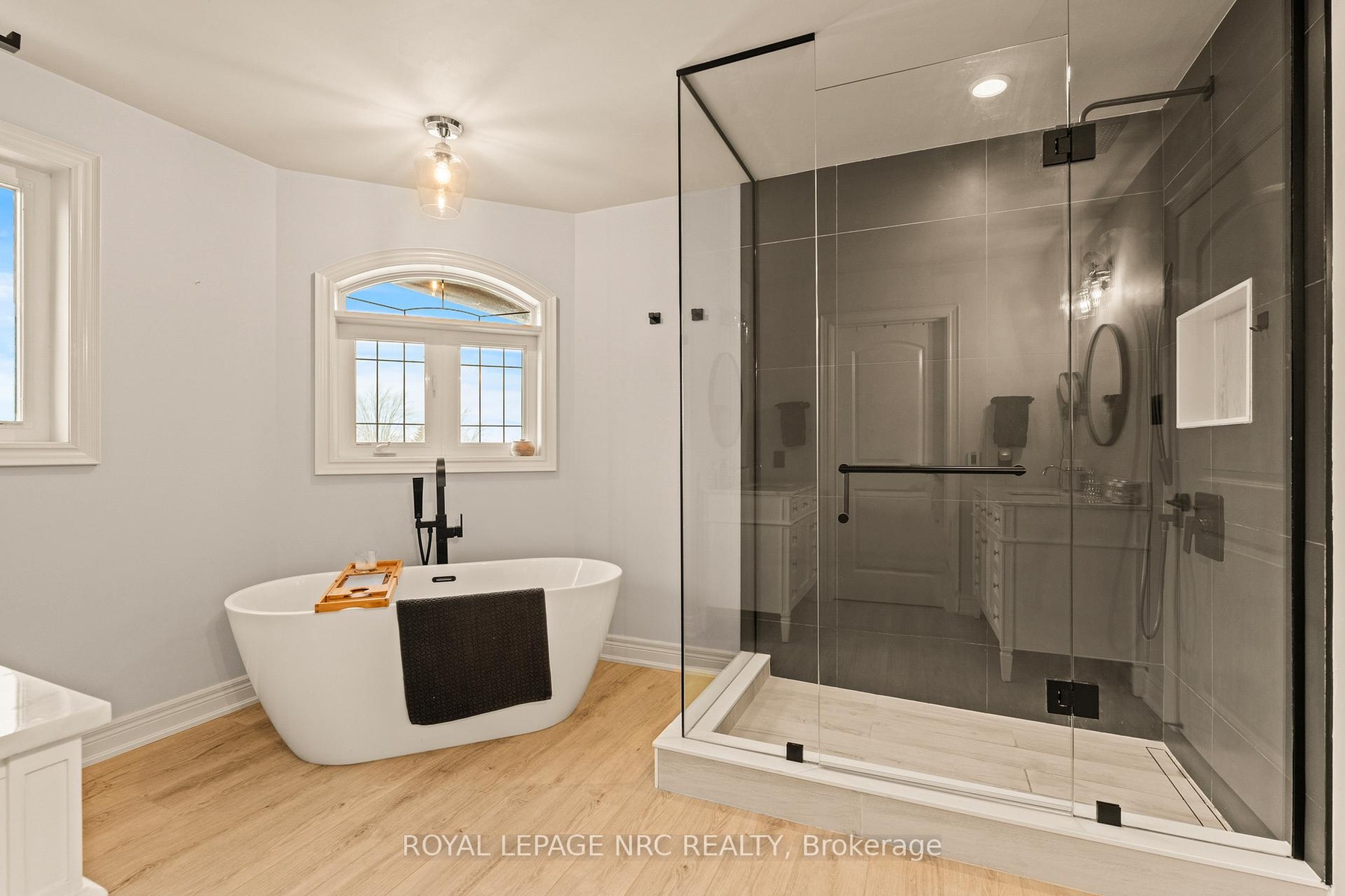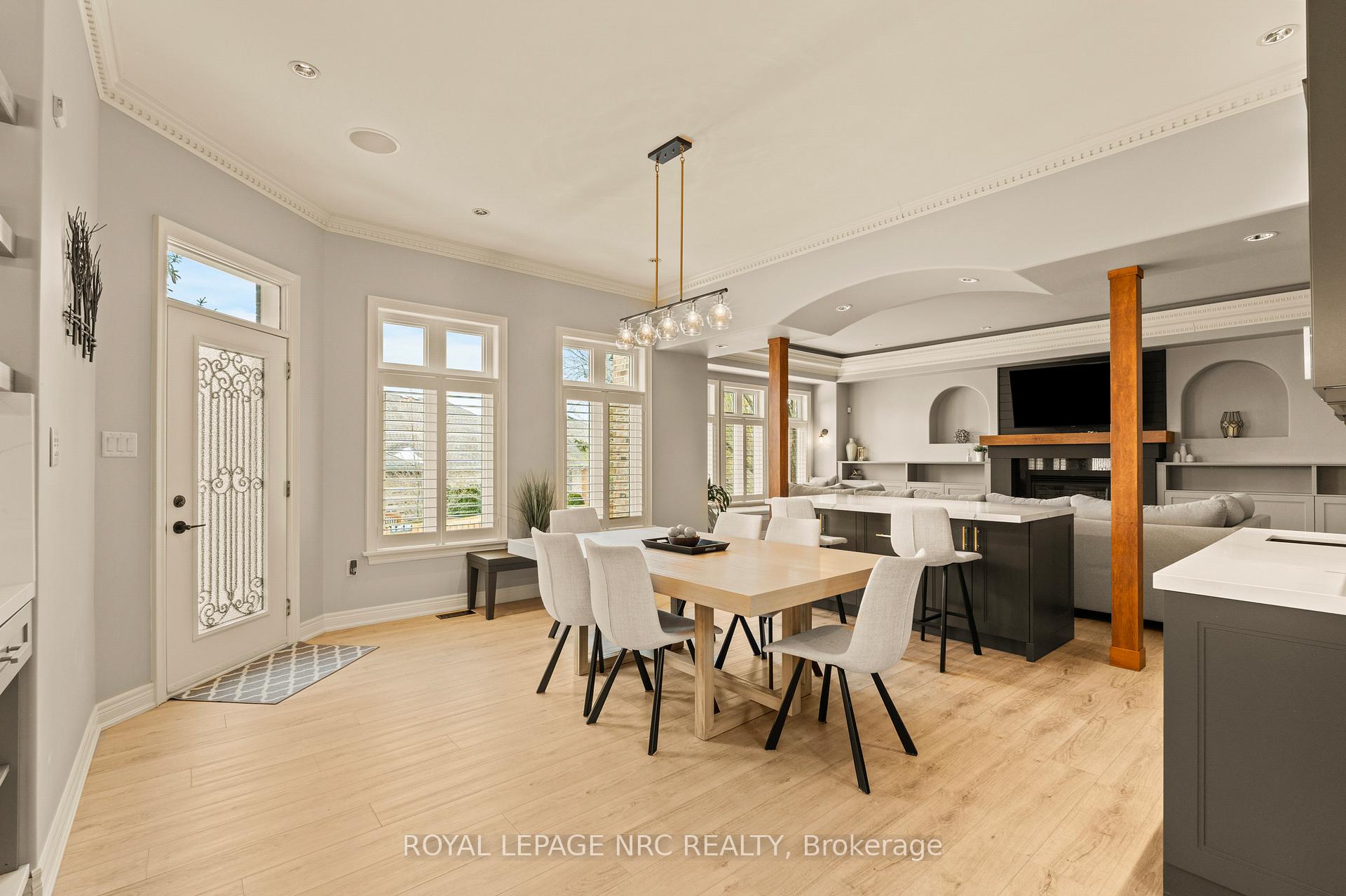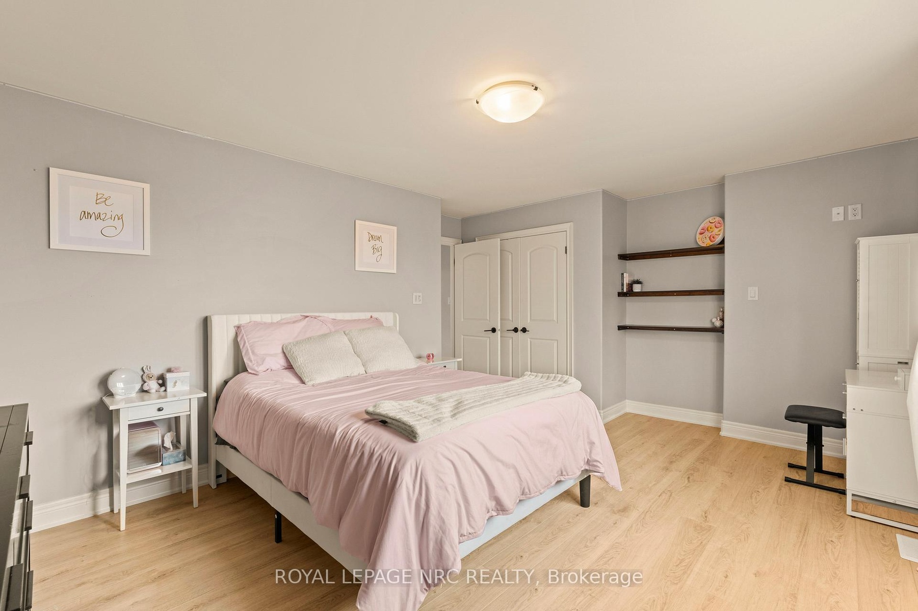 Welcome to a truly exceptional home in one of the most sought after neighborhoods in Grimsby, showcasing a generous open-concept main floor, thoughtful design, high-end upgrades, and impressive outdoor entertaining space. Close to all conveniences and great schools! From the moment you arrive, the exposed aggregate driveway and striking brick-and-stucco exterior set the tone. Step inside to a breathtaking two-storey front entrance with a floor-to-ceiling accent wall. At the heart of the home is a show-stopping chef's kitchen featuring quartz countertops, premium Kitchencraft cabinetry, built-in appliances, a double oven, and custom built-ins - perfectly designed for both entertaining and everyday living. The open-concept layout flows into spacious living areas, 10 foot high ceilings, highlighted by three gas fireplaces (one on the lower level). Upstairs offers four generously sized bedrooms, including a luxurious primary retreat with walk-out balcony and spa-inspired ensuite. Convenient upper-level laundry adds everyday practicality, while a second laundry area is located in the finished basement. The fully finished lower level (with spray foam insulation) expands your living space with a large family room, wet bar, additional bedroom, and a 3-piece bath, separate entrance - ideal for guests, teens, or multigenerational living. Step outside to your private backyard oasis: a saltwater pool with waterfall feature, new pool pump and motor ,fresh liner, and a brand-new Cal Spa hot tub. Entertain all summer long with dual gas BBQ hookups, ceiling speakers outdoors, and a rare outdoor bathroom complete with shower and vanity. With 3,885 sq ft above grade (with additional finished lower level), a double car garage plus parking for four, this is a rare opportunity to own a move-in-ready home that truly delivers on comfort and everyday luxury