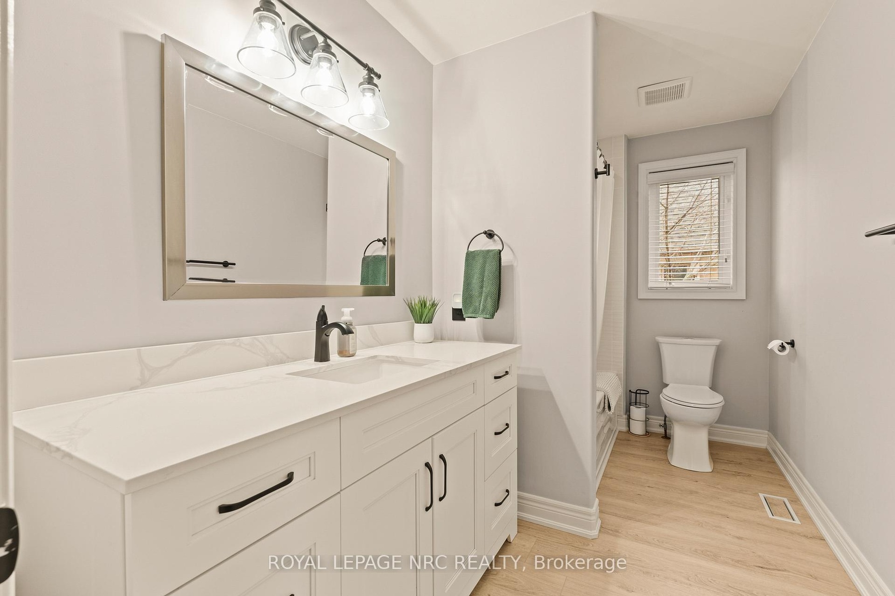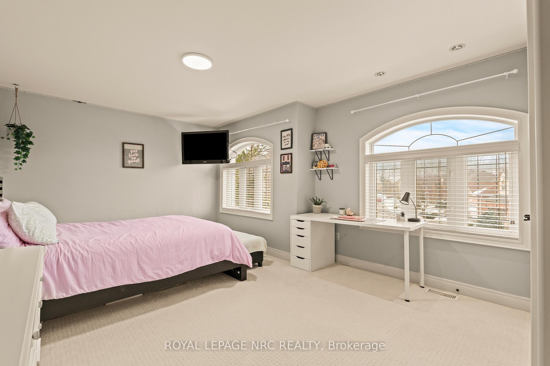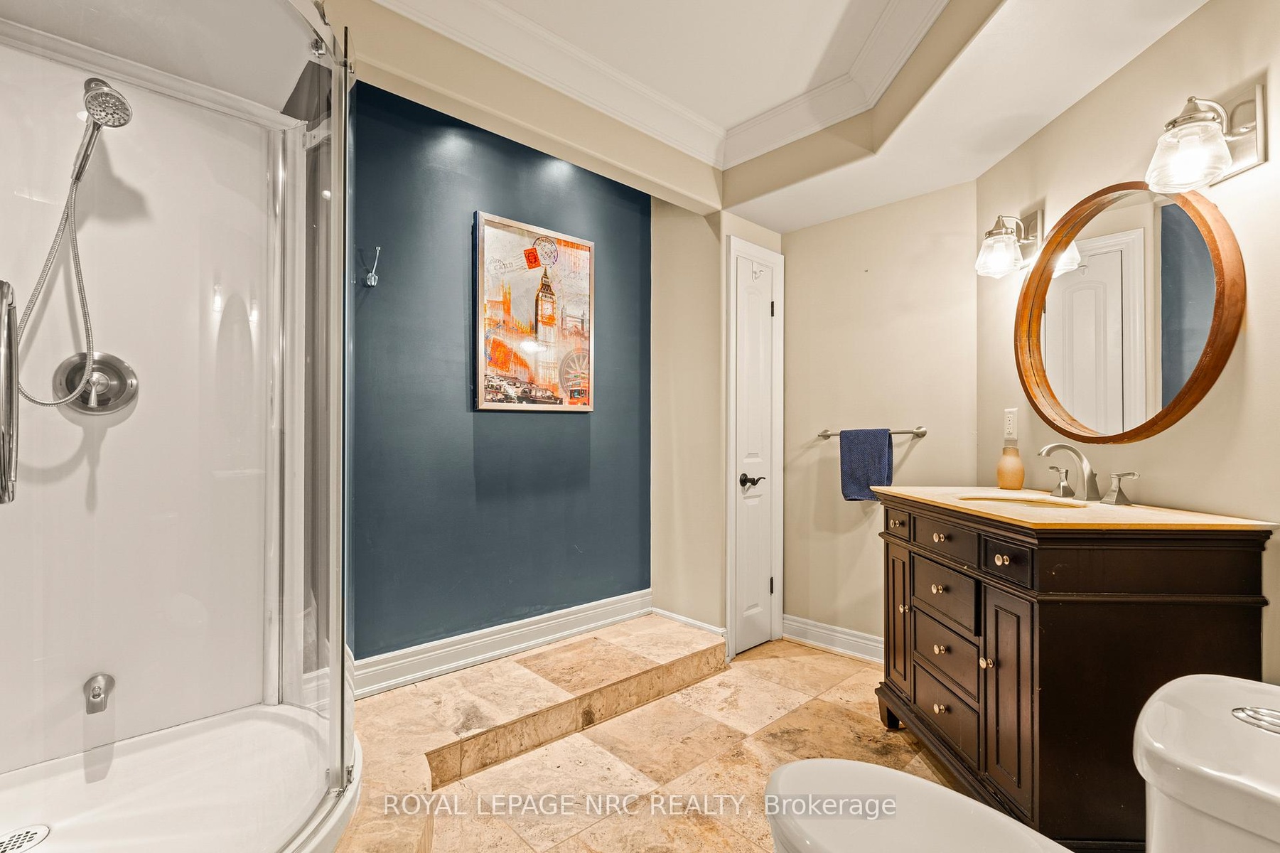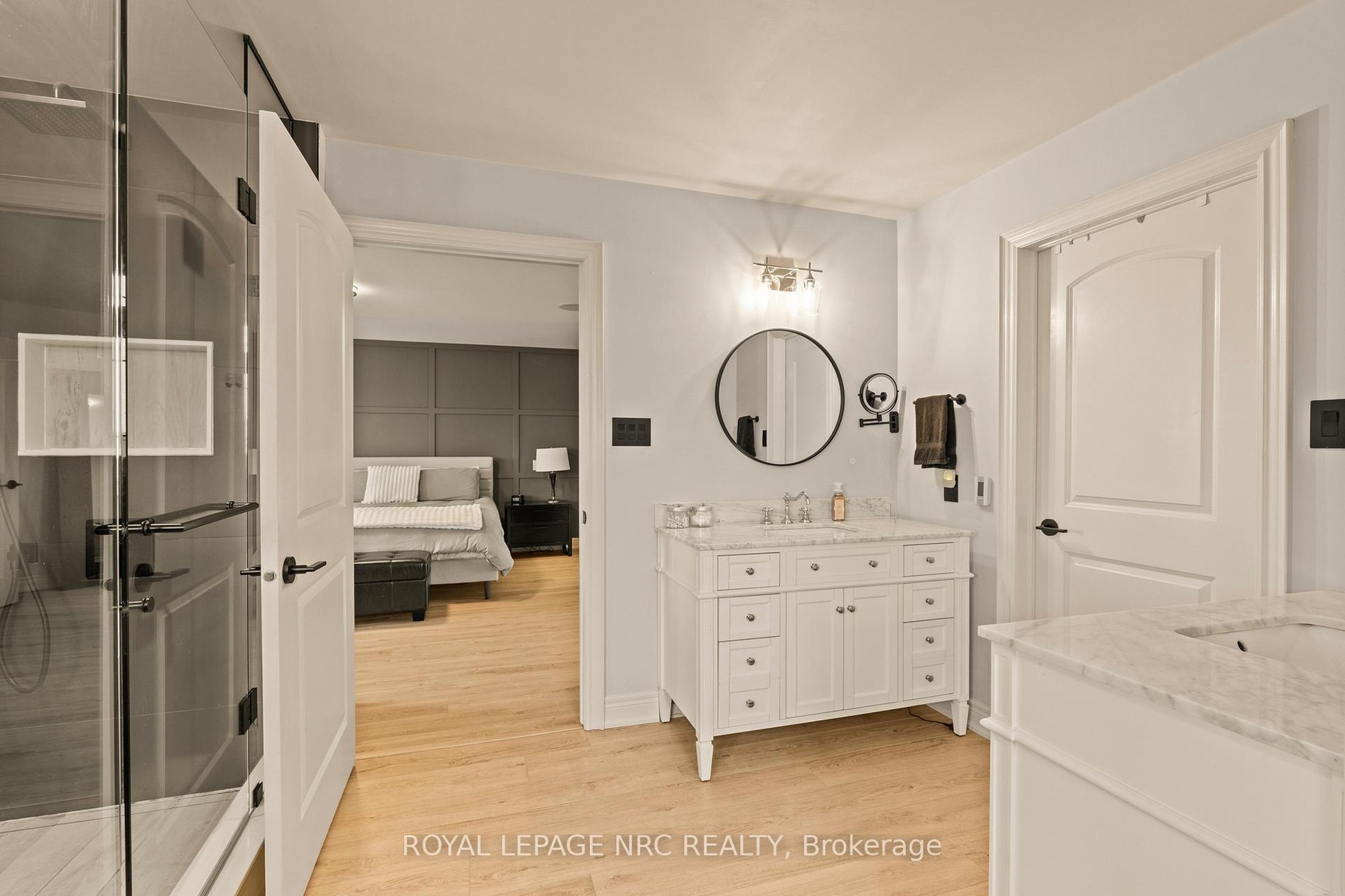 Welcome to a truly exceptional home in one of the most sought after neighborhoods in Grimsby, showcasing a generous open-concept main floor, thoughtful design, high-end upgrades, and impressive outdoor entertaining space. Close to all conveniences and great schools! From the moment you arrive, the exposed aggregate driveway and striking brick-and-stucco exterior set the tone. Step inside to a breathtaking two-storey front entrance with a floor-to-ceiling accent wall. At the heart of the home is a show-stopping chef's kitchen featuring quartz countertops, premium Kitchencraft cabinetry, built-in appliances, a double oven, and custom built-ins - perfectly designed for both entertaining and everyday living. The open-concept layout flows into spacious living areas, 10 foot high ceilings, highlighted by three gas fireplaces (one on the lower level). Upstairs offers four generously sized bedrooms, including a luxurious primary retreat with walk-out balcony and spa-inspired ensuite. Convenient upper-level laundry adds everyday practicality, while a second laundry area is located in the finished basement. The fully finished lower level (with spray foam insulation) expands your living space with a large family room, wet bar, additional bedroom, and a 3-piece bath, separate entrance - ideal for guests, teens, or multigenerational living. Step outside to your private backyard oasis: a saltwater pool with waterfall feature, new pool pump and motor ,fresh liner, and a brand-new Cal Spa hot tub. Entertain all summer long with dual gas BBQ hookups, ceiling speakers outdoors, and a rare outdoor bathroom complete with shower and vanity. With 3,885 sq ft above grade (with additional finished lower level), a double car garage plus parking for four, this is a rare opportunity to own a move-in-ready home that truly delivers on comfort and everyday luxury
