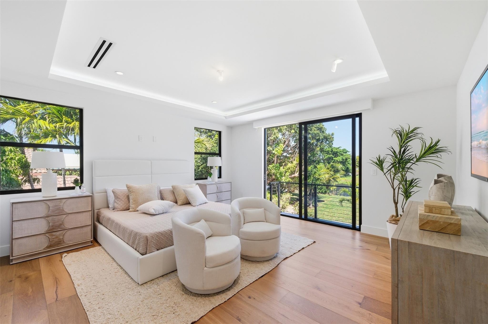 Brand New Construction from Ground up. Beautiful Waterfront home on Lake Mangonia w. resort style backyard and pool. Tons of covered patio space to get out of the sun and massive fenced in paver patio. Outside of fence has a giant yard for sports and kids to play. 3,800sqft home with 10ft ceilings throughout and 20ft in the living/tv area. 20ft TV wall. Smart toilets in full baths. 2 Master bedrooms w bathtubs and LED mirrors. Tray ceilings in master bed and in dining area. LED in master closets and kitchen. 2Sub Zero fridges. Mud room off garage with 2nd fridge. Private gated community with 24hour security and access to tennis courts. Located near the Palm Beach Outlet mall, fine dining in Palm Beach, I95, Palm Beach Airport, championship golf courses & 10 minutes to downtown West Palm