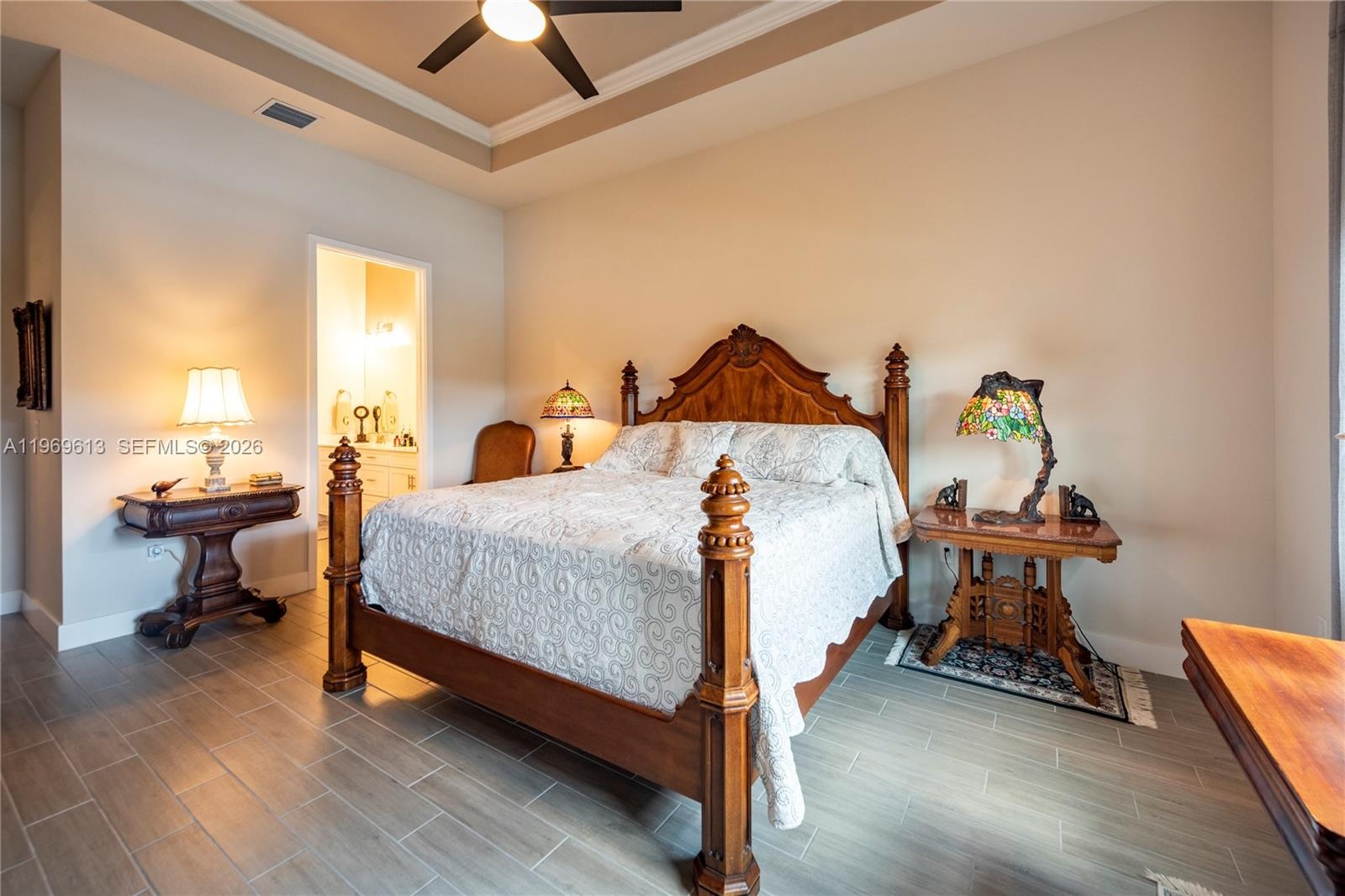 Welcome home to the Falls at Parkland, and a beautifully appointed 3 bedroom, 2 bath 55+ Villa, with upgraded 42 inch kitchen cabinets, under cabinet lighting, white quartz countertops with huge island for enjoying casual meals, upgraded baths with neutral tile, California closets, tray ceilings, custom painting throughout, easy to maintain plank style tile flooring. Relax on screen back porch with serene lake view. Garage has epoxy coated flooring, with longest driveway in the community. Walk to mailbox, and guest parking. Resort style Clubhouse designed for active and vibrant living, complete with heated pool, spa, cafe, sauna, tennis, pickleball courts, and an awesome social calendar. Immaculate, move in condition.