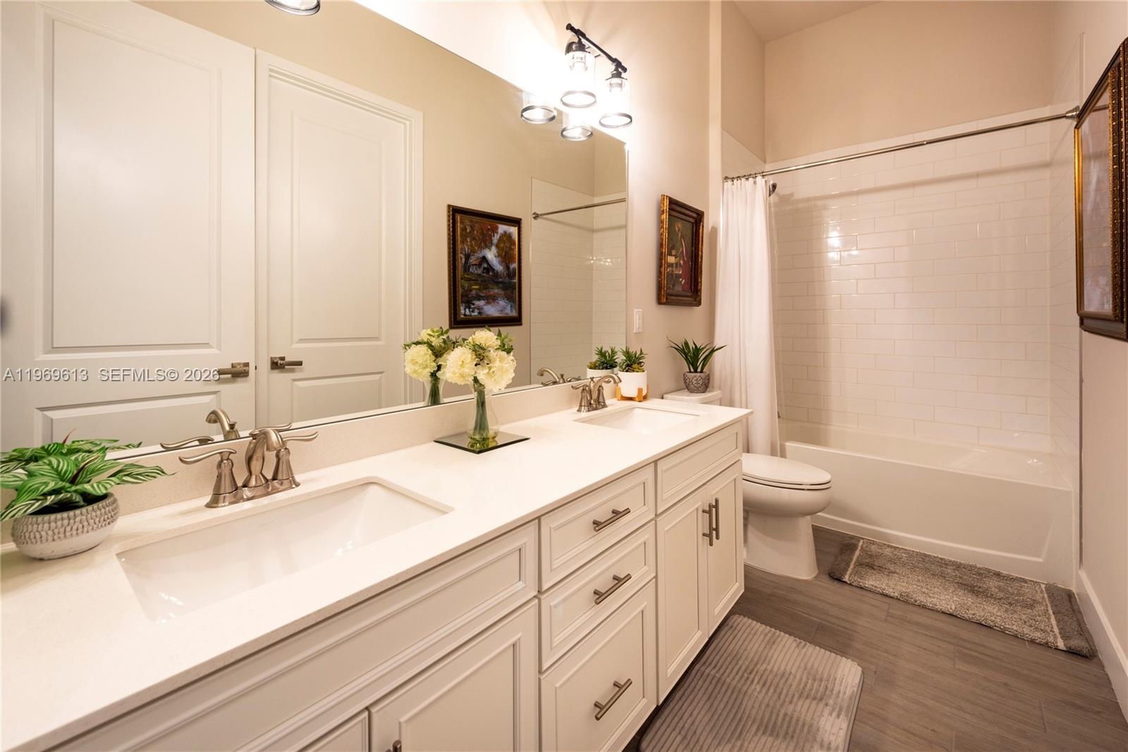 - Hall Bath with Tub and Shower, Dual Sinks