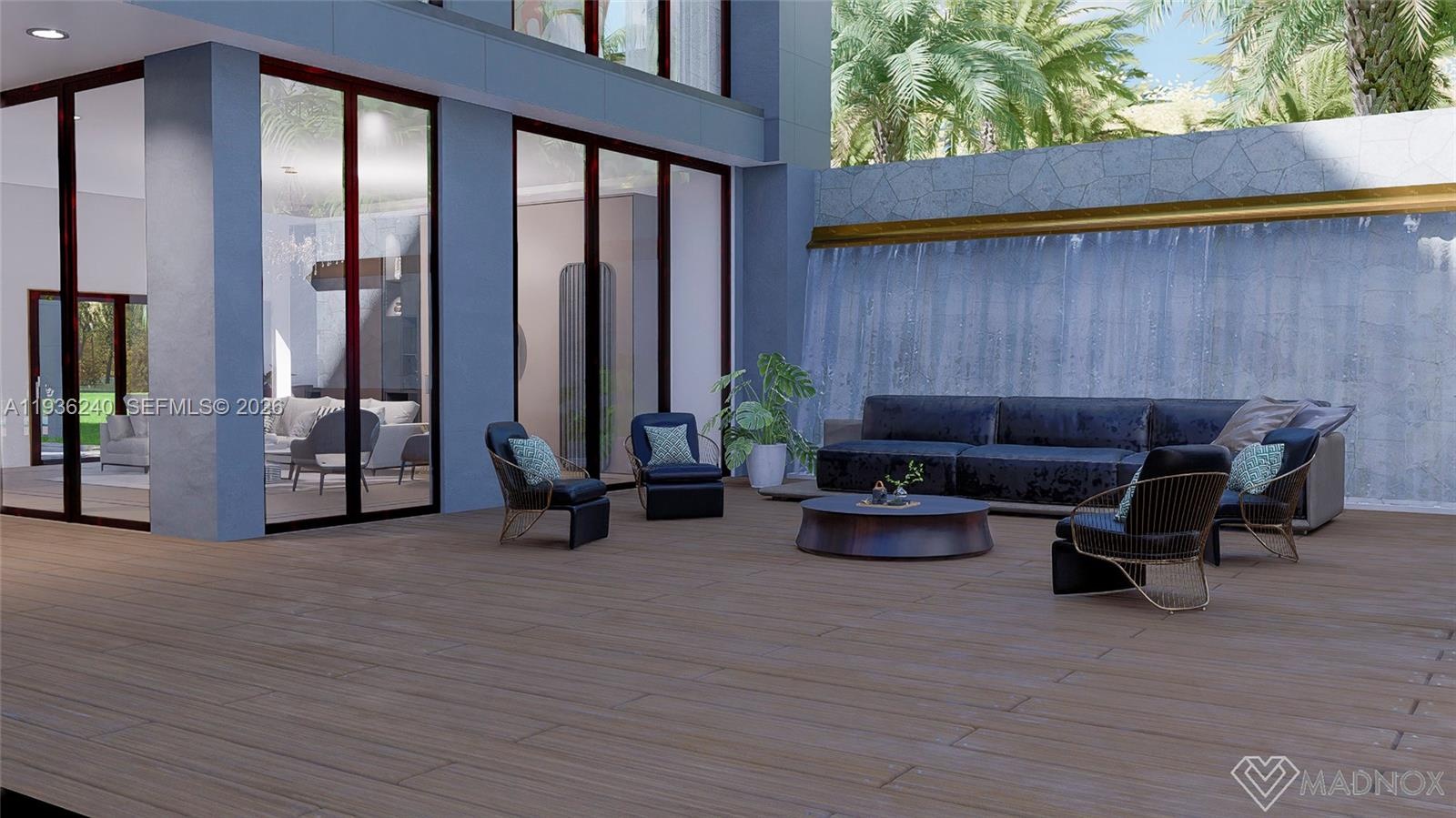Designed for refined living, the home features six bedrooms, seven full bathrooms, and two half baths, along with a private elevator, home theater, wine room, sauna, sport court, and oversized four-car garage. Buyers have the opportunity to personalize interior finishes with a professional designer.