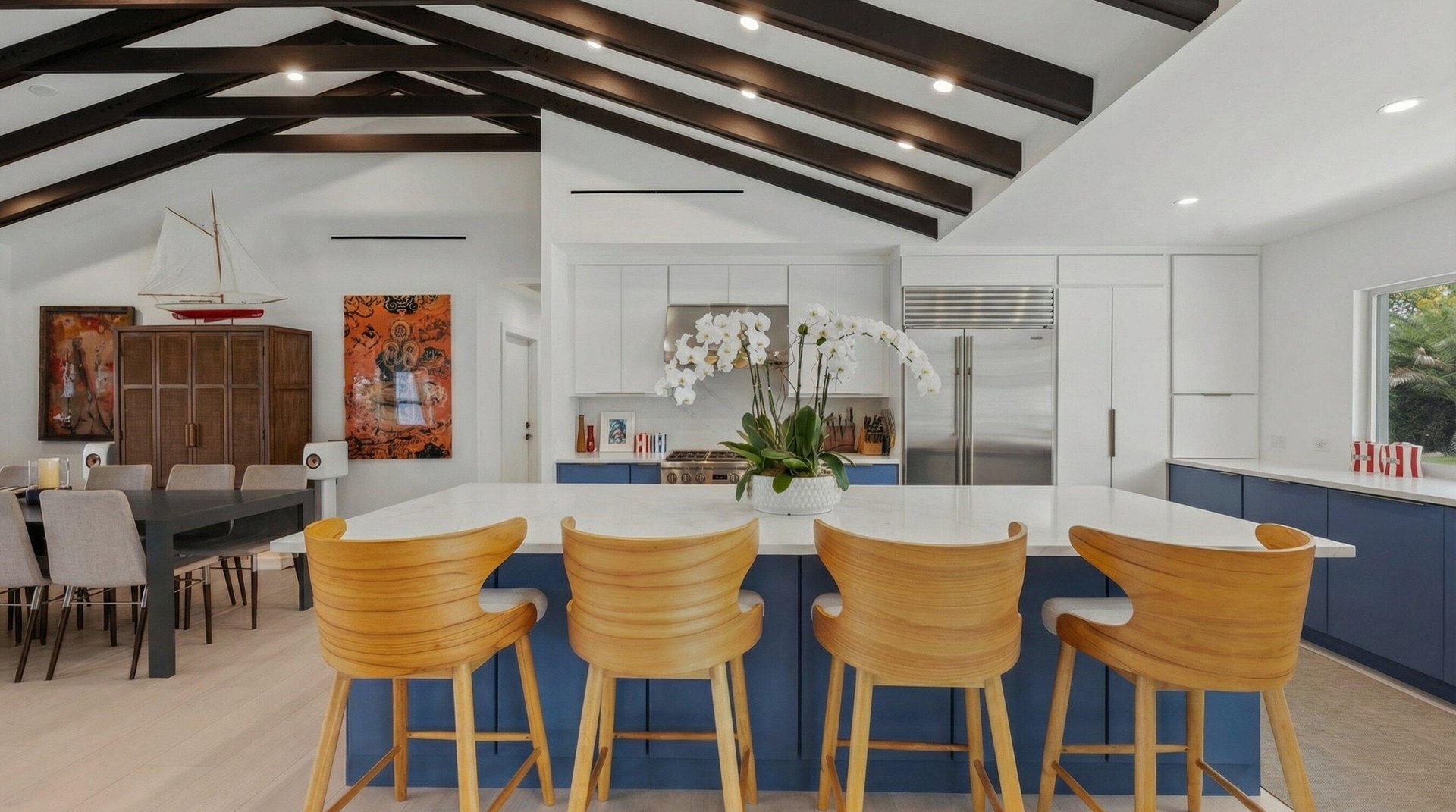 A private oasis awaits you in the premier section of North Palm Beach. This one-story home is in a cul-de-sac and sits on a .37-acre lot with a re-designed oversize pool area and professionally landscaped backyard. A newly constructed gazebo with summer kitchen, outdoor dining, retractable awning and large TV provides an extra 500 sf of covered entertaining space. The inside of the home was completely gutted to the studs and redesigned from ground up with additional living space. Whilst the tax records reflect the year built as 1965, this home lives like a brand new 2025 construction. A substantial amount of the original walls was demolished, the home enlarged and all outside walls are now Concrete Block. The roof structure was modified, reinforced, finished with metal roof and gutters. The open concept living area featuring exposed structural beams is a showstopper. The entire home has been reconfigured and finished to perfection, with no expenses spared. The split plan offers a total of 5 bedrooms; including a completely private master suite with resort-like vibes that leads out to the backyard and pool deck. A full guest suite, complete with kitchen and separate entry, is perfect for visitors or live-in staff. The patio features electric retractable hurricane screens, giving you an option of additional air-conditioned space for outdoor dining. This is a must-see home. Please review the attached Feature Sheet which describes all the improvements in detail. This is hands down the most stunning home in North Palm Beach. Please note that the seller needs a closing after July 24, 2026