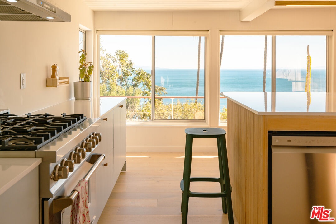 Fully furnished & ready for move-in immediately!! Experience the joy of a recently updated mid-century architecture. Complemented by drought resistant landscaping, an expansive wrap around deck, heated pool w/patio & outdoor sauna. Striking white water ocean views w/ incredible sunrise/sunsets. This single-story offers great flow between the living room, kitchen & dining area. The interior is decorated w/ modern furnishings & the entire house has hardwood flooring. Large windows throughout allow for abundance of natural light. Master on-suite w/ walk-in closet & ocean views. Spacious 2nd & 3rd bedroom feature garden view. Solar powered & carbon neutral for green living. 2 car garage. Located in the Big Rock neighborhood. 10 minute drive to Santa Monica or downtown Malibu.