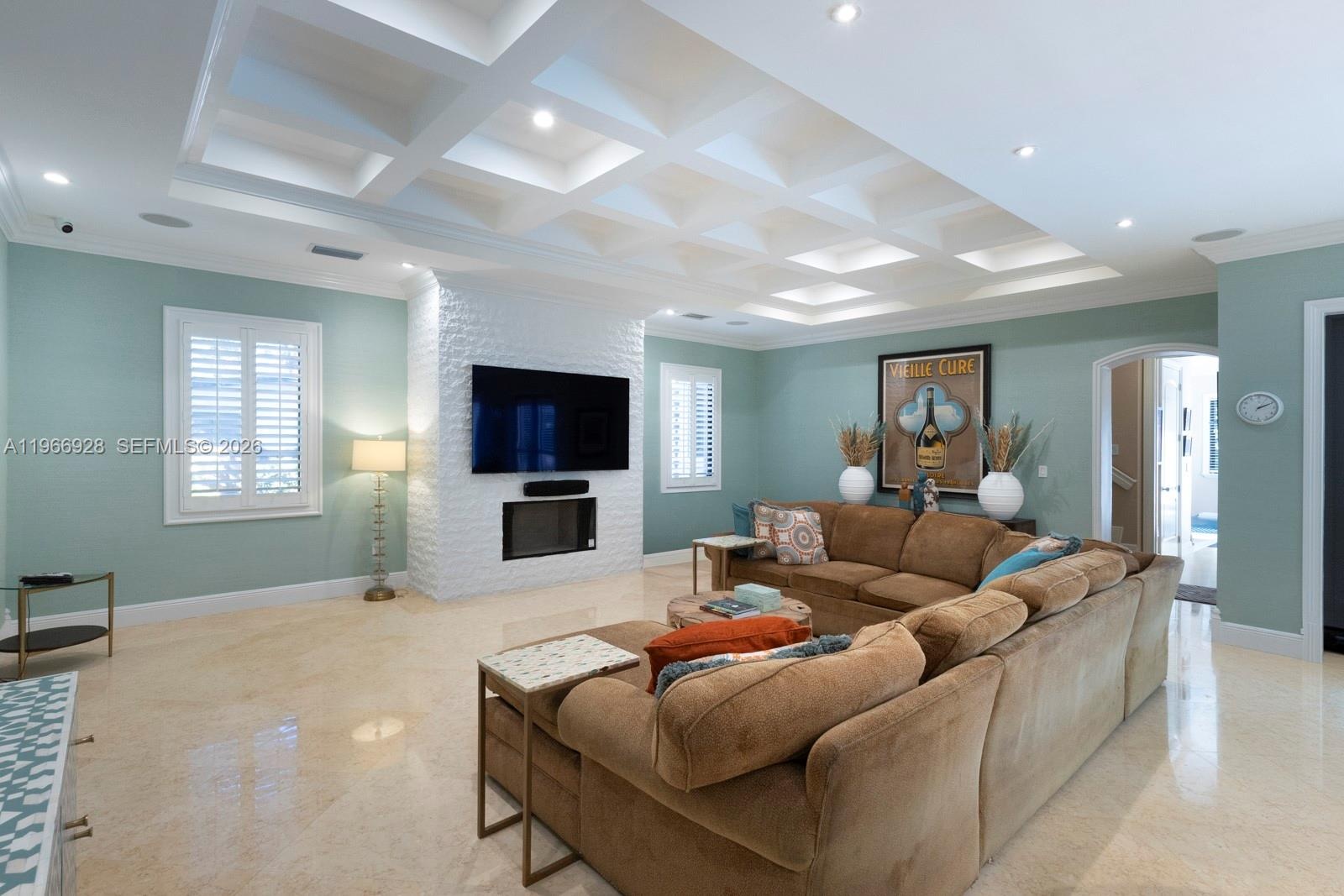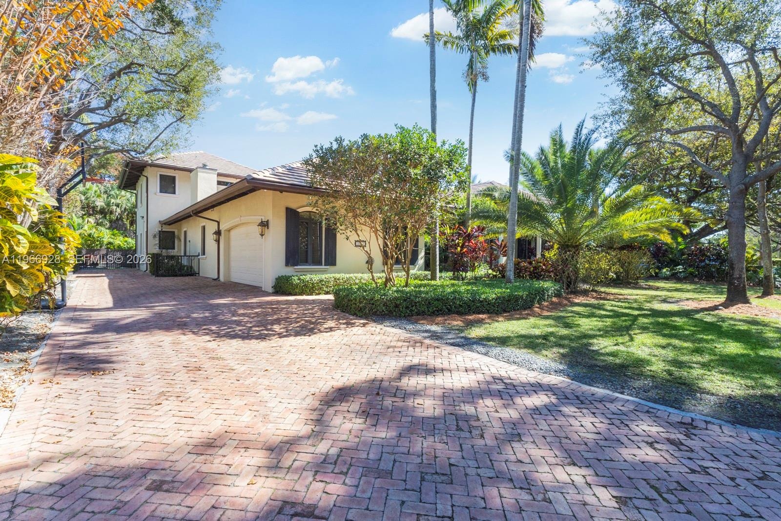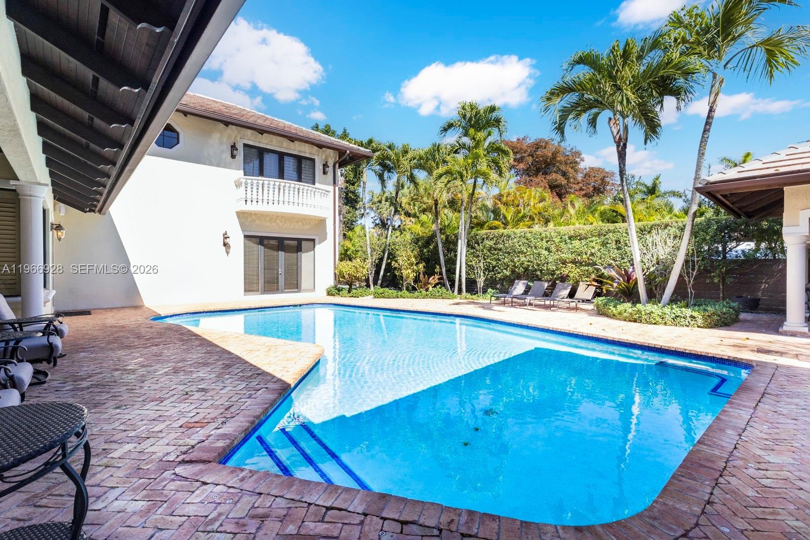 Fabulous 2007-built 5/5.5 family home on quiet great street in north Pinecrest. High ceilings, impact glass windows and French doors, Egyptian marble floors, generator, gas cooktop, gas dryer, gas water heater, and a working fireplace. Ideal split floor plan layout includes a fabulous and large open kitchen/ family room and breakfast room, 2-story primary suite wing, full cabana bath, 2-car garage, interior utility room, big walk-in closets, gorgeous built-in wet bar, and more! Tranquil, private, and easy-to-maintain pool-patio-yard area includes Chicago brick, gazebo and turf. All the best Pinecrest schools and central location to all the Village has to offer.