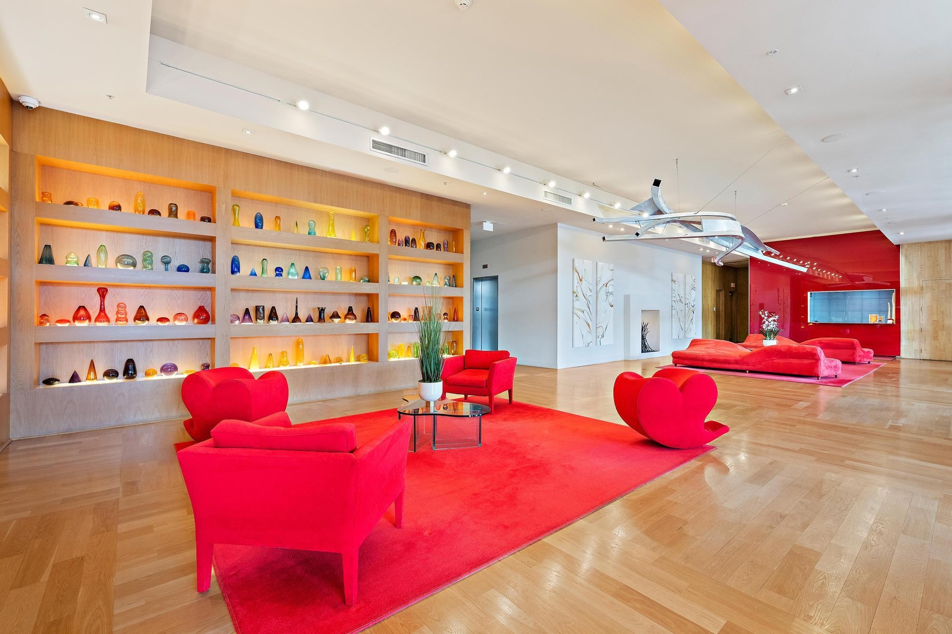Penthouse level living with 10' ceilings and sweeping northeastern views of the ocean, Intracoastal, Palm Beach, and city skyline.