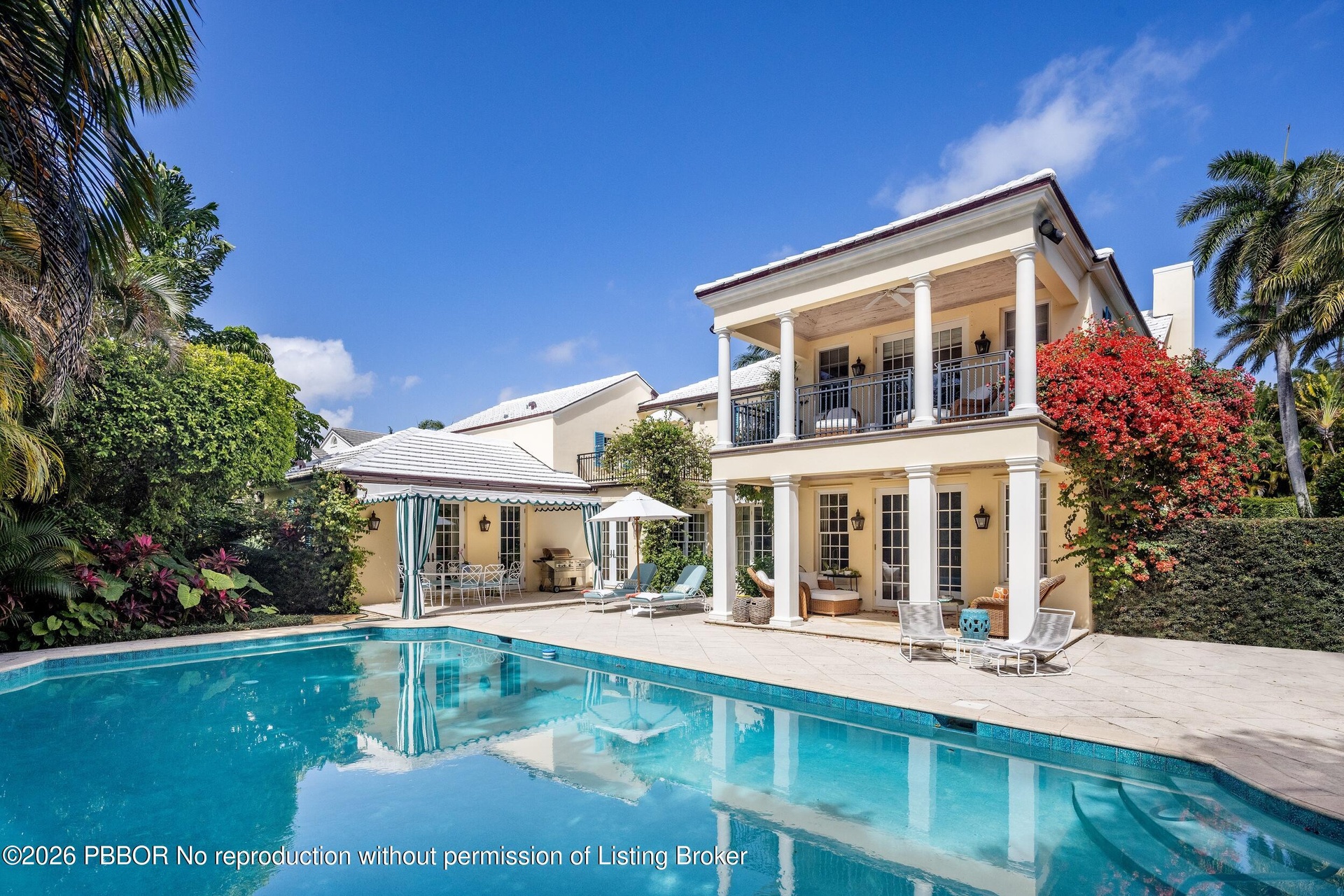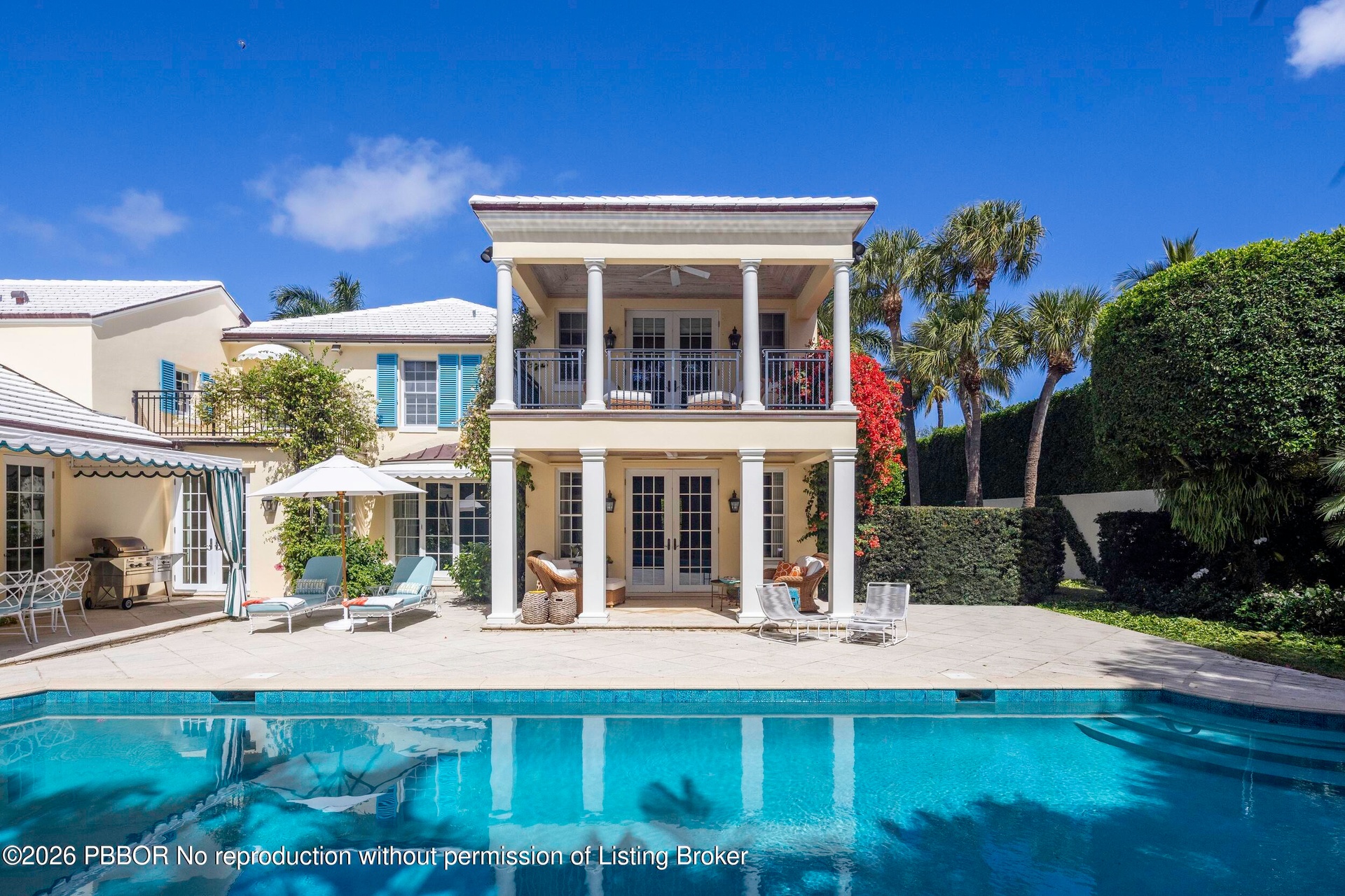 Stunning 6BR/6.1BA John Volk estate in a prime Near North End location on the serene Emerald Lane. Filled with natural light, the beautiful interiors were designed by Celerie Kemble Interiors. Fabulous open floor plan with spacious dining room, library with built-ins, gourmet kitchen, and breakfast room. Exterior features include large swimming pool with cabana, open and covered balconies, and spacious covered loggia.