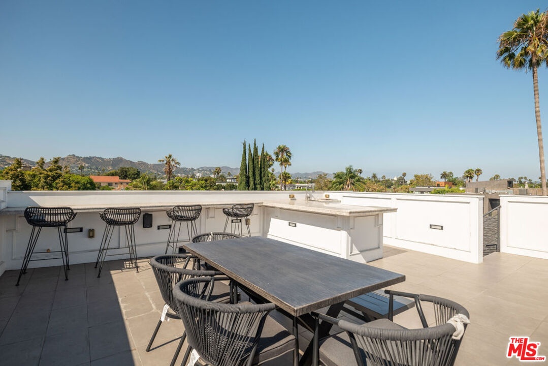 Welcome to this privately nestled true Traditional in the Melrose Village! On a gated and secured lot sits a 3,597 sqft 4 bed 5 Bath home with an oversized rooftop deck with 360 degree views of the LA skyline. High ceilings throughout provide a grand feel that leads you out onto a privately hedged backyard oasis. Built to take full advantage of the indoor outdoor living that LA is made for. Large spa and pool is surrounded by space to entertain and relax. The first floor is accommodated by a formal dining room, wine cellar, as well as an en suite guest bedroom. Upstairs the primary suite is accompanied by 2 more bedrooms and a laundry room for easy access. Stairs lead to a generous rooftop deck overlooking LA. Centrally located, you are a short walk from the best shopping and restaurants la has to offer. Also available for lease at $23,500/Month Furnished.