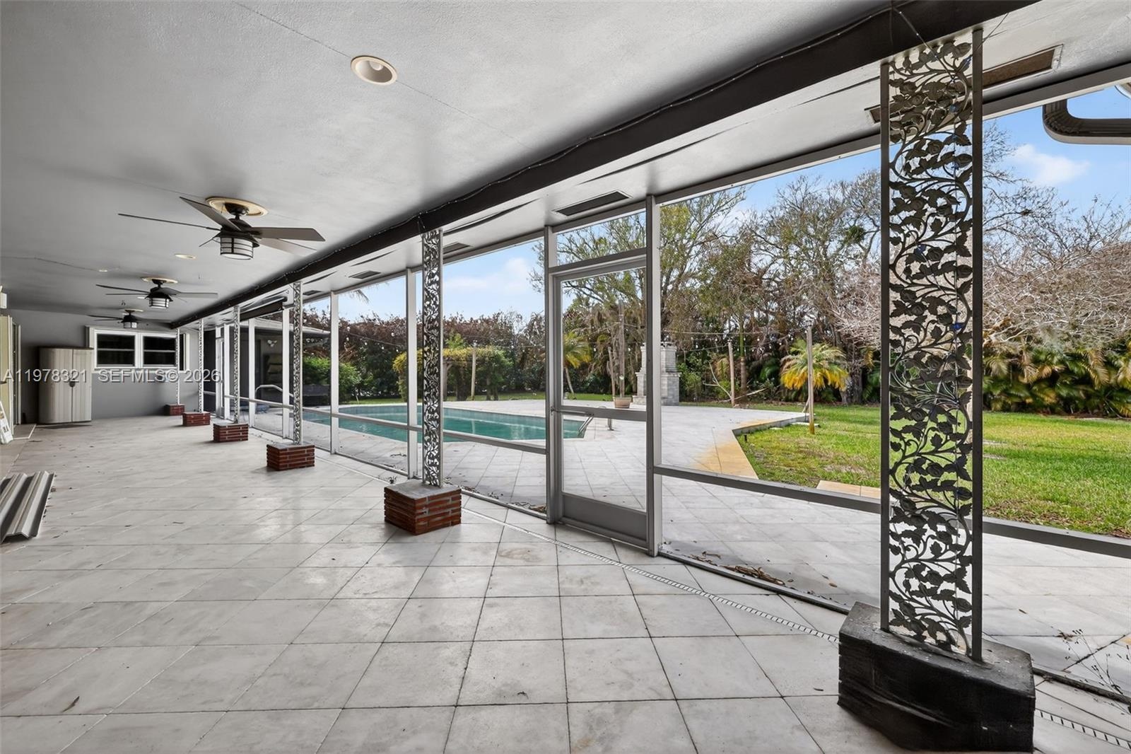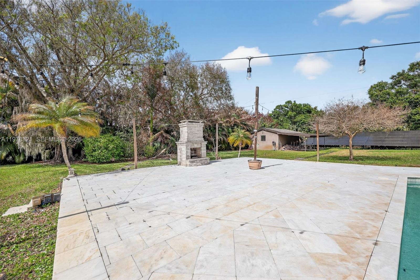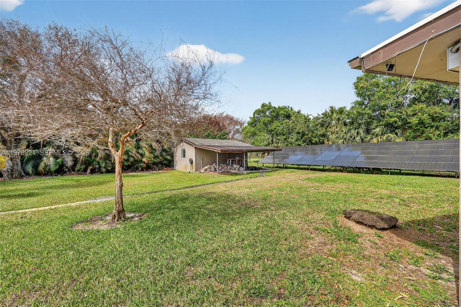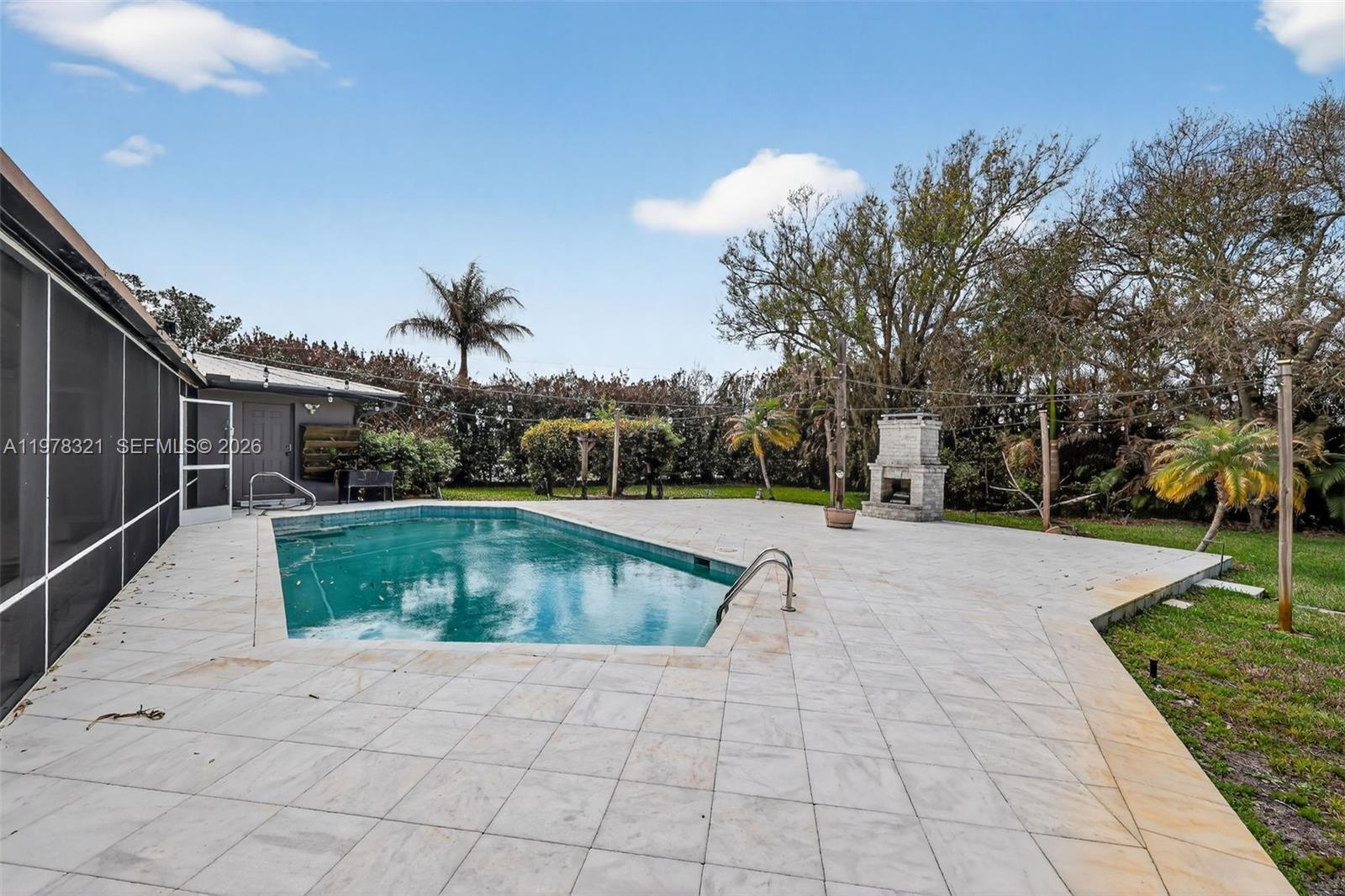 This exceptional 4150 Sq. Ft estate-style home sits on a spacious 0.85-acre lot and has been beautifully renovated throughout. The property features a newer metal roof and accordion shutters, providing both durability and peace of mind. The updated kitchen is designed for both functionality and style, featuring a double oven, contemporary porcelain induction range top, and a premium Sub-Zero refrigerator. Step outside to an elegant pool area with a newly finished stone patio, perfect for entertaining and hosting outdoor gatherings. A major highlight of the property is the solar panel system, which powers the entire home at virtually no cost. The system also supports an 80-gallon hot water heater, improving energy efficiency even further. Additional features include: A private office off the primary bedroom. Updated bathrooms with modern finishes. A circular driveway with a porte cochere, providing ample space for multiple vehicles of any size. SOME Areas are Virtually Staged