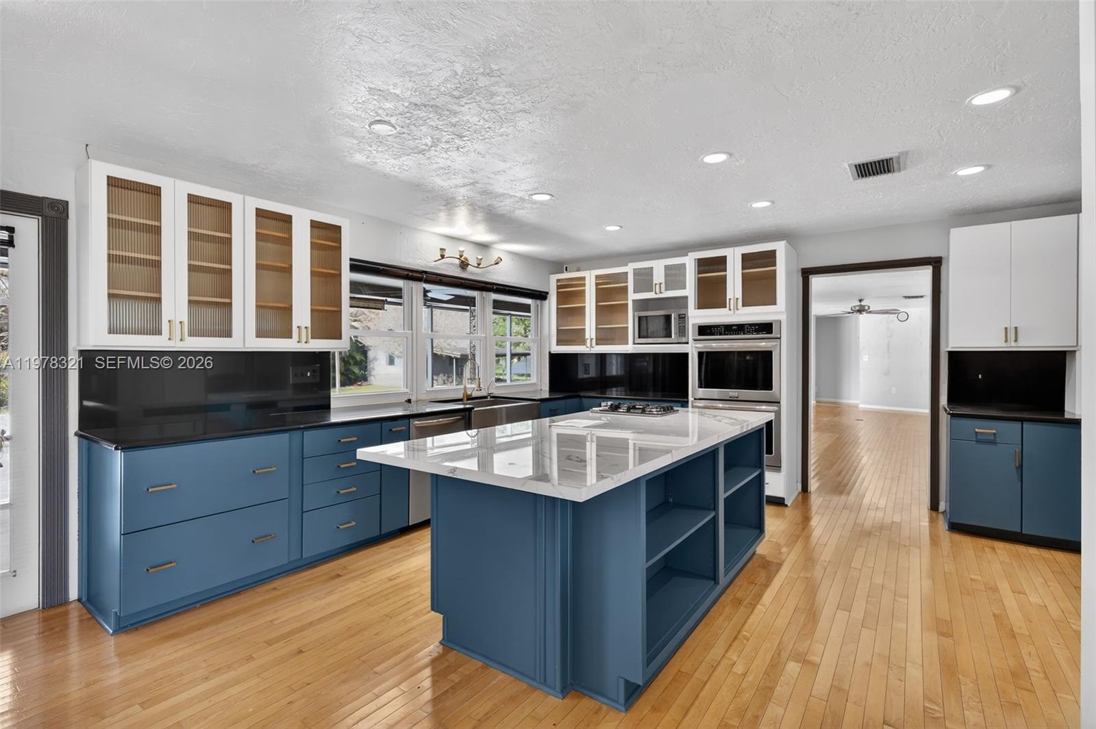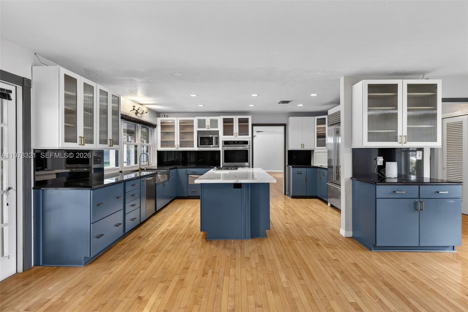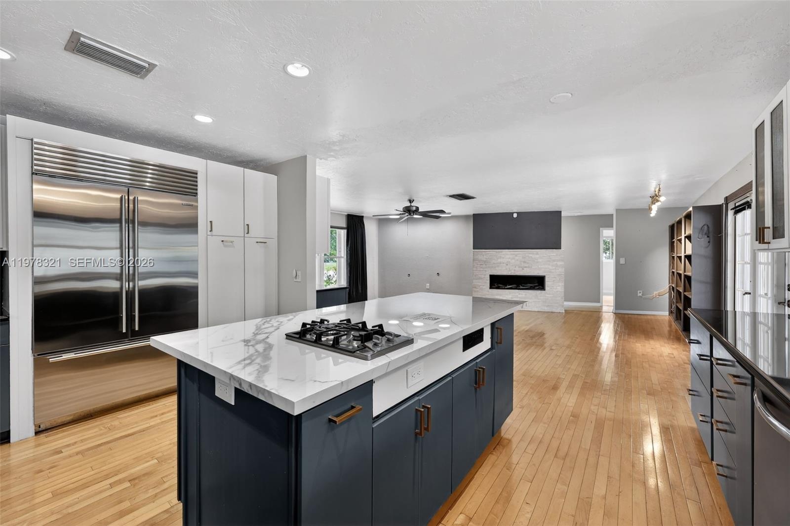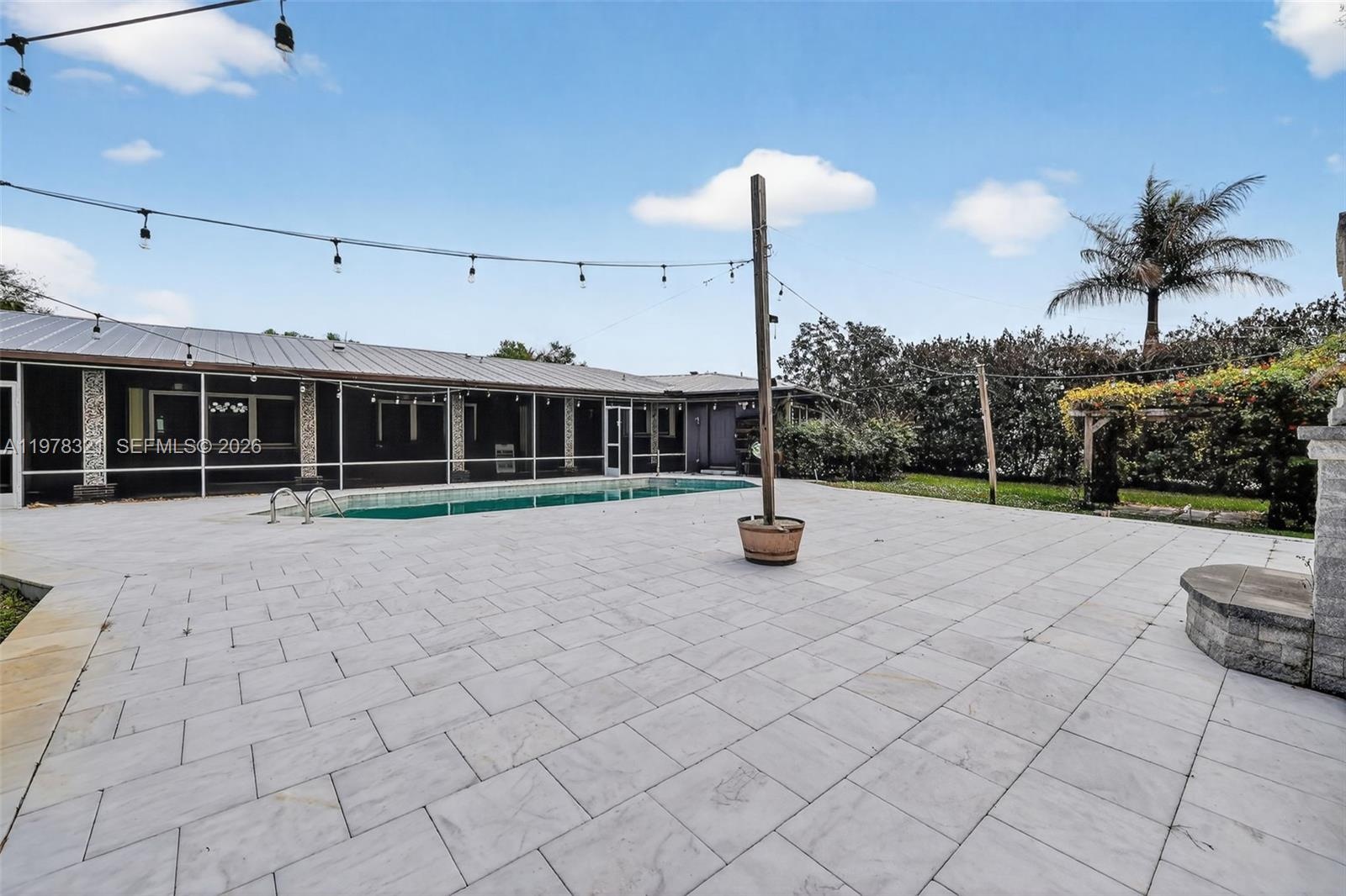 This exceptional 4150 Sq. Ft estate-style home sits on a spacious 0.85-acre lot and has been beautifully renovated throughout. The property features a newer metal roof and accordion shutters, providing both durability and peace of mind. The updated kitchen is designed for both functionality and style, featuring a double oven, contemporary porcelain induction range top, and a premium Sub-Zero refrigerator. Step outside to an elegant pool area with a newly finished stone patio, perfect for entertaining and hosting outdoor gatherings. A major highlight of the property is the solar panel system, which powers the entire home at virtually no cost. The system also supports an 80-gallon hot water heater, improving energy efficiency even further. Additional features include: A private office off the primary bedroom. Updated bathrooms with modern finishes. A circular driveway with a porte cochere, providing ample space for multiple vehicles of any size. SOME Areas are Virtually Staged