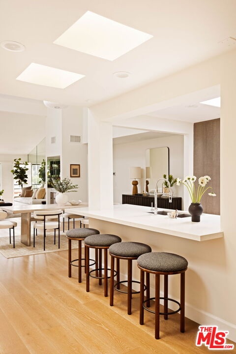 Elevated above the vibrant energy of Century City, this modern, top-floor, high-end condo offers a rare blend of architectural sophistication and effortless luxury. Bathed in natural light at every turn, this unit showcases clean contemporary lines, expansive windows, and an open-concept layout designed for both refined entertaining and everyday comfort. The spacious living and dining areas complete with vaulted ceilings, flow seamlessly onto a private terrace, creating an indoor-outdoor experience ideal for sunset cocktails or quiet mornings above the city. A large, sleek chef's kitchen anchors the space with custom built-in cabinetry, premium stainless steel appliances, designer fixtures, and stone countertops that elevate both form and function. Cozy up to your living room fireplace where you can relax, read and drift away the days. The primary suite serves as a tranquil retreat, complete with generous walk-in closet space and a spa-inspired bath featuring modern finishes and a calming, minimalist aesthetic. Additional bedroom provides versatility for guests, a home office, or creative studio. Amenities include two assigned, tandem covered secured parking spaces, a spacious separate storage unit, fitness room, sauna, large pool and jacuzzi, and keyed entry. Positioned moments from world-class shopping and dining at Westfield Century City, premier office towers, and convenient access to Beverly Hills and the Westside, this residence places you at the center of it all in both privacy and style. Contemporary living awaits at one of Los Angeles' most prestigious enclaves.