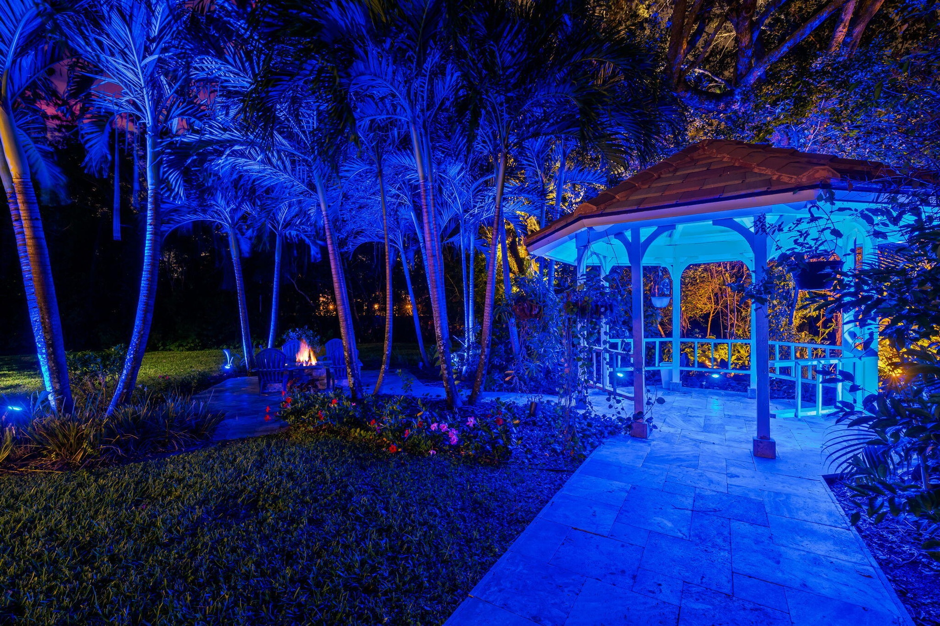 Welcome to this breathtaking 5-bedroom, 3.5-bath estate in the exclusive, guard-gated community of Fieldbrook Estates in the heart of Boca Raton. Situated on a full 1-acre lot of lush, tropical landscaping, this home offers the ultimate blend of privacy, elegance, and South Florida living. Flooded with natural light, the bright, modern interior showcases gorgeous updates and luxurious finishes at every turn. The expansive primary suite is a true retreat — a huge bedroom paired with a stunning, spa-like bath designed for ultimate relaxation. A sleek wet bar and a gorgeous gourmet kitchen with high-end appliances elevate the home's everyday comfort and entertainment appeal. Impact windows and doors throughout provide peace of mind and efficiency. The backyard is a resort-inspired paradise. Retractable screens separate a portion of the outdoor space, while beyond them awaits the rest of the incredible yard. Enjoy a sparkling pool and hot tub, a charming gazebo surrounded by lush gardens and colorful flowers, and a separate fire pit area perfect for relaxing under the stars. At night, the entire yard is illuminated with vibrant, color-changing lighting, creating a magical ambiance. With a massive driveway and spectacular indoor-outdoor amenities, this home truly embodies luxurious Boca Raton living - a rare opportunity in one of the area's most prestigious neighborhoods.