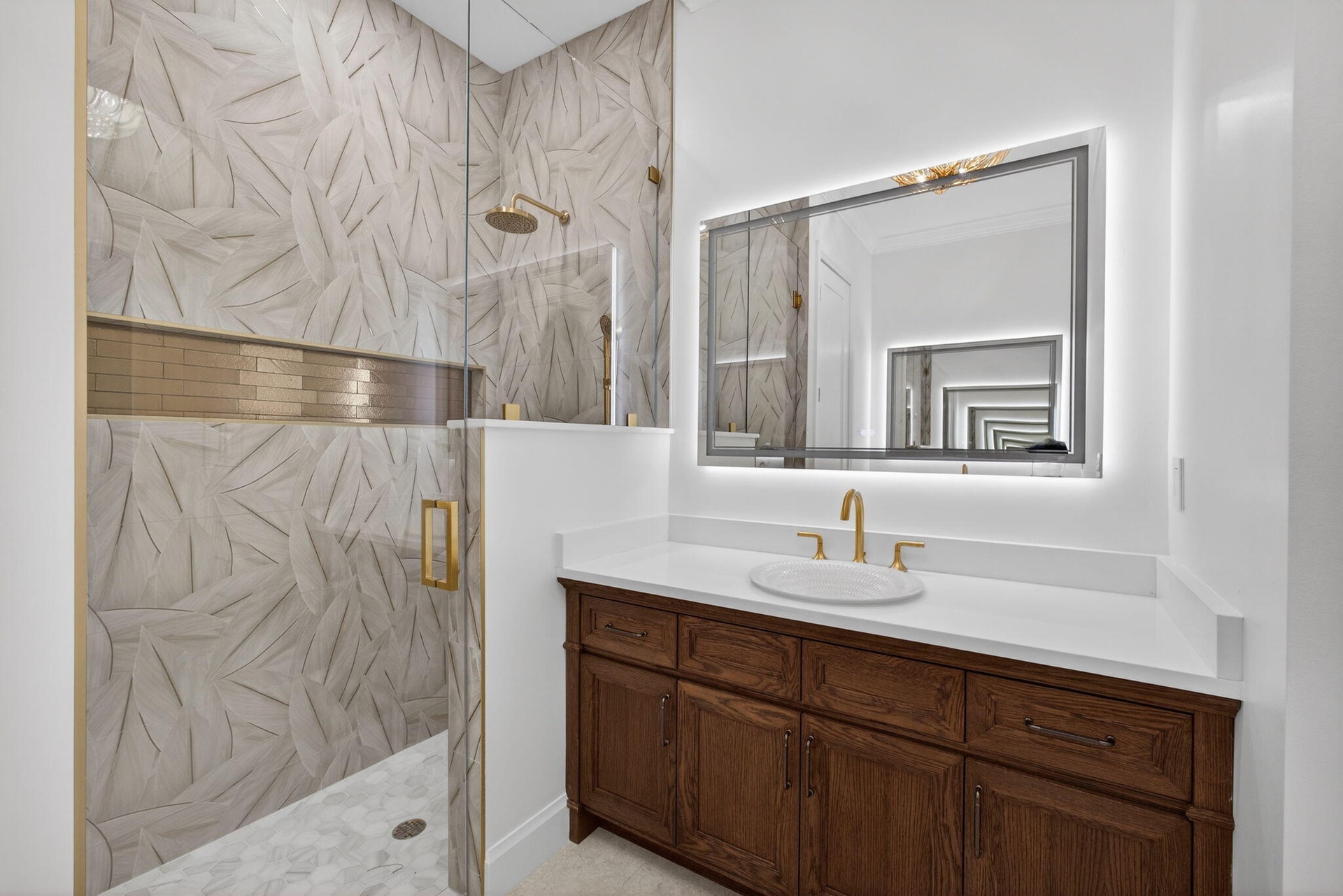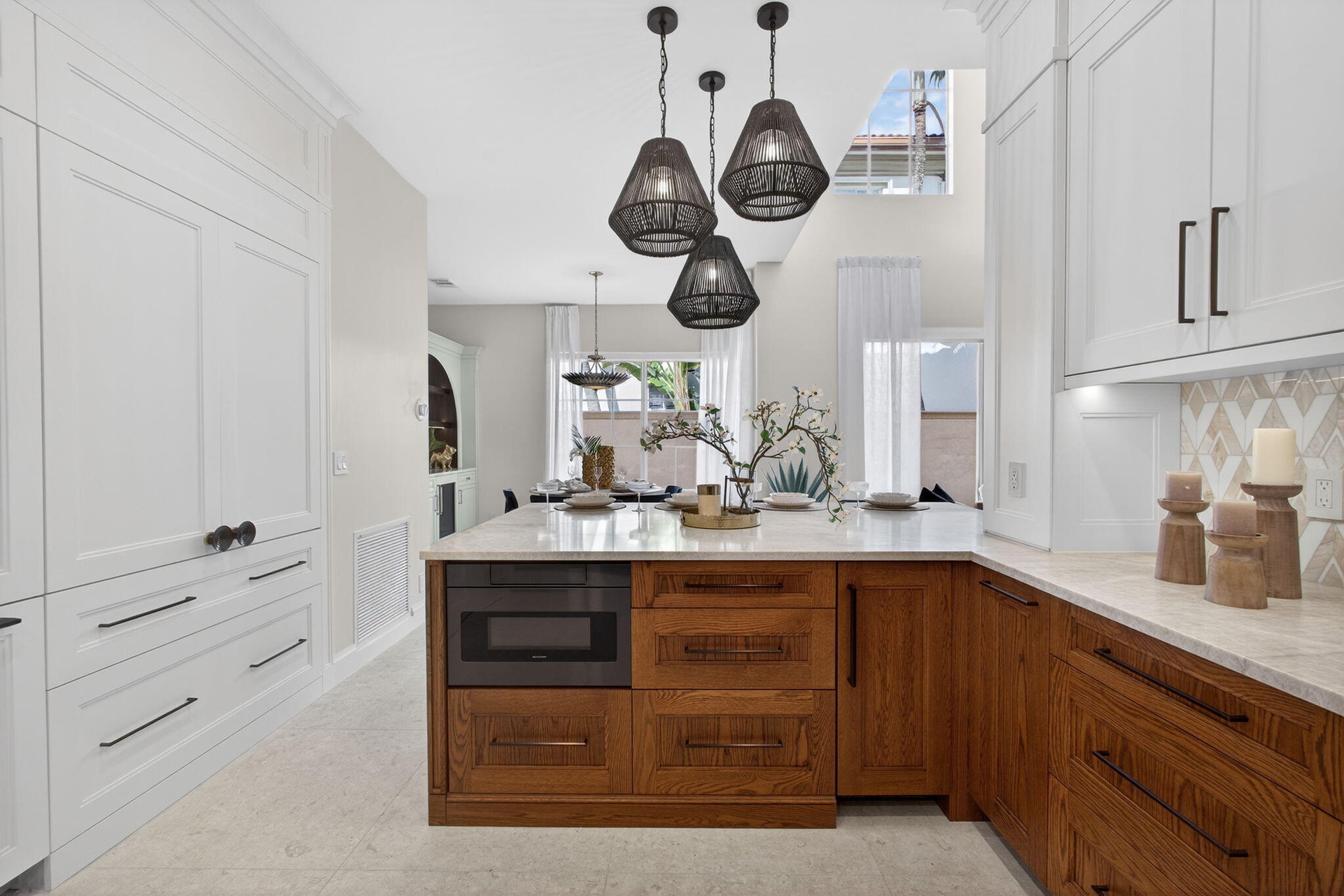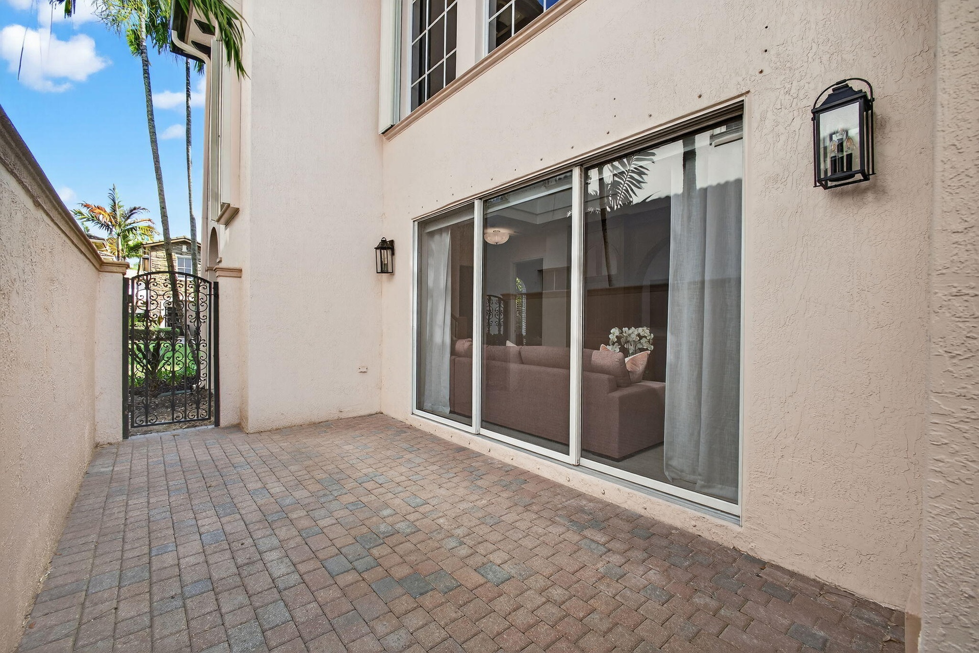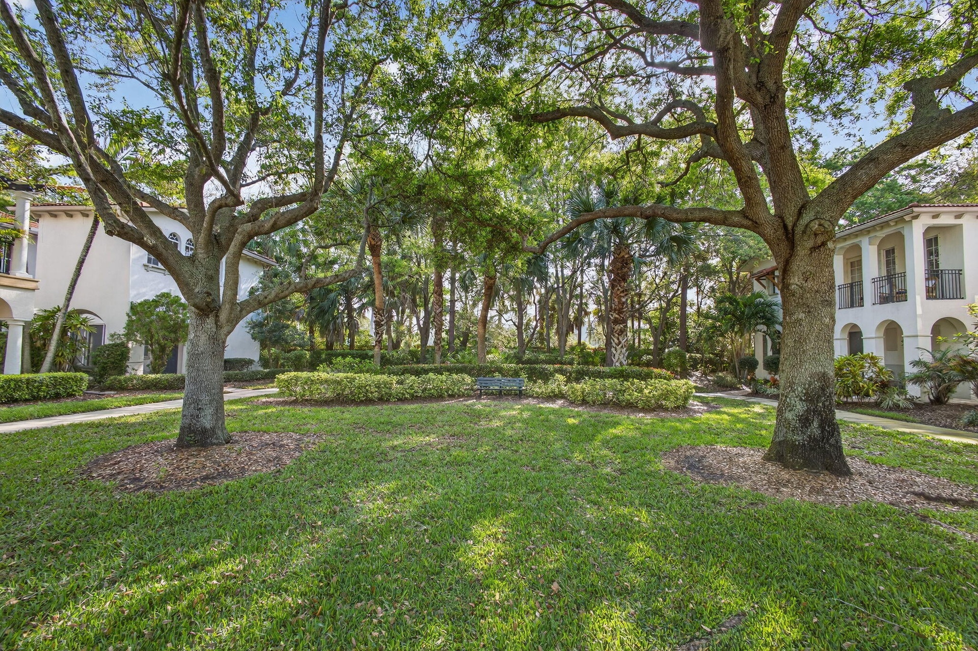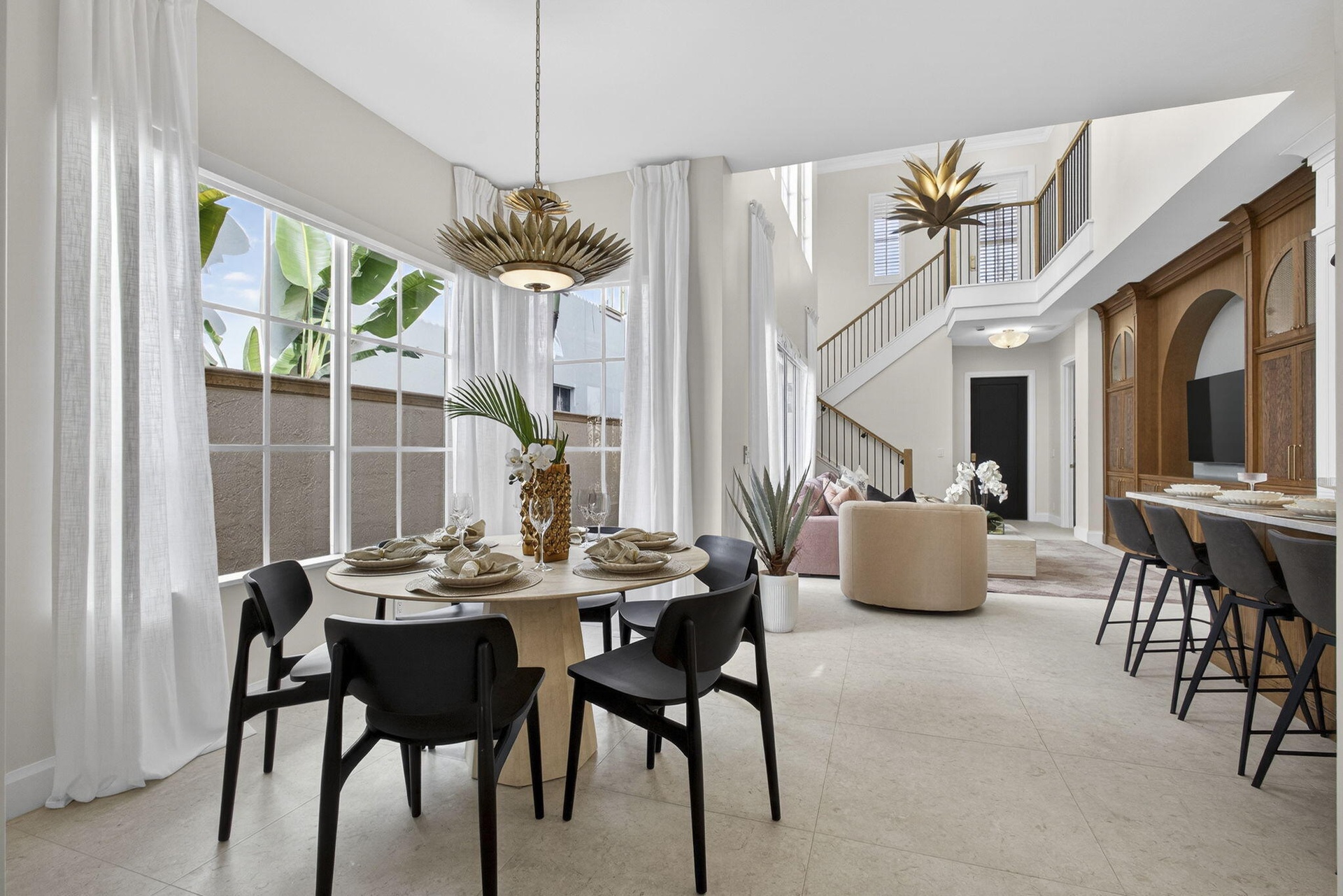 Interior-designed, 3 bedroom courtyard home set on the coveted Stoney Green in gated community. Prepare to be wowed by this TURNKEY, newly landscaped and painted home where every interior inch has been meticulously renovated to reflect a transitional, Palm Beach aesthetic with shades of mid-century magnificence. Bespoke, handcrafted wood kitchen features Taj Mahal quartzite, marble backsplash, brass hardware and custom hood. Hand-crafted, built-ins throughout home, including entertainment center, bar, beverage station and walk-in closets. Four new, stunning bathrooms. Italian porcelain floors throughout, including the parquet-look upstairs. New, elegant wood staircase and all new top-line appliances. Designer mirrors, light-fixtures and smart accessories. Accordion shutters installed for peace of mind. Primary can be upstairs or downstairs. High ceilings, all custom window treatments and lots of natural light makes this a joyful pied-a-terre, a primary home or a winter investment. Close to everything, including gate access, club and walking/bike trails. Evergrene offers resort amenities such as a community pool, casual eatery, pickleball courts, basketball, nature trails, gym and so much more. It is a recognized Audubon community and it is centrally located to all Palm Beach has to offer.