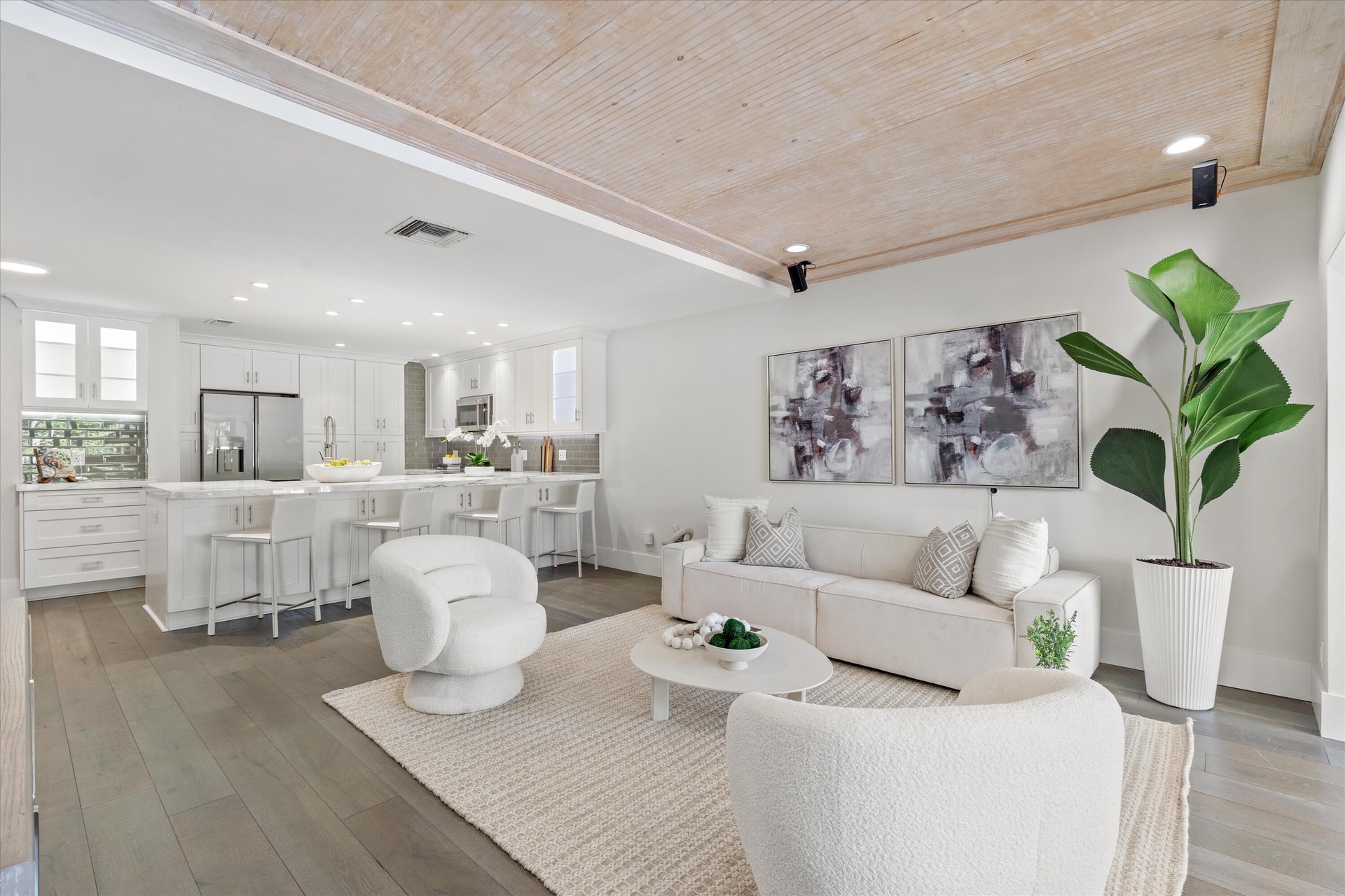 Inside, the home features plantation shutters throughout, custom closets, and a smart-home setup that includes a smart thermostat and Lutron lighting controls. The main level showcases hardwood flooring, while stone floors continue up the stairs and throughout the second floor. Several interior accent walls have been finished with whitewashed brick, adding unique charm and character. The open concept kitchen is a highlight, offering 2022 GE Café appliances, marble countertops, subway tile backsplash, and a built-in coffee bar. The home also includes a full-size washer and dryer (2023), a 2023 A/C unit, a 2021 tankless water heater, and the exterior of all townhomes was painted in 2022.Additional features include a two-story attic with a workbench and generous storage space, plus a designated carport spot directly in front of the unit. This turnkey townhome blends style, comfort, and modern convenienceoffering exceptional waterfront living at Mariners Cove.