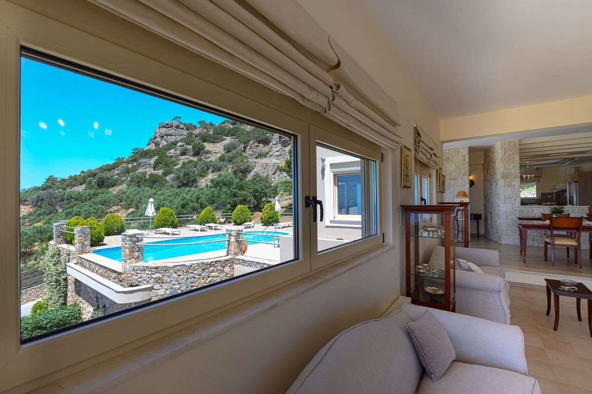 Built on an elevated hillside surrounded by natural landscape, the property enjoys breathtaking panoramic views of the Libyan Sea, Long Beach and Chrissi Island, offering an atmosphere of absolute tranquillity and relaxation.