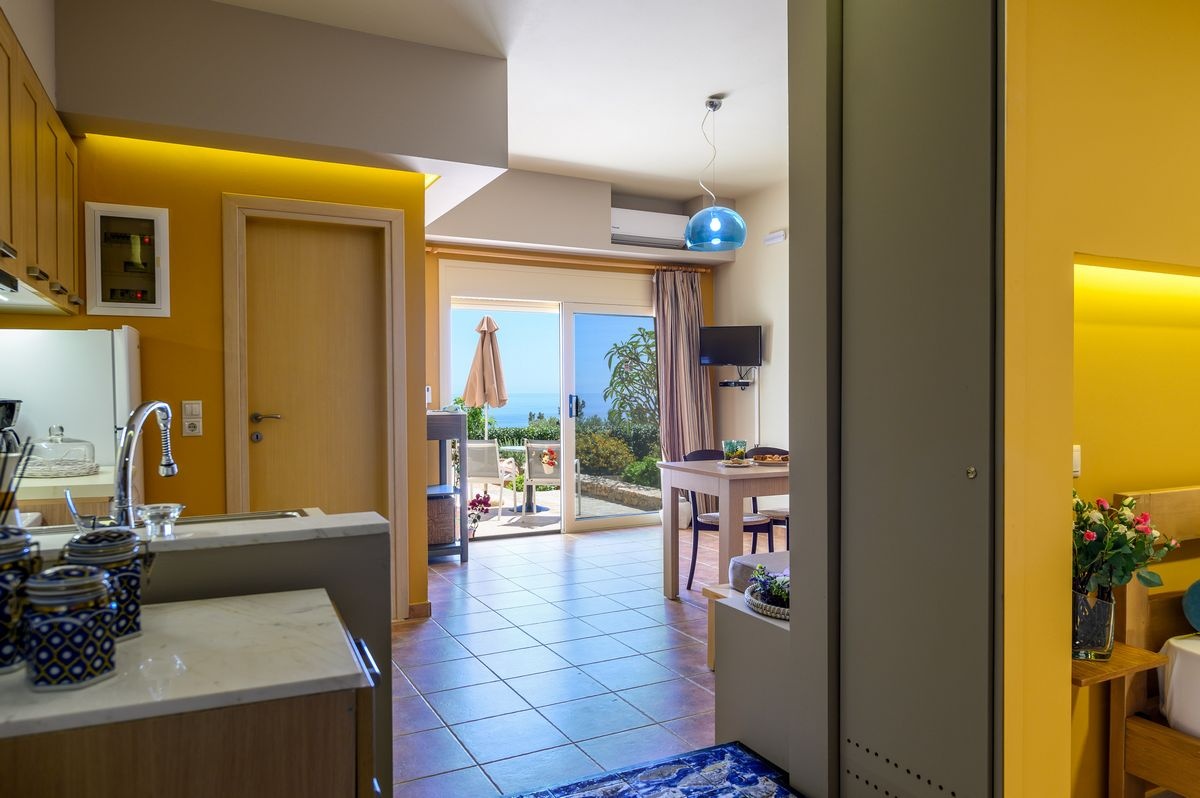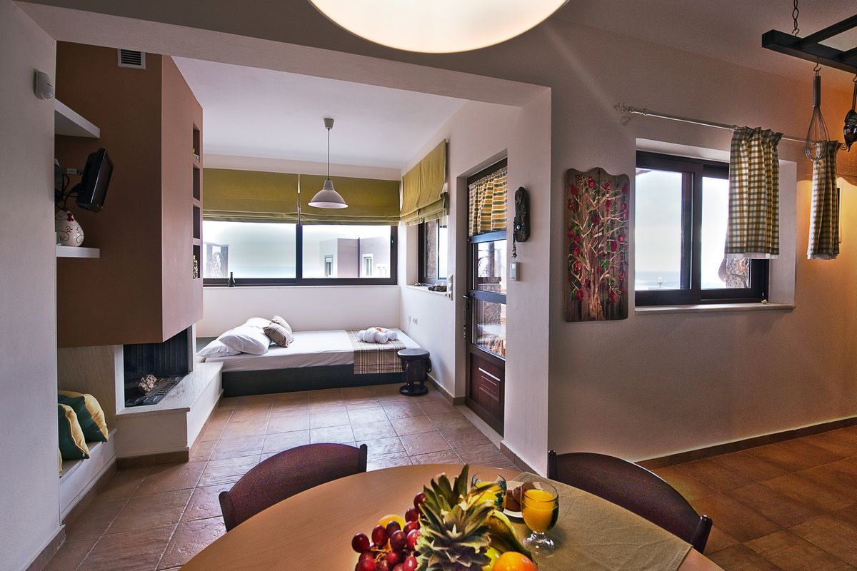The Rigani Studio is located at the highest point of the complex and offers one of the most spectacular views of the Libyan Sea and the surrounding area.