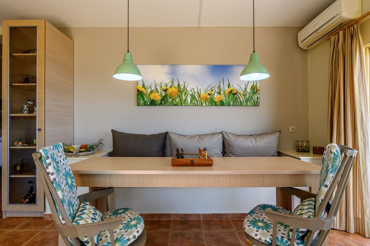 Surrounded by pine trees and gardens filled with traditional Cretan herbs, the studio comfortably accommodates up to two guests.
