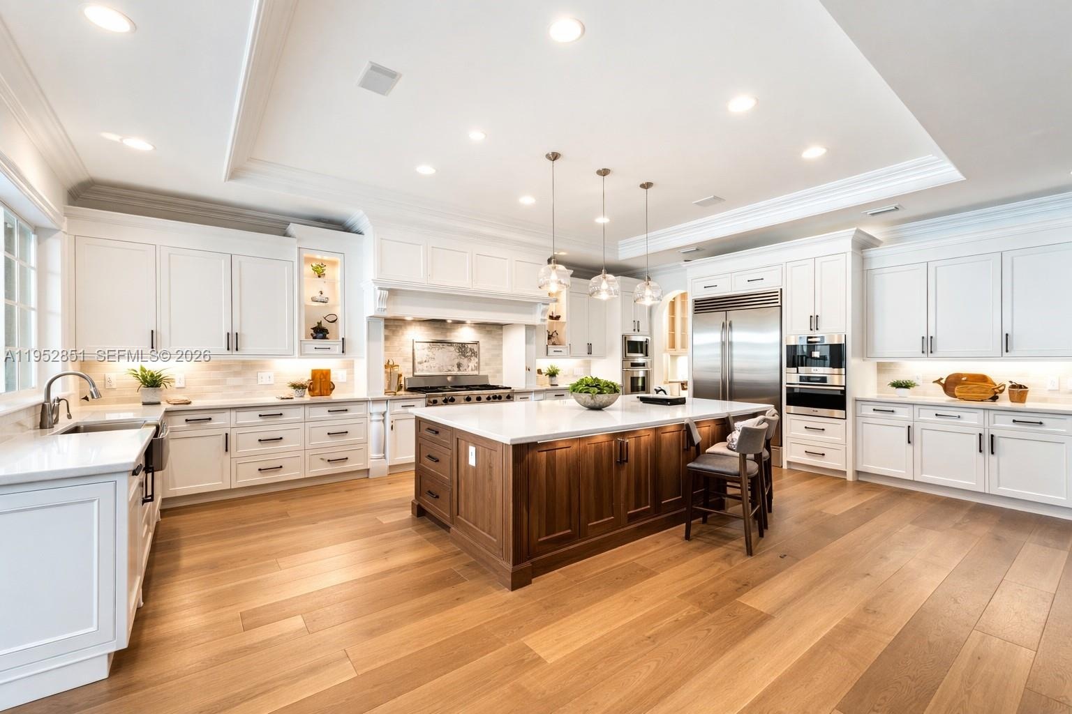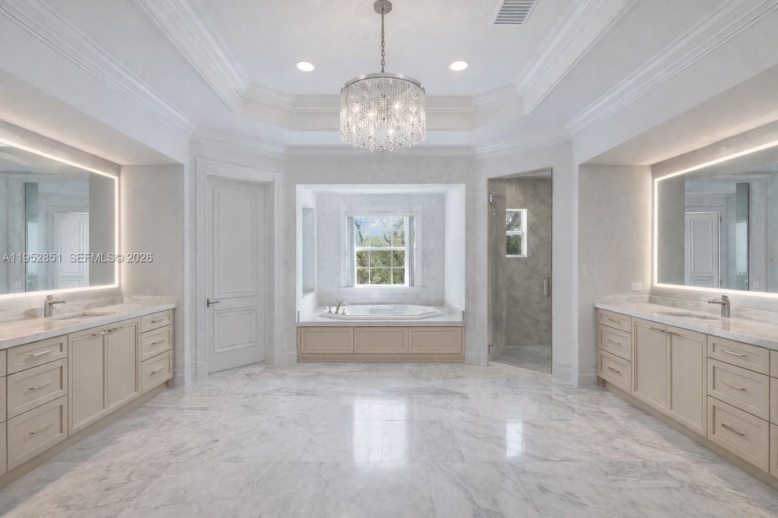 Mediterranean estate in prestigious Pinecrest, gracefully set on a 39,204 sq ft lot. This distinguished 5-bedroom, 5-bath residence with 2 half baths welcomes you with a grand foyer and soaring volume ceilings that create an immediate sense of scale and light. Elegant formal and casual living spaces are thoughtfully designed for refined entertaining. The gourmet kitchen showcases custom cabinetry and a butler’s pantry. A richly appointed club room with bar, private library or office, wine storage, elevator, and summer kitchen overlooking the expansive grounds complete this rare offering of timeless sophistication and elevated living.
