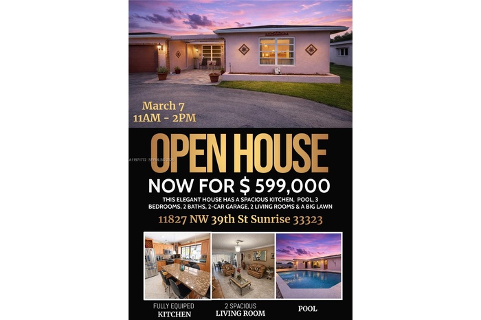 Conveniently located near good schools, Sawgrass Mills Mall, dining, and major highways.