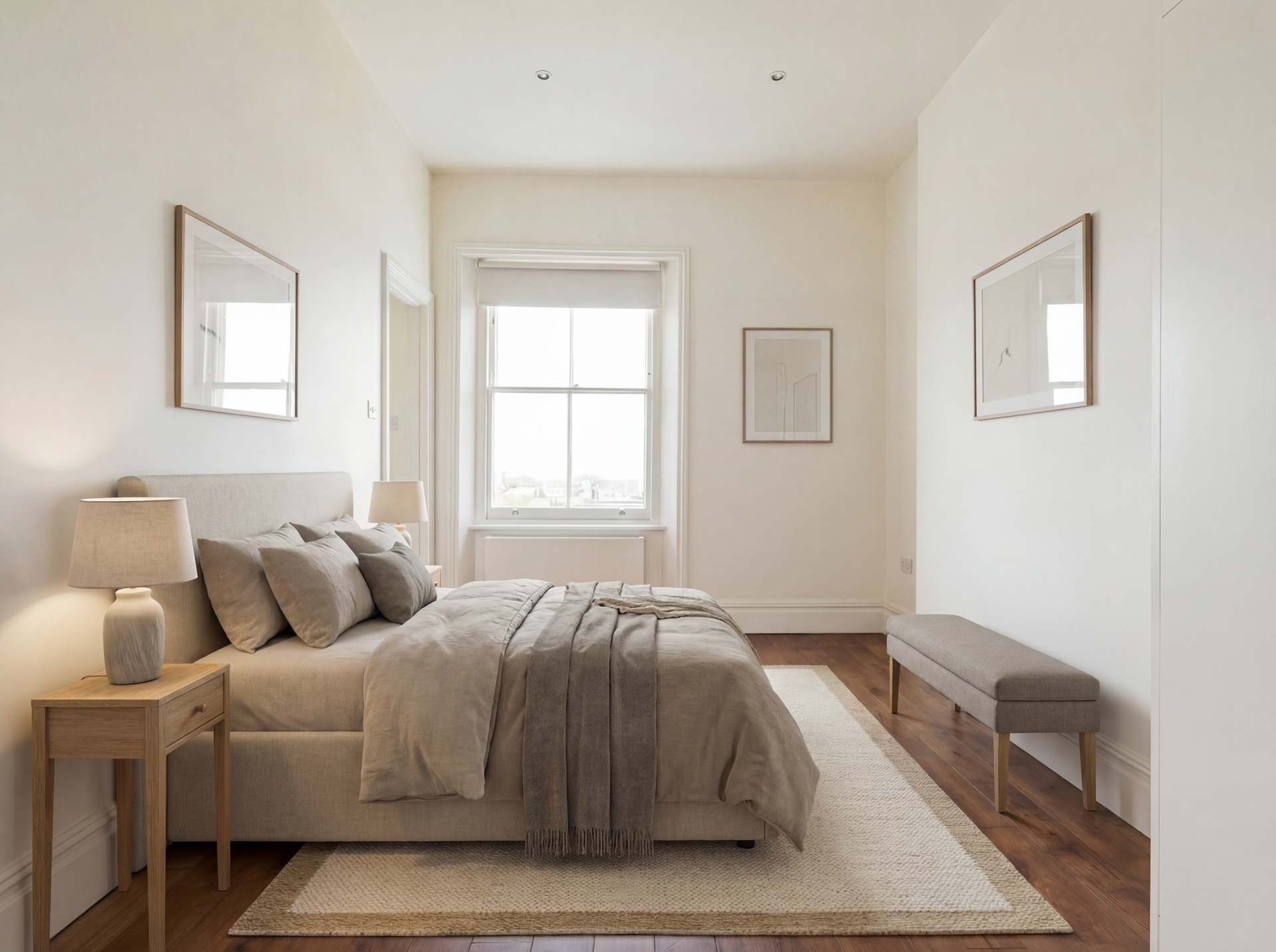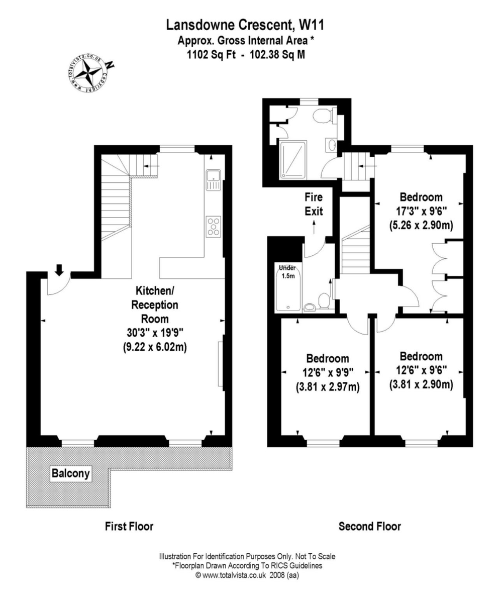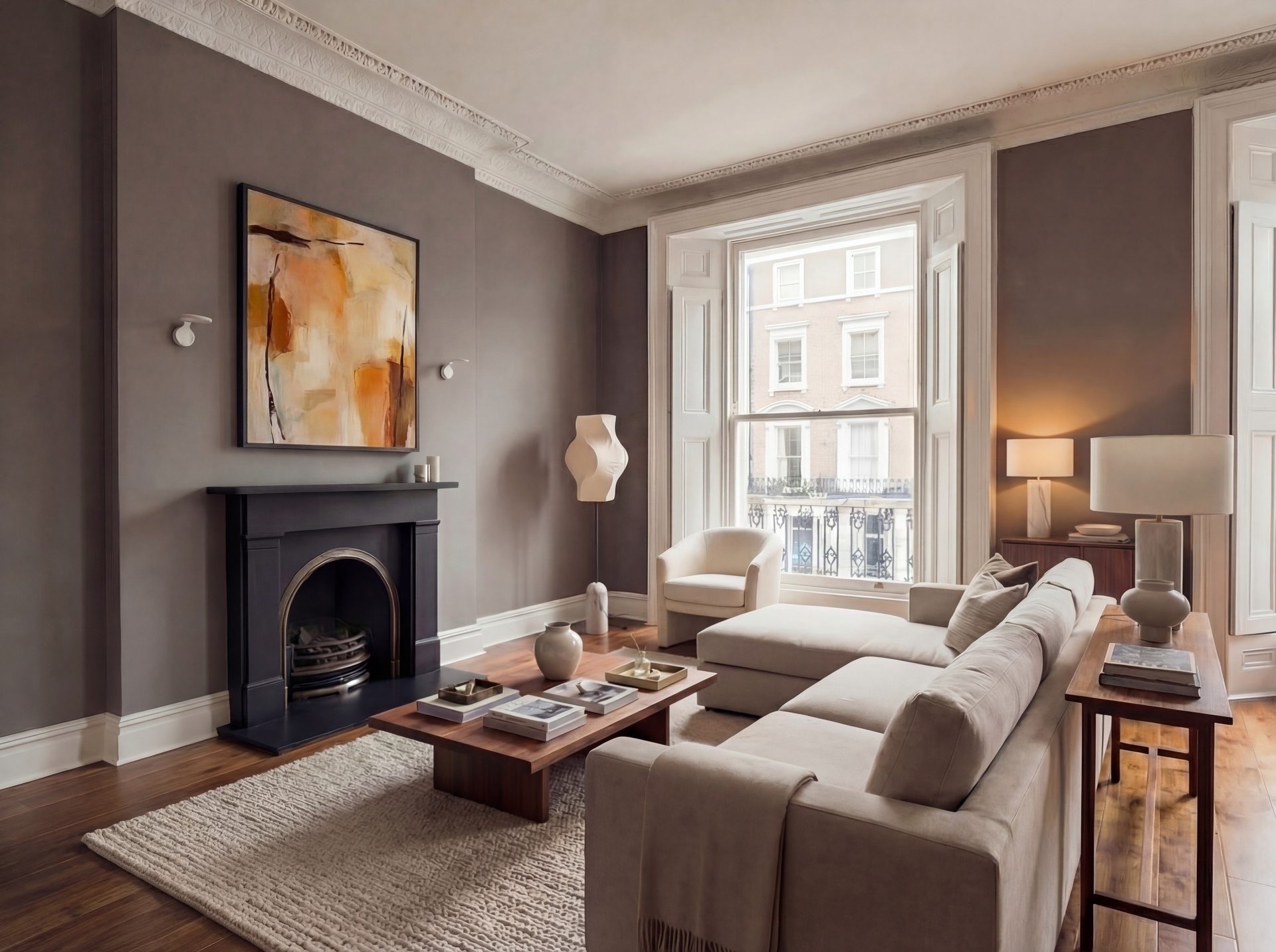 Extending to approximately 1,102 sq ft (102.38 sq m), the property offers a well-balanced layout combining generous living space, period character and excellent natural light, while also benefiting from a private balcony overlooking the surrounding terrace architecture.