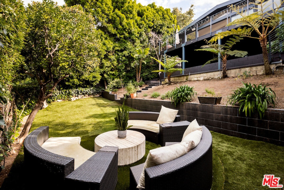 Located in the highly sought-after Santa Monica Canyon, this stunning totally redone architectural residence offers serene canyon views and multiple patios and outdoor areas to enjoy the fresh coastal breeze. Privately gated and secure, the home features 5 bedrooms, 3 bathrooms, and approximately over 2,270 square feet of thoughtfully designed living space. The main living room showcases vaulted ceilings, a cozy fireplace, and large windows framing treetop and canyon views, flowing seamlessly into the newly updated kitchen with Calacatta Gold waterfall countertops, a built-in cabinet-front refrigerator, WOLF stainless steel appliances, and countertop seating. Down the hall are two bedrooms, one with an ensuite bathroom, alongside a second full bath and a spacious office with outdoor access. On the ground level, a generous guest bedroom includes built-in storage and a large window that fills the room with natural light. The top floor is dedicated to the primary suite, complete with sweeping canyon views, private terrace, a cozy fireplace, walk-in closet, and a spa-like bathroom featuring dual vanities, a rainfall shower, and a soaking tub. Sliding glass doors from the main living room open to a large patio, with additional outdoor spaces and a flat grassy area below, ideal for private gatherings and year-round entertaining. The gated driveway accommodates three cars, includes an EV charger, and offers two additional spots inside the garage. Stacked laundry is found on the main level added for convenience. Perfectly positioned just moments from PCH and the shops, restaurants, and boutiques of Montana Ave and Ocean Ave, this turnkey residence delivers privacy, charm, and prime Santa Monica living in one of the Westside's most desirable neighborhoods.