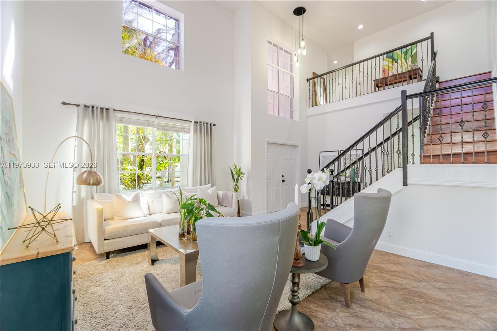 - Renovated staircase with double height ceilings