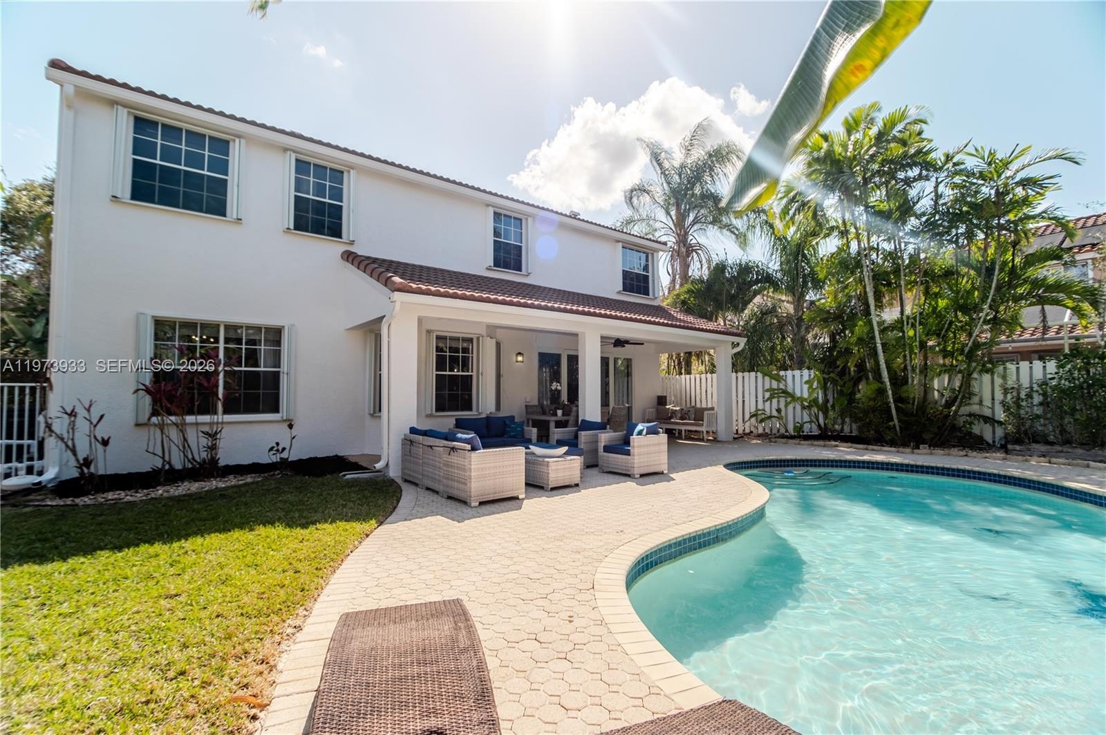 Welcome to your renovated retreat in the highly sought-after The Lakes community of Weston. Our Boho Chic Lakeside Retreat. This beautifully upgraded 4-bedroom, 2.5-bathroom home offers approximately 2,730 square feet of thoughtfully designed living space, blending comfort, style, and everyday functionality. New York Bricks on the main entrance and Patio.