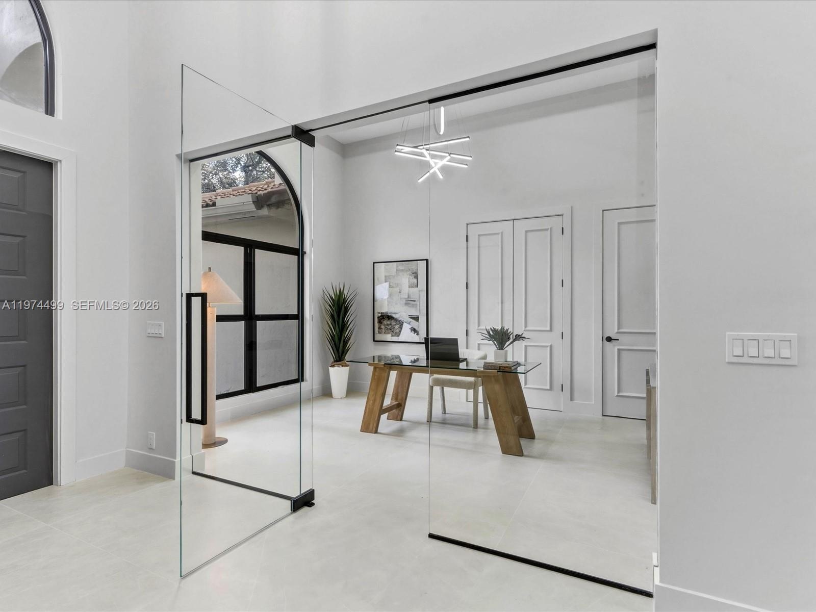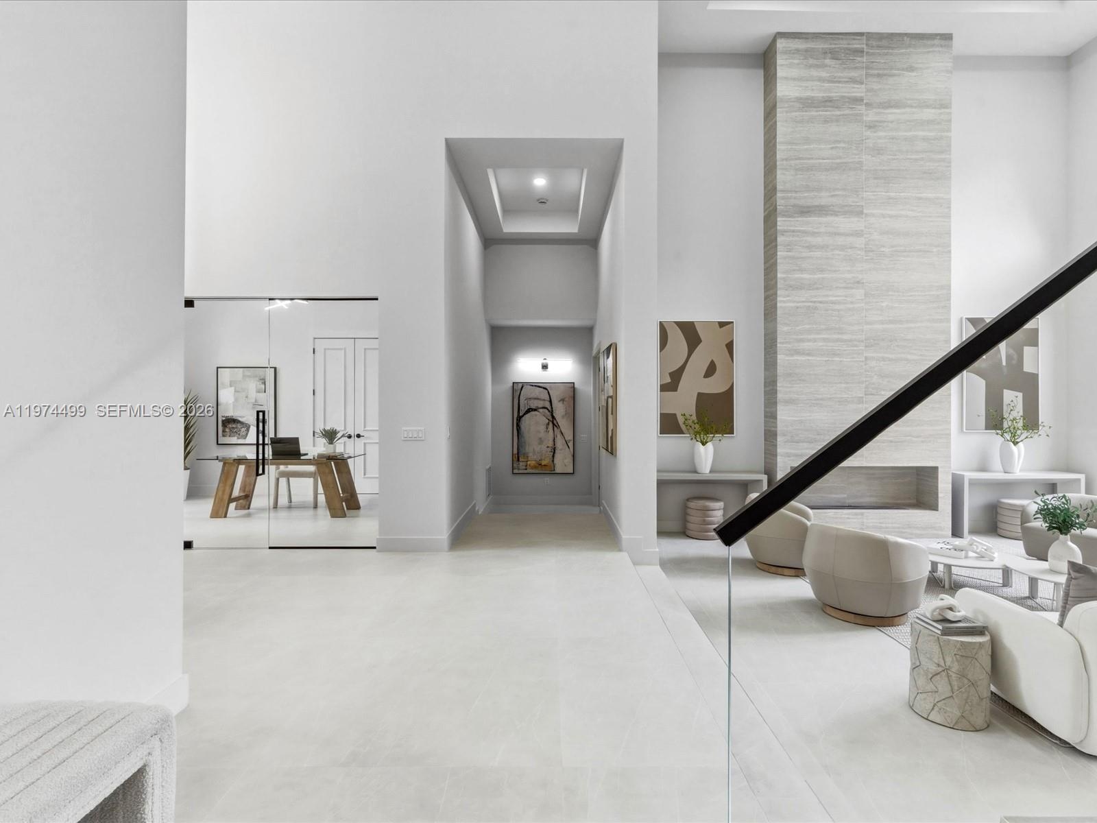 Completely reimagined, thoughtfully designed estate in the prestigious Stonebrook Estates community. Offering over 5,000 sqft of luxury living with no detail overlooked. Featuring soaring 21 ft. high ceilings, custom millwork, a dramatic floor-to-ceiling fireplace, and large windows allowing natural light to flood the home throughout, creating an indoor-outdoor flow. This home delivers a level of finish rarely found in the community. The chef's kitchen, highlighted in Taj Mahal porcelain, features an oversized waterfall island, sleek custom cabinetry, premium appliances, & a built-in illuminated wine wall. The primary suite offers a boutique-style custom closet and spa-inspired bath retreat. Additional highlights include a dedicated office, media room, impact windows & doors, a custom wet bar, and a spacious 3-car garage.