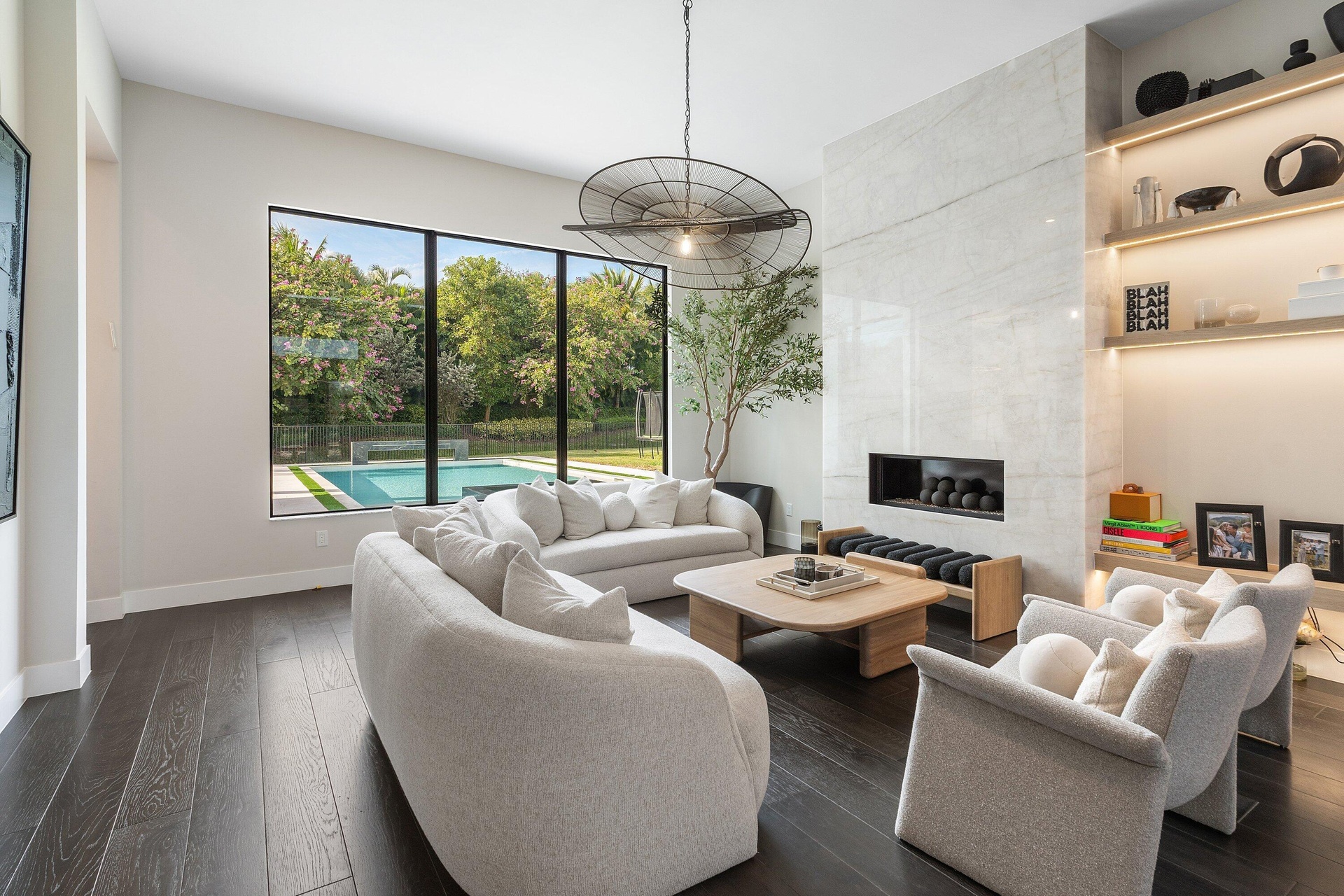 Designer-decorated contemporary, 6 bedroom Palermo for annual rental in Boca Bridges! This partially furnished home spans over 6,000 SF and is ideally situated on over half an acre property in a cul-de-sac. This stunning estate features a living room with built-in bar and marble fireplace, solar panels, custom ceilings, beautiful built-in closets, a stunning pool with spa and a spectacular chef's kitchen with walk in pantry and SubZero/Wolf appliances. This smart home has an electric car charger and is fully solar powered with Tesla Powerwall backup batteries. Luxury living is redefined at Boca Bridges where residents have access to resort amenities inclusive of a restaurant, beach entry pool, kids splash park, fitness center, tennis and pickleball courts.