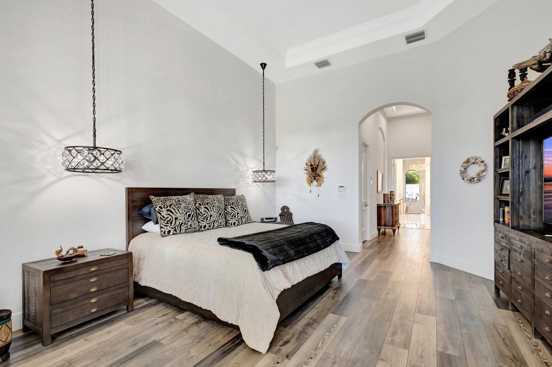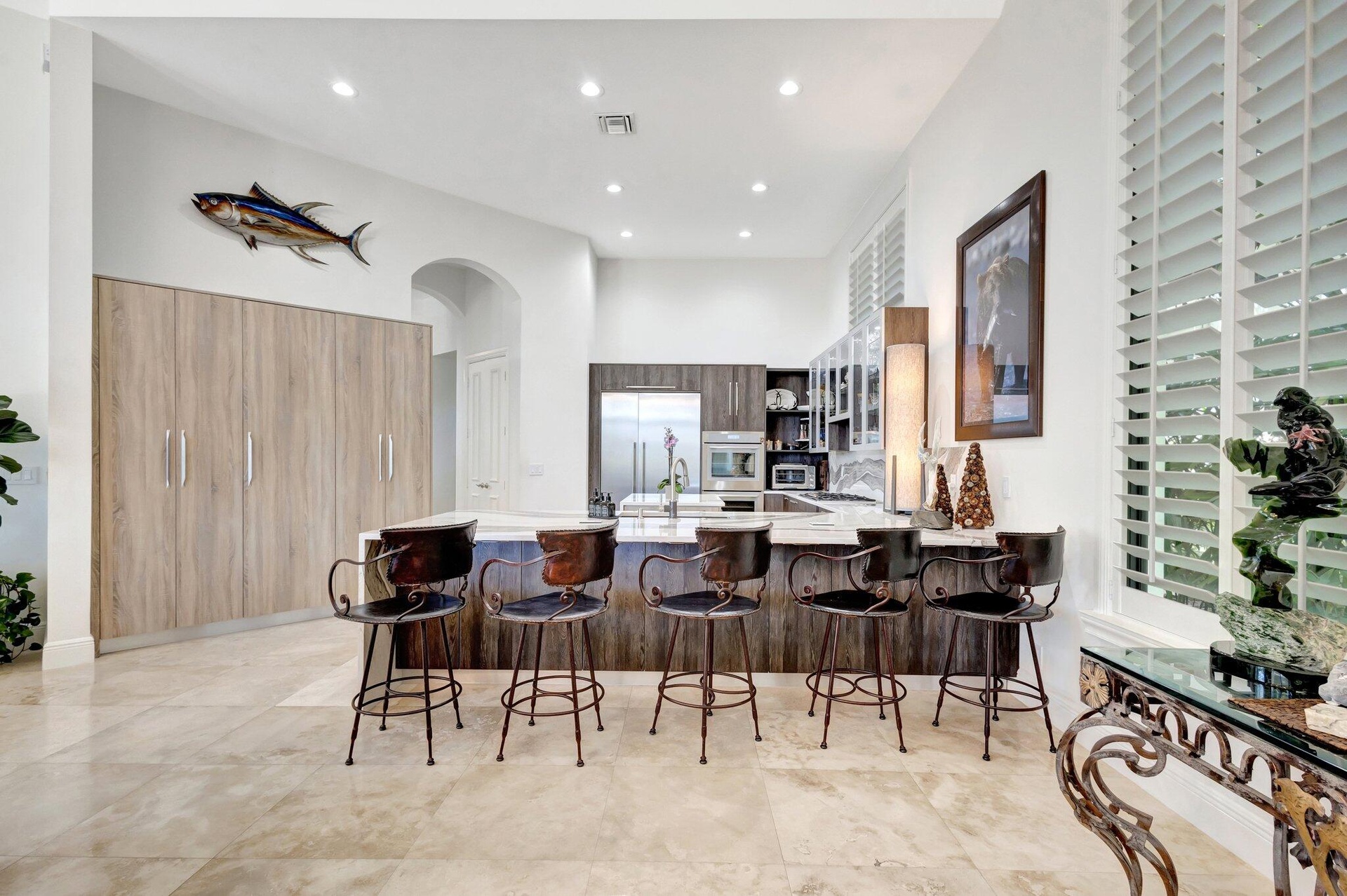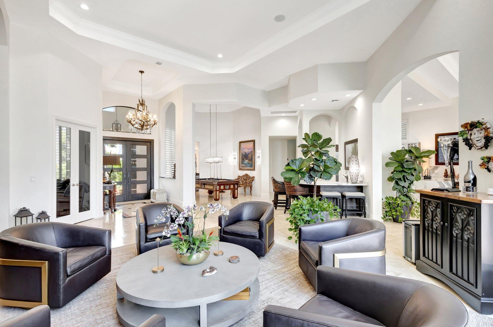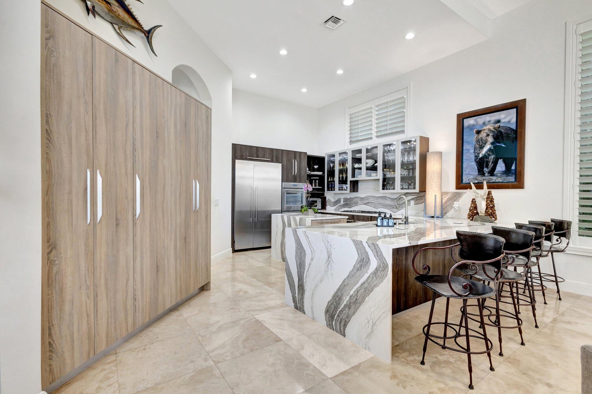 Full Golf Membership. This one of kind residence in Mirasol Country Club is walking distance to the club, with an expansive backyard and stunning views ensuring unparalleled privacy. Spanning almost 5,000 sqft of living space, this home offers 5 bdrms, 5 and 1 1⁄2 bath, office and loft, providing ample room for comfortable living. New roof, hurricane windows and doors, completely renovated kitchen, primary suite and bath and so much more. The meticulously designed outdoor space epitomizes resort-style living, all enveloped by lush tropical landscaping, with stunning orchids creating a secluded sanctuary. Upon entry your captivated by floor-to-ceiling windows, private preserve views and a spacious open layout that accentuates the property's scale and grandeur. Throughout the home, exquisit details abound, including coffered ceilings, renovated kitchen, wet bar, primary bedroom and a well-appointed office. The completely updated gourmet kitchen is a haven for culinary enthusiasts, with a Thermador appliances, gas range, a generous sleek pantry with pull out drawers, and expansive countertops with a central island. The updated primary suite on the main level, offers picturesque private view, 2 custom closets and stunning modern updated bathroom. The 1st floor offers a VIP guest suite, situated for privacy with access to the outdoor patio. The 2nd floor guest suites with a spacious loft and the 3rd VIP suite are a few steps above is a welcome retreat. The outdoor paradise with saltwater heated newly resurfaced pool and spa, summer kitchen and plenty offers plenty of space to relax or entertain. The newer updates to this enchanting home are, floors, resurfaced pool, led high hats, plantation shutters, commercial grade ice maker in the wet bar, hot water heater, Primary AC, garage door motors and springs, garage keypads, LG dishwasher, LG washer and dryer, toilets, ac thermostats, whole house water purification system, built in closets and much more. These items do not convey with the sale of the home, the elk horn chandelier above the dining room table, 2 ostrich egg wall sconces in the powder room, the double African doors hanging in the entrance to the downstairs guest bedroom. Mirasol is one of Palm Beach Gardens' most coveted country clubs, boasting a 75,000 square foot clubhouse with multiple indoor and outdoor dining venues, a full-service spa, a state-of-the-art fitness center, a dedicated kids' clubhouse, tennis and pickleball courts, an Olympic-sized pool, kids pool, additional secluded pool and two championship golf courses. This vibrant community offers an array of social activities, special interest clubs and events, ensuring a dynamic lifestyle for its residents.