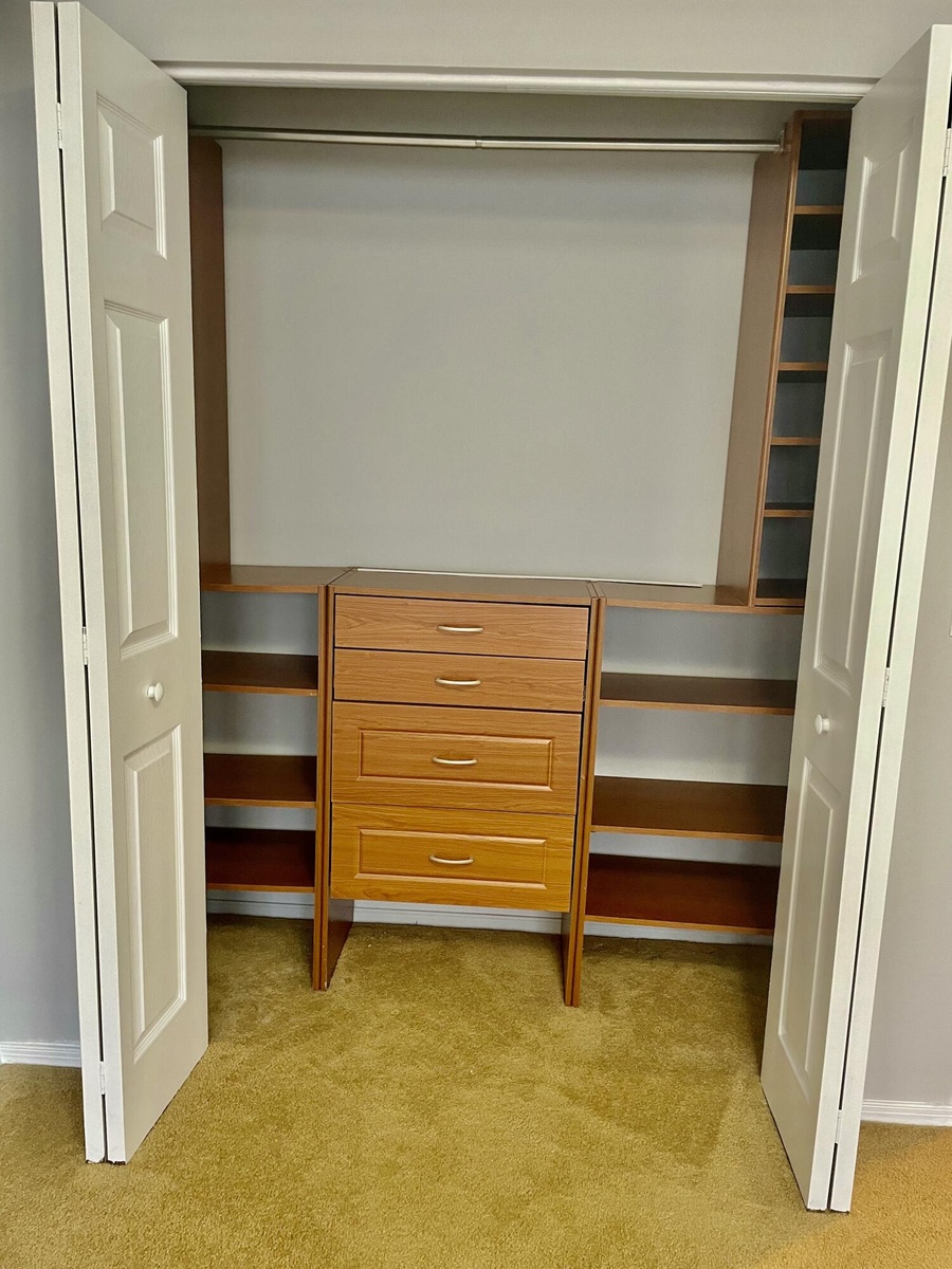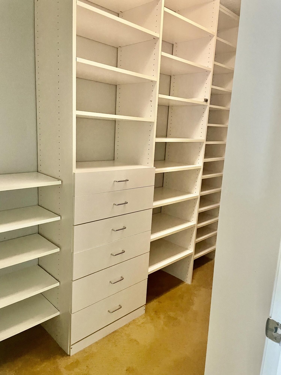 The home includes a two-car garage and generous storage, including custom built-ins in the closets for excellent organization. The open layout provides comfortable living spaces filled with natural light.