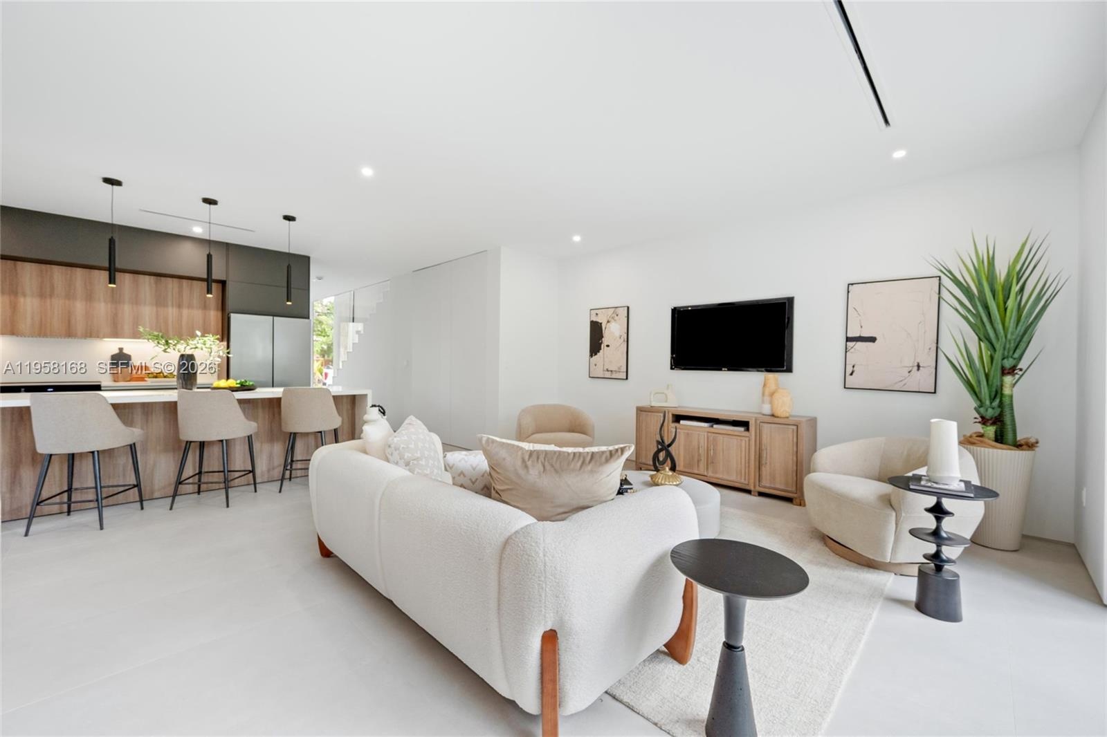 New construction townhome in the heart of Miami featuring 3 bedrooms, 3.5 bathrooms, and 1,691 sq ft of thoughtfully designed living space. This contemporary home showcases clean architectural lines, abundant natural light, and an open-concept layout perfect for today’s lifestyle. The main living area flows seamlessly into a sleek designer kitchen with custom cabinetry, quartz countertops, stainless steel appliances, and a large center island with seating, making it ideal for both entertaining and everyday living. Floor-to-ceiling glass doors bring the outdoors in and open to a private fenced backyard. Upstairs, the spacious primary suite features large windows, serene views, and a spa-inspired bathroom with modern finishes and a glass-enclosed shower. Each additional bedroom offers its own bathroom, providing comfort and privacy for family or guests. Additional highlights include high ceilings, modern lighting, impact windows and doors, balcony access, in-unit laundry, and a private yard perfect for relaxing or entertaining. Conveniently located near dining, shopping, and major Miami attractions. Experience modern Miami living in this beautifully designed home.