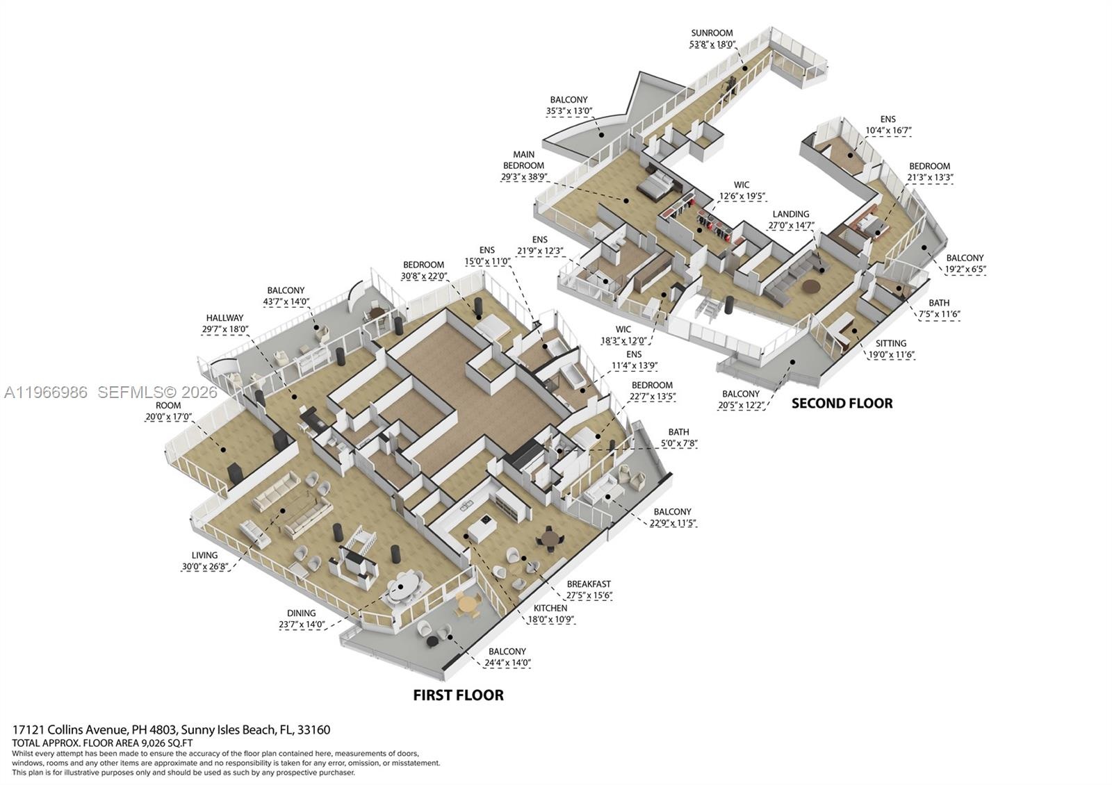 Experience unparalleled luxury in this renovated PH #4803 at Jade Ocean. Boasting 8,332 SF of interior living space, this 6 br, 7.5 ba residence truly lives like a private mansion in the sky. Private elevator opens directly into the unit. Designed for both grand entertaining and elevated everyday living, the home features expansive living + family rooms, along with a soundproofed studio/party room complete with its own bar. The primary suite is a retreat, featuring a dedicated movie room, gym, and sauna. Over $2 million in custom renovations showcase European white oak flooring, stretch ceiling upgrades, and designer lighting. 2,000 SF of terrace space with breathtaking 360 degree views of the Atlantic Ocean, beach, and Intracoastal. Assigned parking spaces Located in P3 #3065, #3044, #3066.