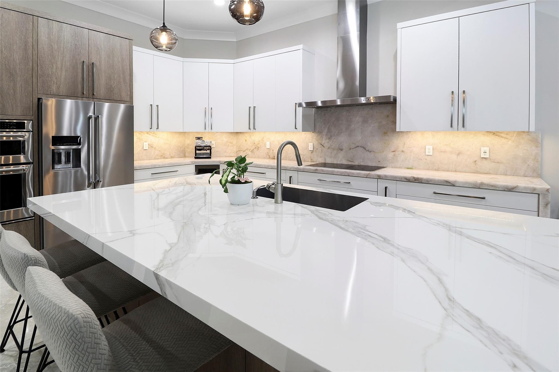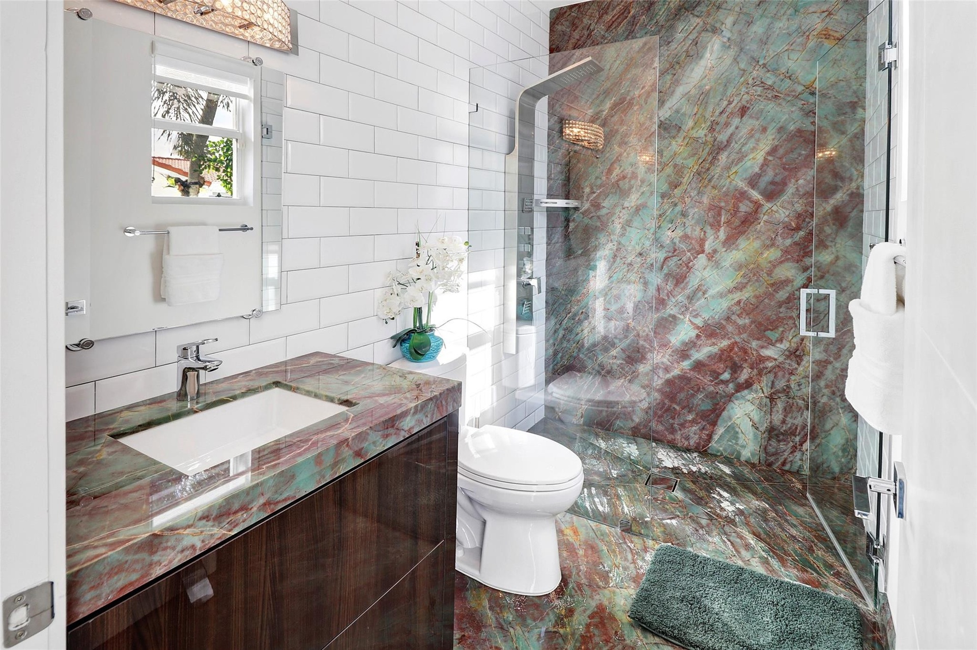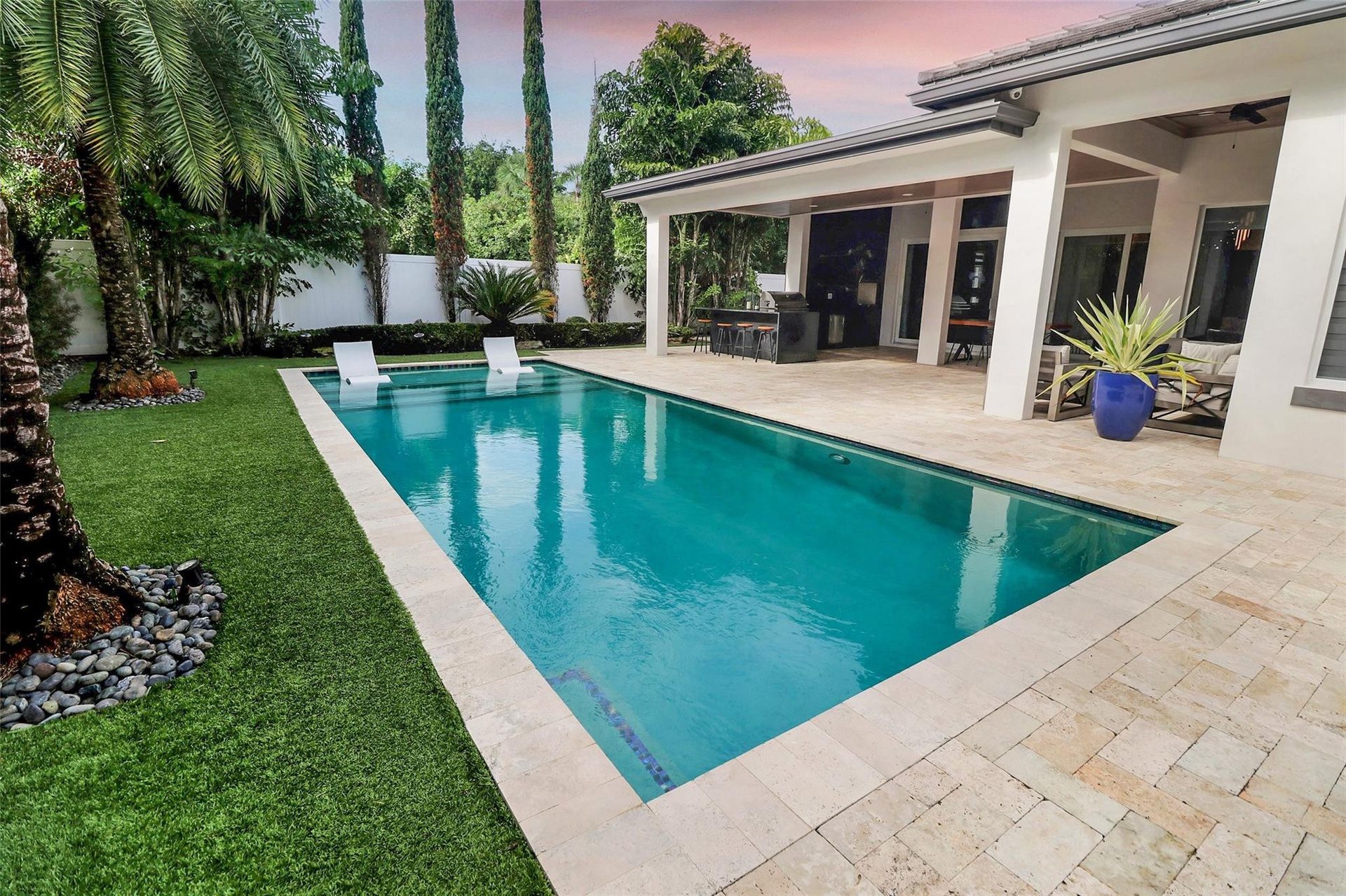Discover unparalleled luxury in this custom-built residence, perfectly situated in East Boca Raton’s most desirable location. Meticulously crafted with premium upgrades—foam insulation, double-insulated walls, designer lighting, Sonos sound, and full security system. A chef’s kitchen showcases custom soft-close cabinetry, Crystallo stone surfaces, induction cooktop, KitchenAid appliances, and an elegant storage-rich island. The primary suite features a stunning Agatha stone accent wall and bespoke closets. Enjoy a resort-style outdoor oasis with a quartzite-clad summer kitchen, dual BBQs, travertine pavers, saltwater pool, custom shed, and PGT impact doors and windows. Experience luxury living in this custom-built residence, crafted with exceptional quality and thoughtful upgrades throughout. This immaculate home features full foam attic insulation, double-insulated exterior walls, flat ceilings with recessed lighting, a whole-home Sonos sound system, full camera surveillance, solid wood doors, and custom curtains.The designer kitchen offers custom soft-close cabinetry, Crystallo countertops with a porcelain slab backsplash, an induction cooktop, KitchenAid appliances, a wine cooler, exterior-vented exhaust fan, and an oversized island with storage on both sides.The primary suite impresses with a custom wood-panel feature wall accented by semi-precious Agatha stone, custom bathroom cabinetry, and fully built-out closets. The cabana bath is finished floor-to-ceiling in natural quartzite stone.Outdoor living is elevated with a fully equipped outdoor kitchen, including a striking avocado-green quartzite full-wall backsplash and two built-in barbecue styles. Enjoy travertine pavers, a saltwater pool, foam-insulated tongue-and-groove ceilings, custom landscaping, and a custom storage shed. Home is secured with PGT high-impact doors and windows.A rare opportunity to own a truly bespoke home with premium finishes and craftsmanship at every turn.
