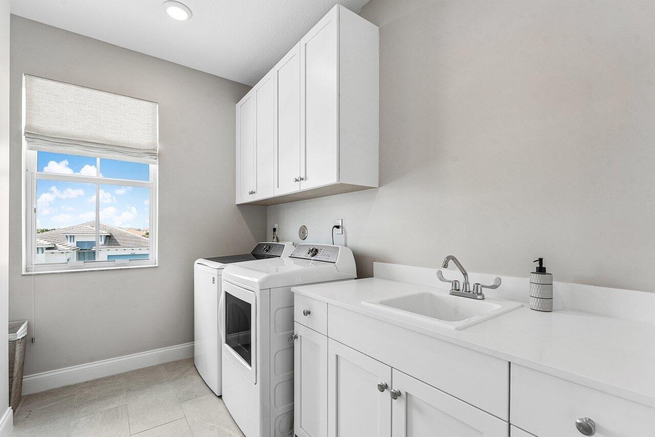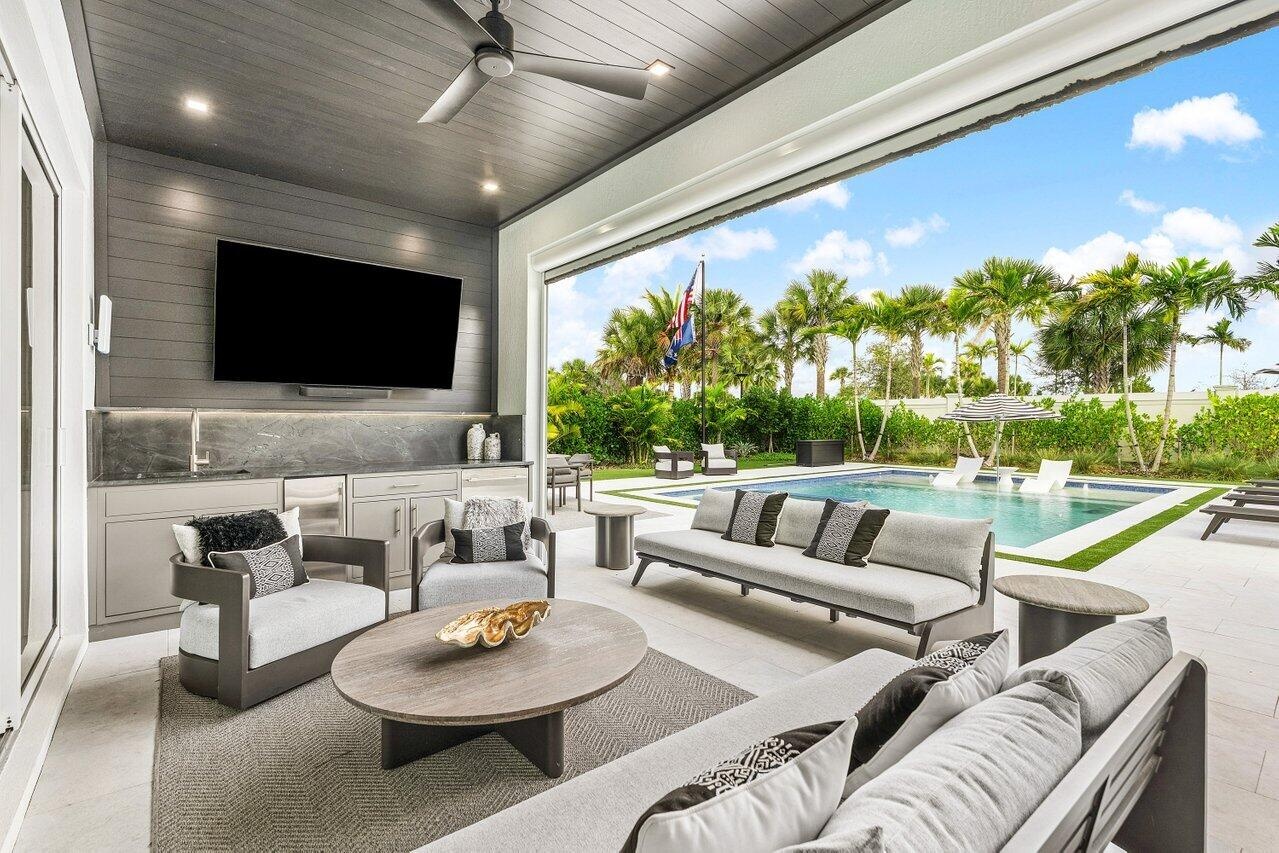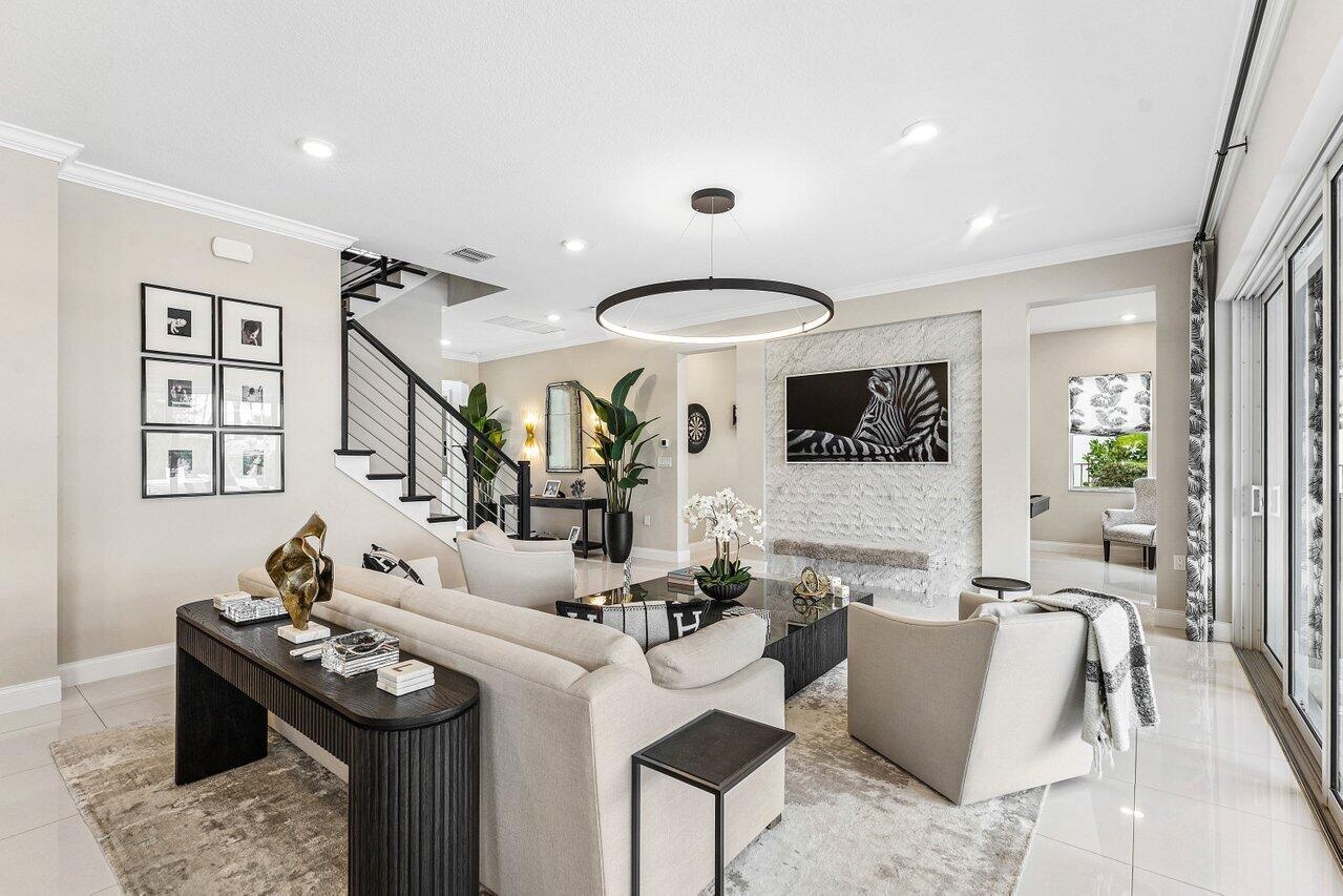 Welcome to luxury living in Avenir! Built in 2023, this stunning Rosada model -- the largest floor plan available -- offers 5,156 total square feet of thoughtfully designed space on the second largest lot in the community, providing privacy, scale, and presence that's hard to find. This 5-bedroom, 4.5-bath residence blends modern elegance with high-end upgrades throughout. With over $400k in enhancements, this open-concept design showcases expansive living areas, soaring ceilings, and a seamless indoor-outdoor flow perfect for entertaining. Step outside to your private backyard retreat featuring a 5-foot-deep saltwater pool with a natural gas heater and heat pump system, ideal for year-round enjoyment. Beautiful marble accents elevate both the interior and exterior spaces, including a custom marble TV feature wall that creates a dramatic focal point. Designed for comfort and convenience, the home includes: " 26KW full-house generator " Whole-house water filtration system " Sonos surround sound system & sub " Tesla charging station " Two-zone A/C system " Insulated garage doors " Garage A/C split system with epoxy flooring Every detail was carefully selected to deliver efficiency, durability, and modern luxury. Situated in one of Palm Beach Gardens' most sought-after communities, Avenir offers resort-style amenities, nature preserves, and an unmatched lifestyle. This is not just the biggest model -- it's one of the most upgraded and best-positioned homes in the neighborhood. Situated in a top school district this Home is Minutes from upscale shopping and dining, Atlantic Beaches, world class marinas and Palm Beach Island with easy access to the PBI airport, Brightline high-speed train and major highways. Private showings available upon request.