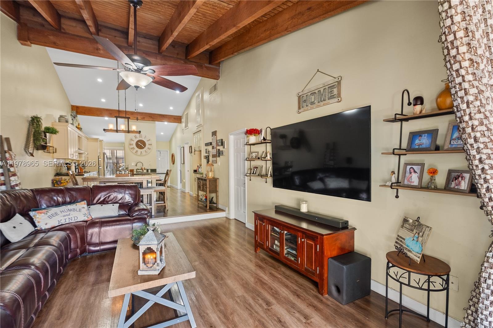 Beautifully updated 2 bedroom, 2 bath corner unit with an open floor plan and stunning vaulted cedar beam ceilings, located in the highly desirable Cedarwoods community of Pembroke Lakes.