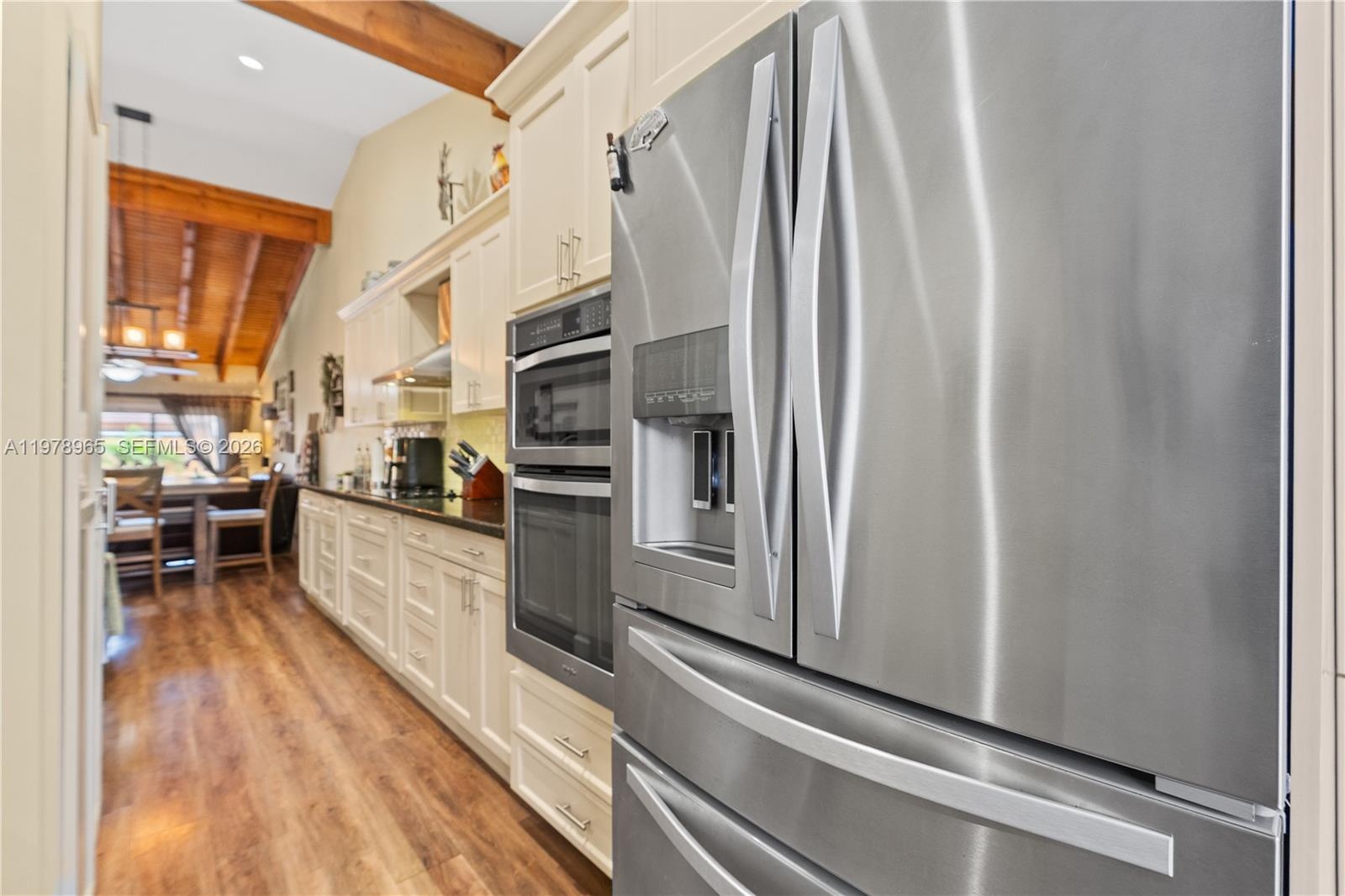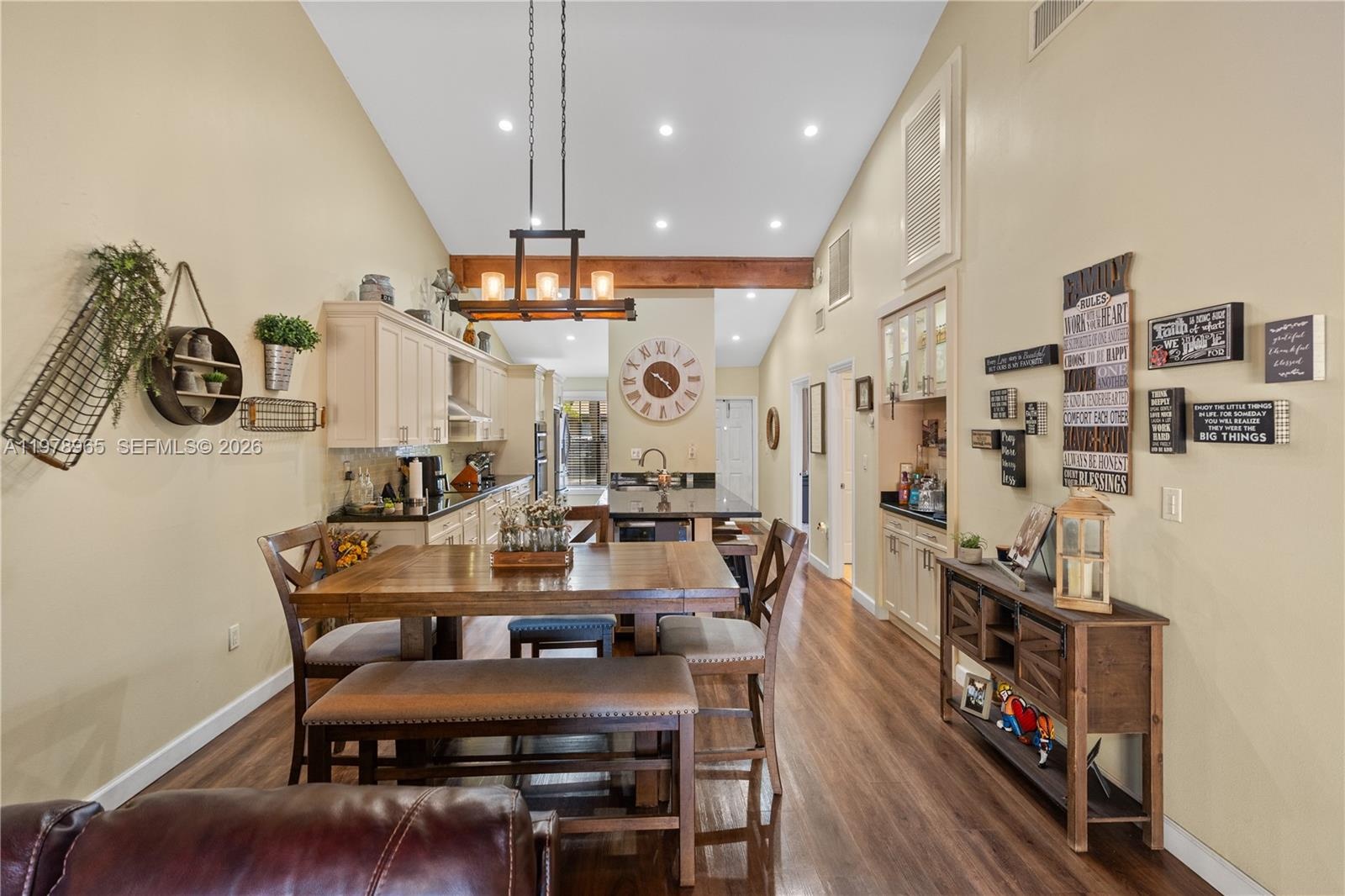 Beautifully updated 2-bedroom, 2-bath corner unit with an open floor plan and stunning vaulted cedar beam ceilings, located in the highly desirable Cedarwoods community of Pembroke Lakes. The home features craftsman-style kitchen cabinets, quartz countertops, stainless steel appliances, wall oven, glass cooktop, and a large pantry. Spacious bedrooms each offer large walk-in closets. Enjoy entertaining on the covered patio, plus the convenience of a storage shed and deeded parking. Located in an A-rated school district and just minutes from shopping, restaurants, parks, and only 20 minutes to Hollywood Beach. Pet-friendly community that borders a beautiful 40-acre lake with a scenic walking path. Just 5 minutes from Pembroke Lakes Golf & Country Club. A wonderful opportunity to live in one of Pembroke Lakes’ most sought-after neighborhoods!