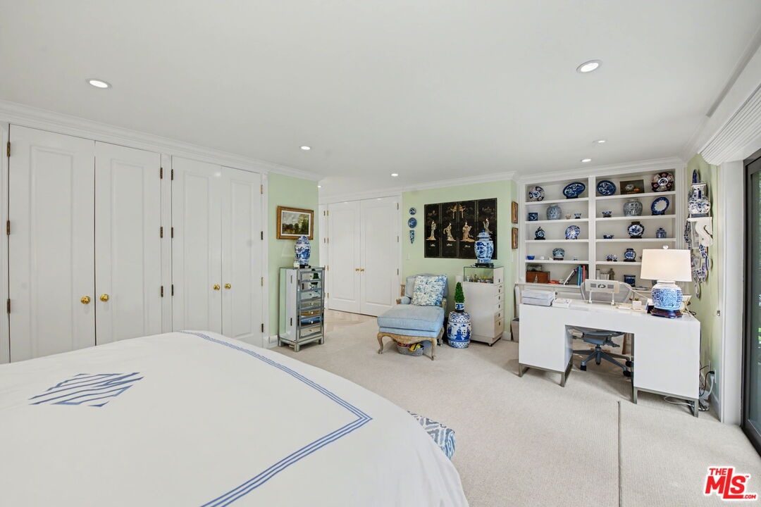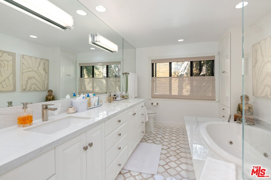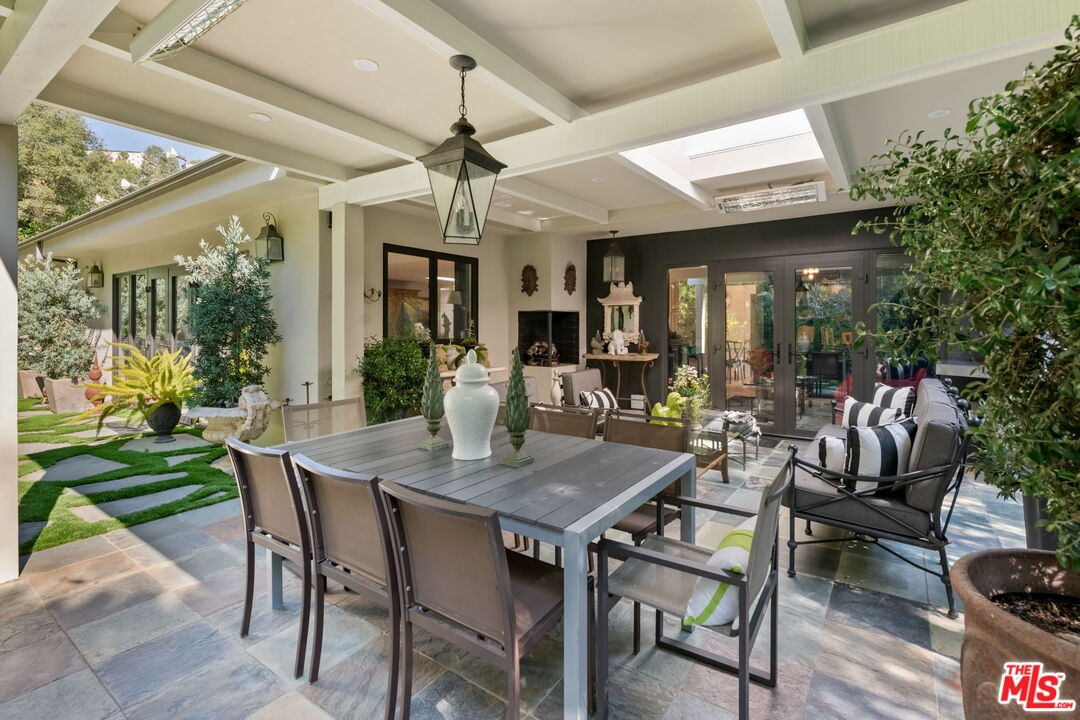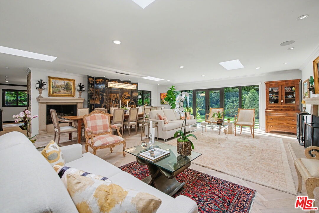 New look! New photos! New price! Please take note! Extensively and quite recently remodeled with exquisite taste and superior quality, this very special, light and bright one-story home harmoniously blends comfort and style and has been meticulously and painstakingly maintained. Its open and sensible floor plan begins at the formal foyer, leading to the sky-lit living room and dining area designed with the elegant entertainer in mind. This very expansive area, with its light-hued herringbone-patterned wood floors and two stone-clad fireplaces, opens easily to the backyard for seamless indoor-outdoor flow. The family room is warm and cozy with its wet bar and fireplace and opens to the fabulous outdoor living and dining room, complete with a barbecue area, outdoor fireplace and comfort heaters. The chef's kitchen has a breakfast area, quartz countertops, stainless steel appliances and double ovens. There are four bedrooms in total. The primary suite, also opening to the backyard, is truly wonderful with its generous closet space, many built-ins, beautiful spa-like bath and sitting area. Adjacent are two spacious bedrooms sharing a tasteful hall bath. The fourth bedroom is located by the kitchen, perfect as a gym, nanny's or housekeeper's room. The backyard is nothing short of glorious, every inch professionally landscaped. A true paradise, there is natural beauty to behold everywhere, all amidst the soothing sounds of an artfully-crafted cascading waterfall. There's also a separate multi-purpose art studio in the backyard, as well. Extensive updates, many of them quite recent, include central air and heat, metal doors and windows, many exquisitely-crafted built-ins, multiple skylights, recessed lighting, art-focused lighting, a separate generator connected also to the gas line, a Tesla car charging port, a new roof, a security system and so much more. The garage has extra storage and offers direct access into the house. Please ask the agents for a comprehensive list of updates. Inclusion in the very desirable public school districts which include Kenter Elementary School, Paul Revere Middle School and Palisades High School. All this, moments from the town center with all the shopping, dining and services that Brentwood offers.