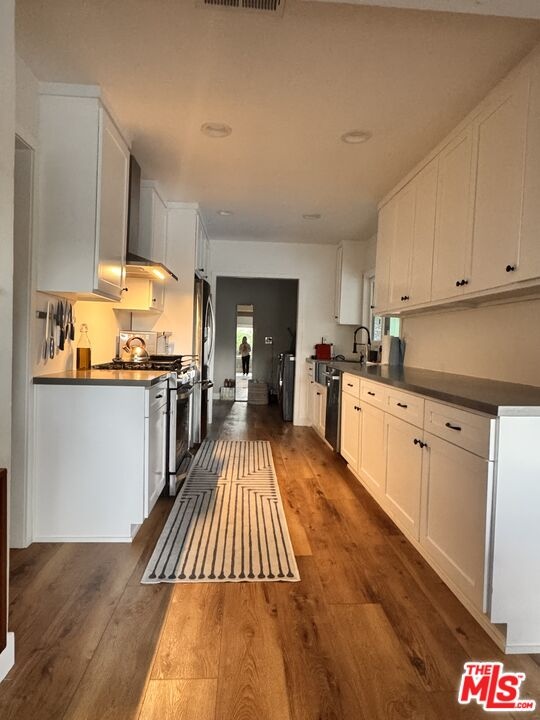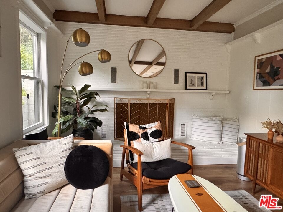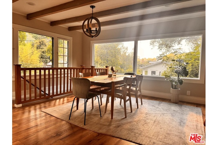 Rare canyon-view bungalow in coveted Laurel Canyon. Nestled in one of Los Angeles' most iconic and storied neighborhoods, this 2-bedroom, 2-bathroom bungalow in Laurel Canyon offered furnished or unfurnished seamlessly blends modern updates with timeless charm. Inside, a bright open-concept floor plan is filled with natural light pouring through expansive windows, perfectly framing breathtaking, protected canyon views. At the heart of the home, a striking stone fireplace sits beneath soaring ceilings and rustic wood beams, creating a warm and inviting living space. The updated kitchen features LG appliances including a refrigerator, stove, and dishwasher along with a Cuisinart convection oven, while the adjacent laundry area includes a conveniently located LG washer and dryer. Upstairs, you'll find a beautifully renovated bathroom and a flexible layout that includes a bedroom, home office space, and a cozy guest sleeping loft. The lower level offers a serene ensuite bedroom with direct access to the garden, providing a private retreat surrounded by nature. Additional highlights include a spacious two-car garage and close proximity to Wonderland Avenue Elementary School, one of Los Angeles' most sought-after and award-winning schools. Just minutes from the vibrant dining and entertainment of the Sunset Strip yet tucked away near some of Southern California's most scenic hiking trails this home offers the perfect balance of city convenience and canyon tranquility.