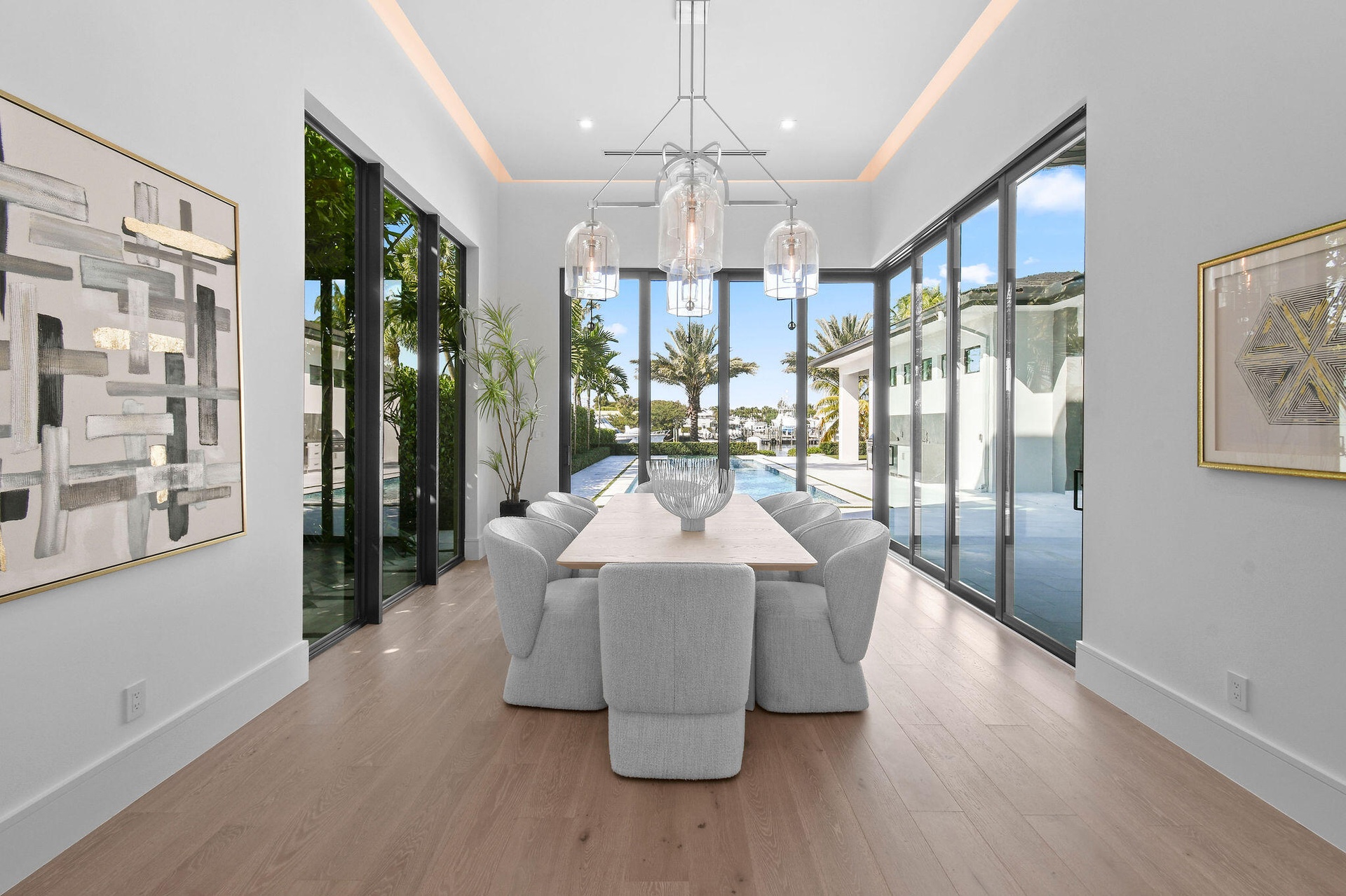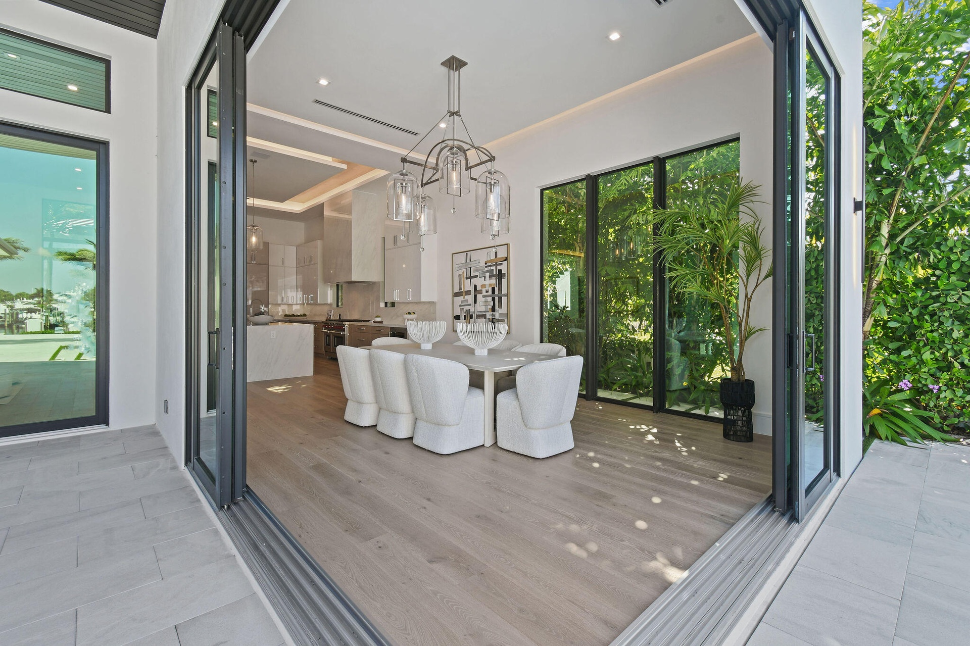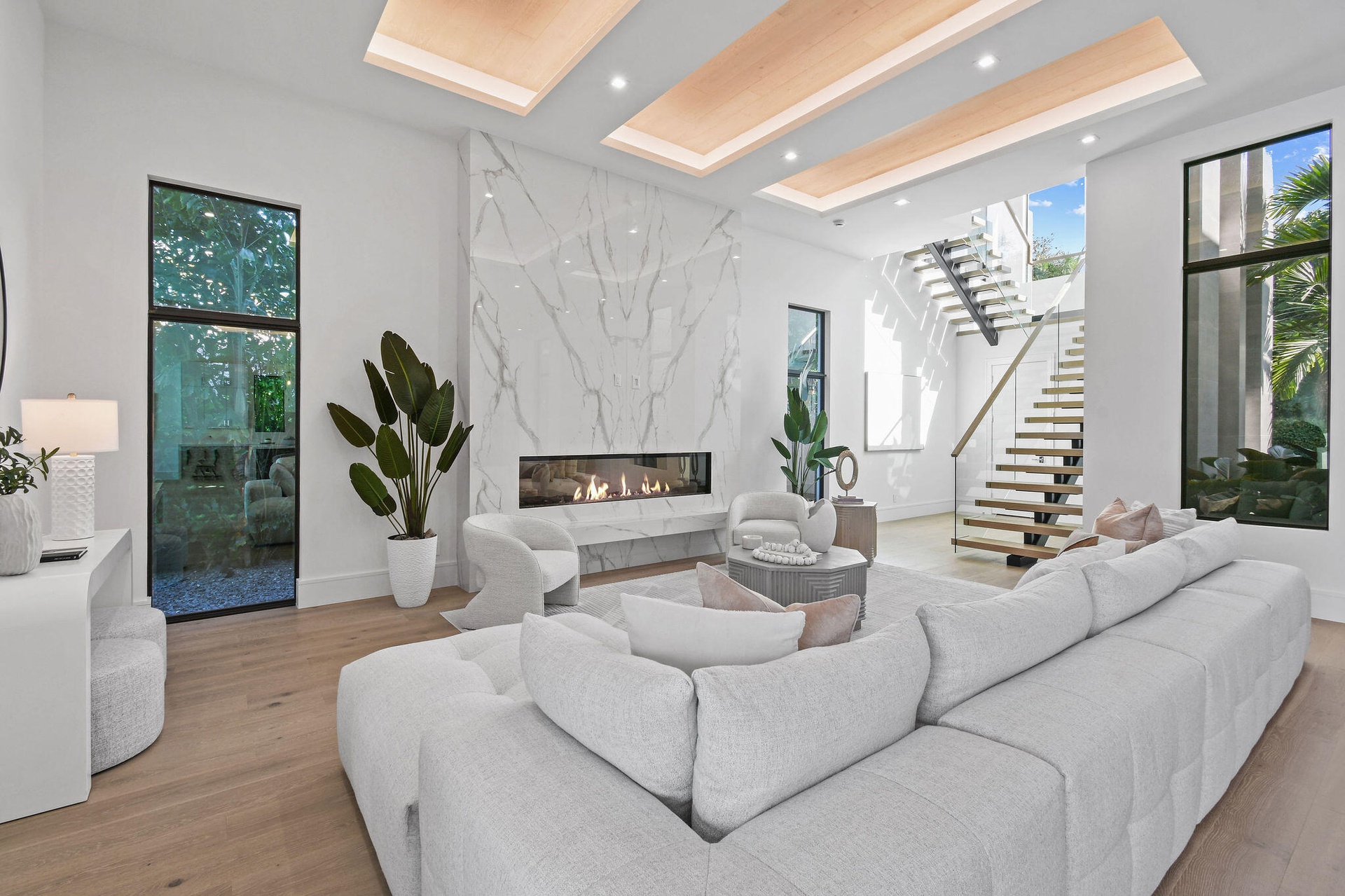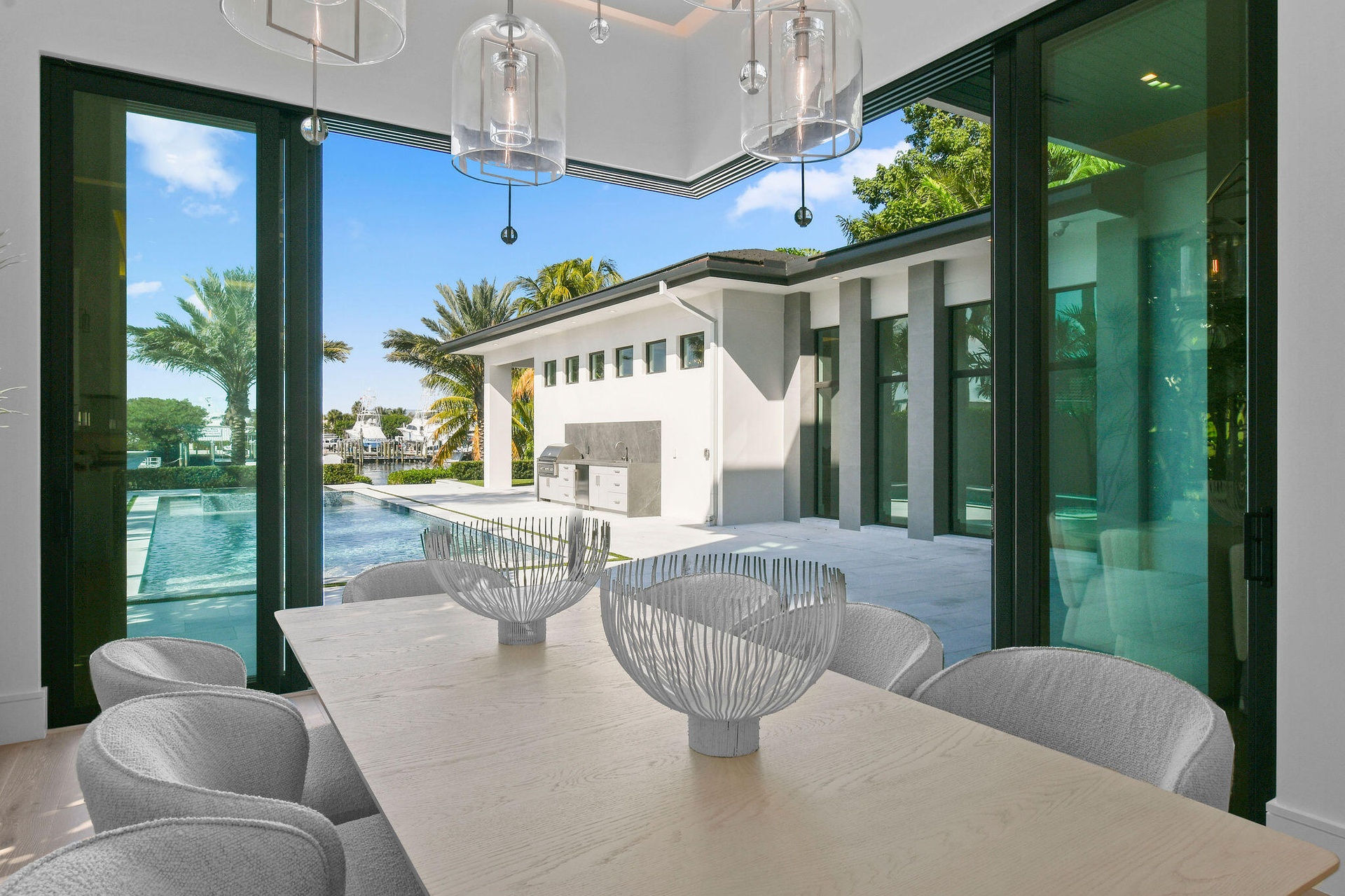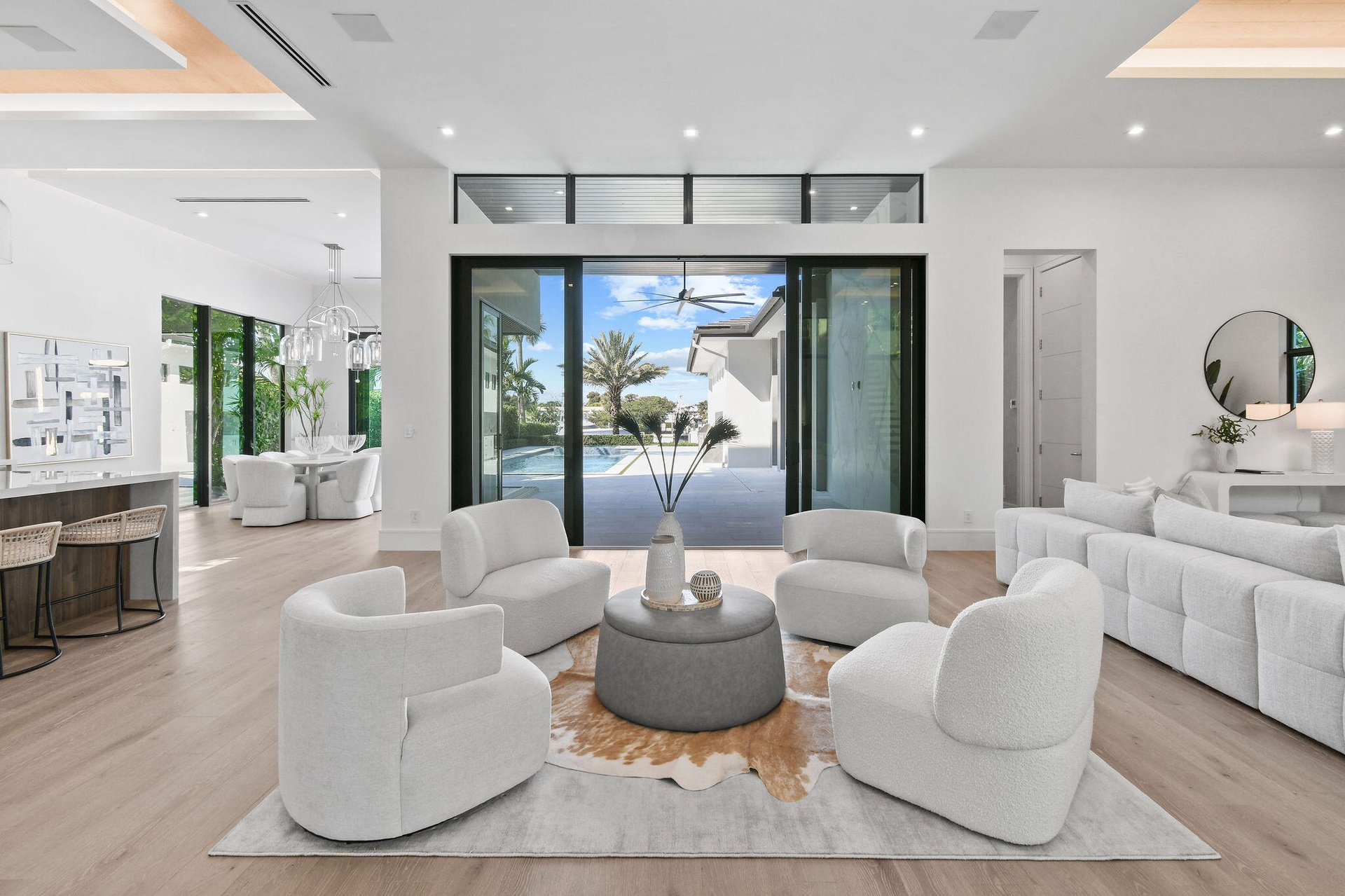 Newly built Intracoastal estate positioned on over half an acre along the direct Intracoastal. This privately gated modern estate embodies uncompromising craftsmanship and refined contemporary living. Completed with a structural integrity seldom seen in residential construction, the home and pool are supported by 106 helical piles, establishing a foundation built for permanence and peace of mind. Thoughtfully designed to merge the architecture with its waterfront surroundings, the residence showcases clean lines, expansive glass, and seamless indoor-outdoor living. A spacious motor court and gated entry offer complete privacy upon arrival, framed by illuminated, meticulously designed landscaping, turf grounds, and custom hardscape inlays. Inside, the home reveals 12-foot ceilings with with elegant light coves, rich decorative accents, and 10-foot impact-rated windows and sliders that capture serene water vistas. A sculptural floating staircase with open risers serves as a central architectural statement, while 10-foot solid-core doors enhance the sense of scale and luxury throughout the first floor. The gourmet kitchen features Sub-Zero and Wolf appliances and wide-plank oak flooring that continues throughout the residence. Smart-home living is fully realized through a complete Control4 system offering wireless control of lighting, climate, security, and more. Outdoor living is resort-inspired, highlighted by a saltwater pool and a 360-degree spillover spa set against the tranquil backdrop of a no-wake zone. With no fixed bridges, boating access remains effortless and unobstructed. Additional features include an elegant mitered hip and ridge tile roof, extensive soffit and landscape lighting, ample parking, and efficient gas tankless water heaters. A true expression of modern coastal luxury, this exceptional estate delivers a lifestyle defined by quality, tranquility, and architectural excellence, an extraordinary offering on the North Palm Beach waterfront.