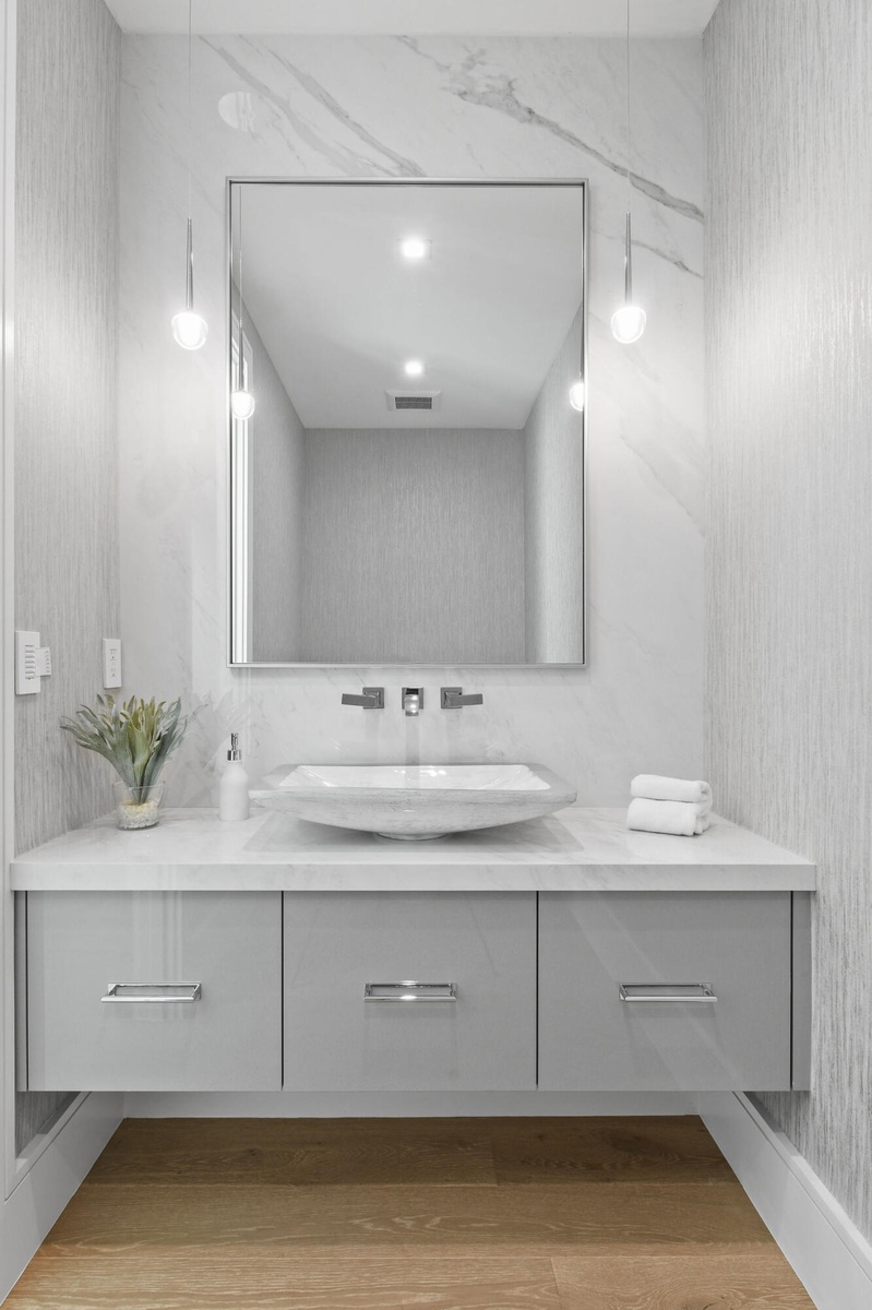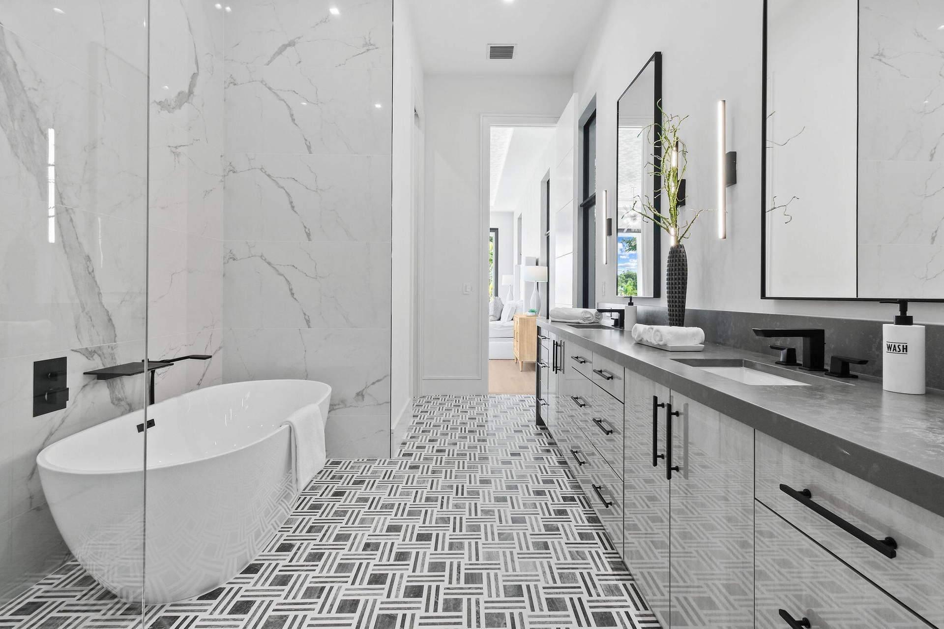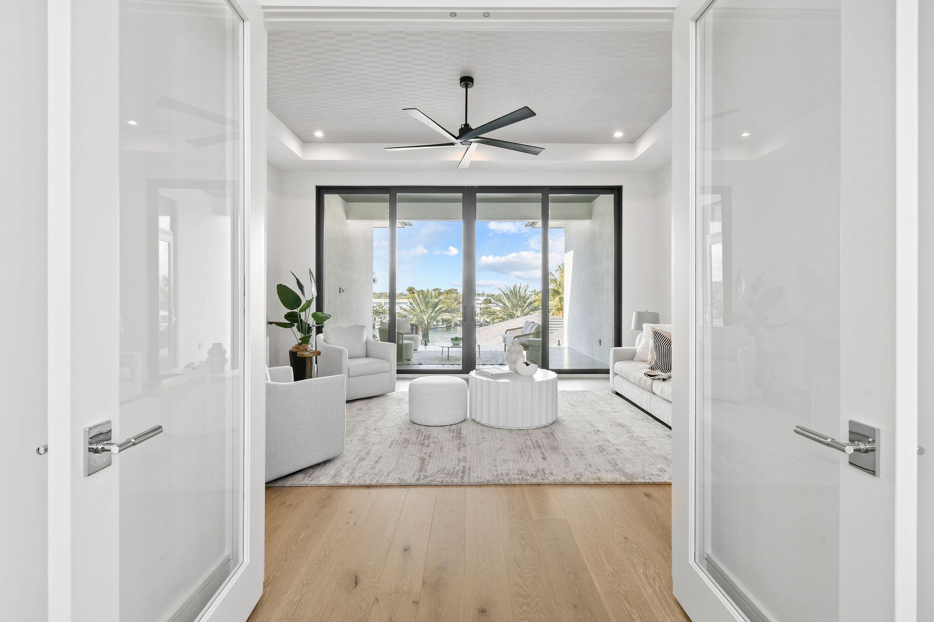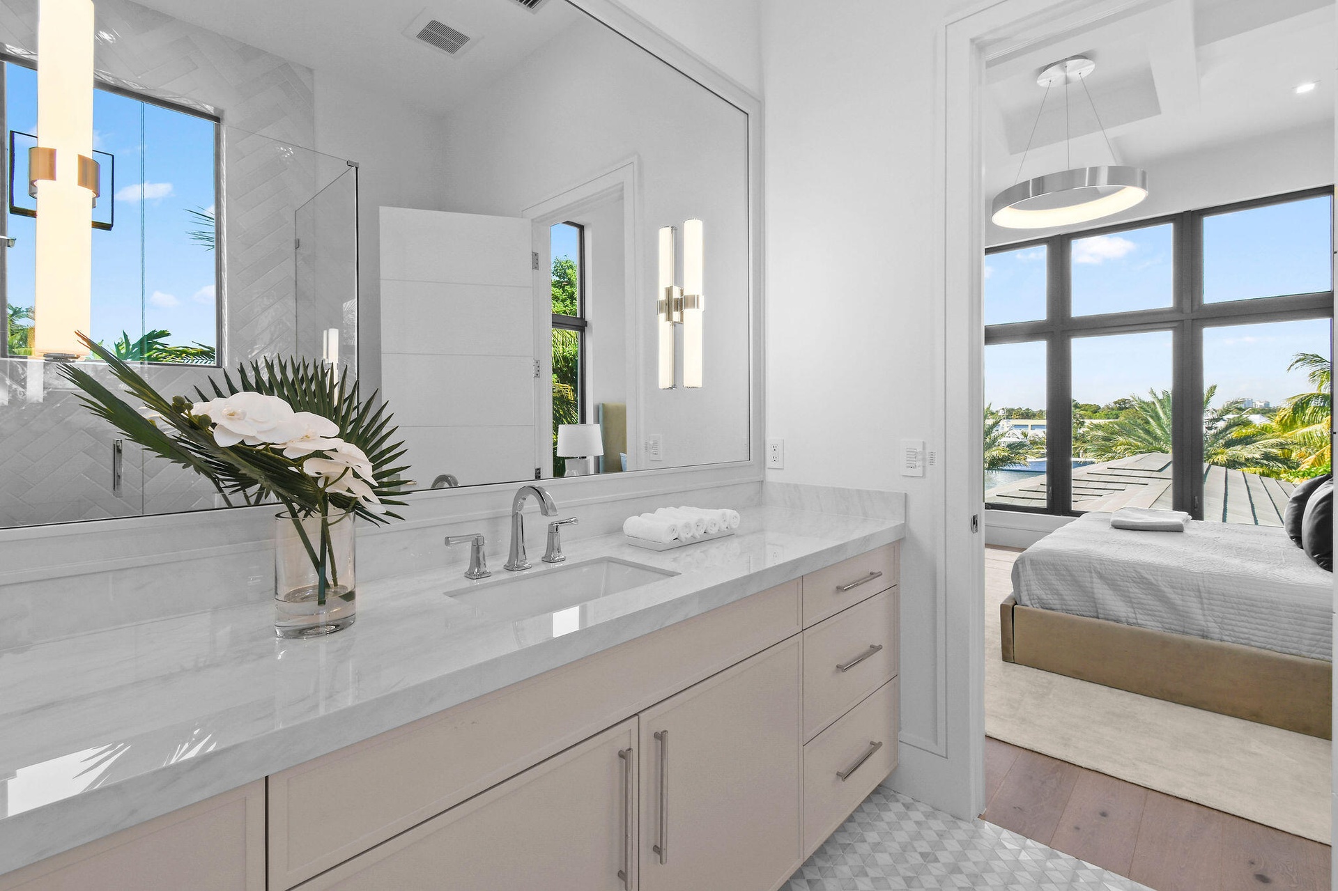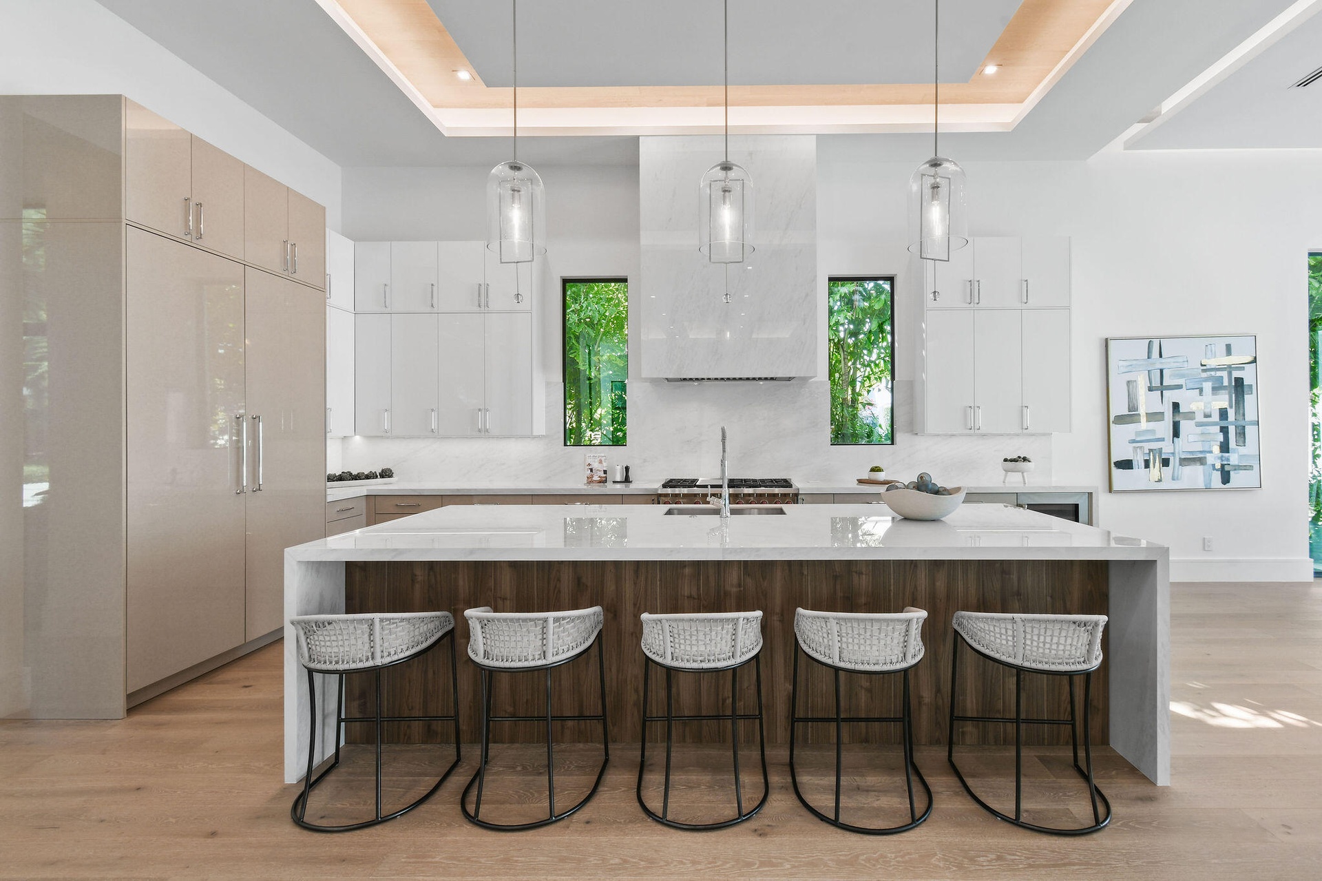 Newly built Intracoastal estate positioned on over half an acre along the direct Intracoastal. This privately gated modern estate embodies uncompromising craftsmanship and refined contemporary living. Completed with a structural integrity seldom seen in residential construction, the home and pool are supported by 106 helical piles, establishing a foundation built for permanence and peace of mind. Thoughtfully designed to merge the architecture with its waterfront surroundings, the residence showcases clean lines, expansive glass, and seamless indoor-outdoor living. A spacious motor court and gated entry offer complete privacy upon arrival, framed by illuminated, meticulously designed landscaping, turf grounds, and custom hardscape inlays. Inside, the home reveals 12-foot ceilings with with elegant light coves, rich decorative accents, and 10-foot impact-rated windows and sliders that capture serene water vistas. A sculptural floating staircase with open risers serves as a central architectural statement, while 10-foot solid-core doors enhance the sense of scale and luxury throughout the first floor. The gourmet kitchen features Sub-Zero and Wolf appliances and wide-plank oak flooring that continues throughout the residence. Smart-home living is fully realized through a complete Control4 system offering wireless control of lighting, climate, security, and more. Outdoor living is resort-inspired, highlighted by a saltwater pool and a 360-degree spillover spa set against the tranquil backdrop of a no-wake zone. With no fixed bridges, boating access remains effortless and unobstructed. Additional features include an elegant mitered hip and ridge tile roof, extensive soffit and landscape lighting, ample parking, and efficient gas tankless water heaters. A true expression of modern coastal luxury, this exceptional estate delivers a lifestyle defined by quality, tranquility, and architectural excellence, an extraordinary offering on the North Palm Beach waterfront.