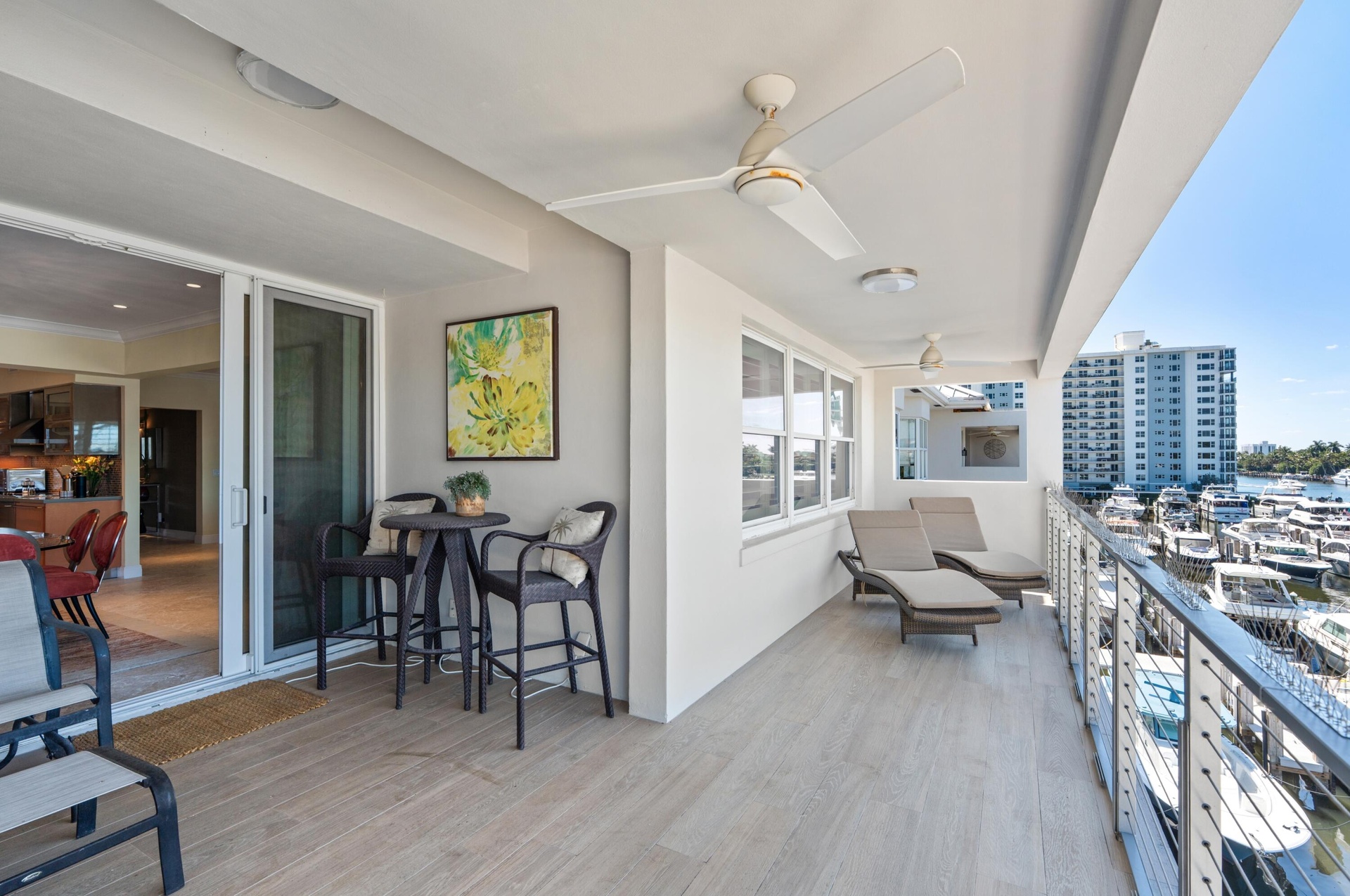 Experience refined coastal living in this rarely available expansive retreat at the exclusive Delray Beach Yacht Club Residences. Encompassing 2,200± square feet of elegantly appointed space, this sophisticated three-bedroom residence is introduced by a semi-private elevator vestibule ensuring both privacy and distinction. Upon entry, stunning sunset Intracoastal views unfold from the living and dining rooms, creating a serene first impression. Floor-to-ceiling sliding doors in the dining area extend the living space to the private water-view balcony, where sweeping vistas of the Seagate Marina and passing yachts provide a picturesque backdrop and set the scene for relaxed entertaining. The redesigned kitchen is finished with top-of-the-line cabinetry, high-end appliances, stone countertops and a breakfast bar that seamlessly connects to the main living and dining area. The primary suite is a serene sanctuary with a bay window facing the Intracoastal, two custom-fitted closets, and a spa-like bathroom, also with a bay window framing water views. Two well-appointed guest bedroom suites complete this residence, while additional conveniences include a full laundry room, a separate service entrance and two assigned garage parking spaces. Near the beach and Atlantic Avenue, this residence delivers the quintessential South Florida lifestyle.