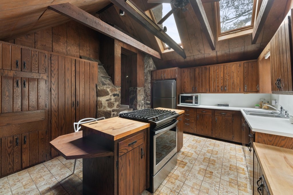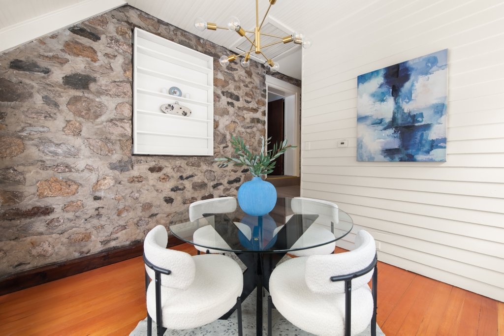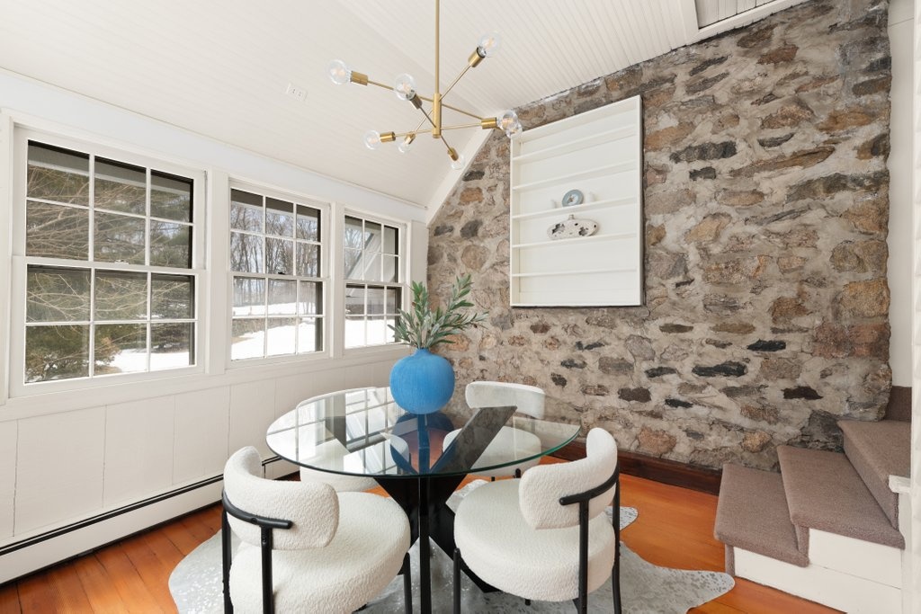 Built in 1840, this charming North Stamford carriage-house residence blends authentic character with an unforgettable layout across multiple levels. Enter into a generous living/family room opening to an outdoor terrace and over an acre of private landscaped grounds-an ideal setting for gathering, relaxing, and enjoying the quiet beauty North Stamford is known for. Two bedrooms are tucked on the second floor, while the home's most striking entertaining space has the homes original door entering into a former sunroom-now a dramatic dining room with cathedral ceiling, and a historic stone wall overlooking the street. Additionally there is a cottage on the property with electricity and perfect for a WFH space. This home has endless possibilities and is truly a rare opportunity to own a property that feels genuinely one-of-a-kind.