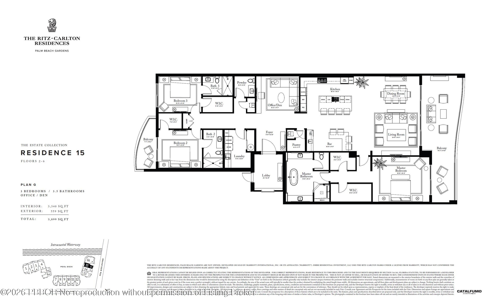 Stunning, expansive residence defined by the service, privacy, and lifestyle of The Ritz-Carlton - The Estate Collection. Offering three bedrooms plus a private office/den and three-and-a-half baths, this residence features approximately 3,340 SF of generous living spaces with floor-to-ceiling windows that extend seamlessly to a 559 SF private terrace with sweeping Intracoastal views. The kitchen features European oak-finish cabinetry, Wolf and Sub-Zero appliances, wine storage, and oversized island. The primary suite is a private retreat with dual walk-in closets and elegant bath. Residents enjoy a private, residential-only building enhanced by over 20k square feet of resort-style amenities and the legendary service standards synonymous with The Ritz-Carlton.