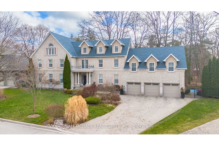 Nestled on a prestigious cul-de-sac in the Erin Mills neighbourhood of Mississauga, this stunning custom-built residence is a true masterpiece. Boasting over 5,000 sq. ft. of total living space, this elegant home offers a harmonious blend of sophistication and modern finishes. Step into the inviting open-concept main level, where seamless flow defines the space. The gourmet kitchen is a culinary dream, featuring top-of-the-line built-in appliances, ceramic floors, ample cabinetry, a bar, and a convenient pantry. Adjacent to the kitchen, the spacious living room, adorned with a cozy fireplace, creates an ambiance of warmth and relaxation. Expansive windows throughout the home bathe the interiors in natural light, while the walk-out access to the backyard promises easy indoor-outdoor living. Enjoy scenic views from the office, adding the perfect touch for remote work or study. The beautifully landscaped backyard is your personal retreat, offering privacy and serenity. Dive into the sparkling inground pool, relax on the interlocked patio, or simply unwind in this tranquil outdoor haven. Venture upstairs to discover the lavish Owner's suite, complete with vaulted ceilings, a spacious walk-in closet, and a spa-like 5-pc ensuite. Three additional bedrooms on this level offer either shared or private ensuite bathrooms, along with generous closet space, ensuring comfort and privacy for all family members. The fully finished walk-out basement is an entertainer's dream, featuring a large recreation room, an additional bedroom for guests, a den that can be transformed into a home theatre or playroom, and a sleek 4-piece bathroom. Offering ample parking with a 3-car garage and a private driveway, this remarkable property is an absolute must-see! Situated among convenient amenities including: top-rated schools, parks, walking trails, Erin Mills Town Centre, premium dining, Credit Valley Hospital, easy access to Hwy 403/401/407, public transit, and GO Station.