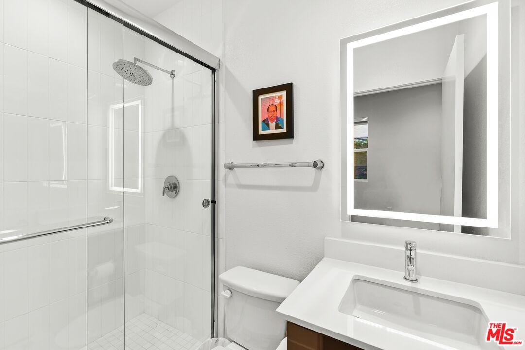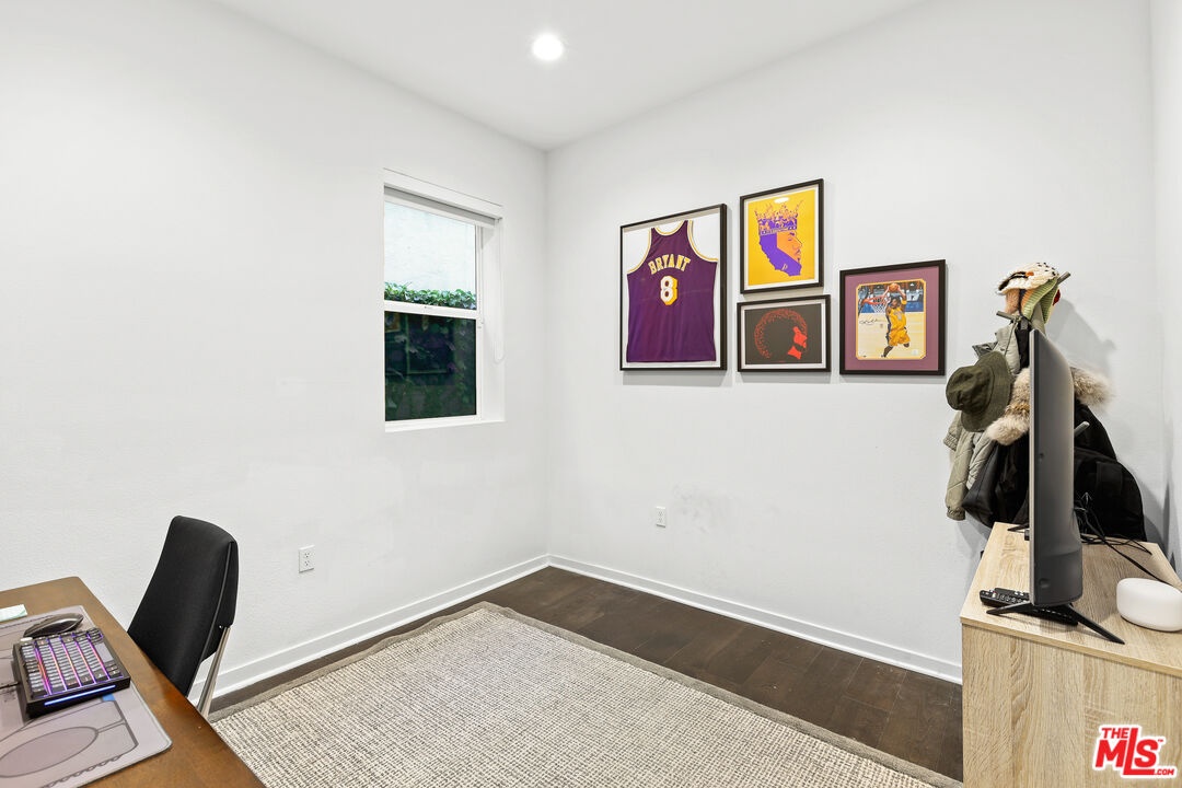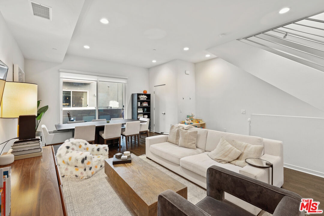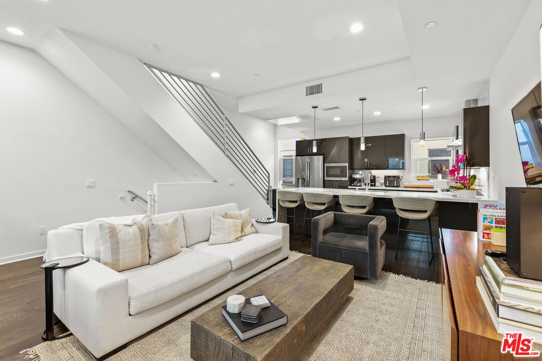 Welcome to 8408 Blackburn Ave a beautifully crafted 3-bedroom, 3.5-bathroom modern home built in 2019, nestled in one of LA's most coveted neighborhoods just south of 3rd Street in Beverly Grove. Part of the 10 Blackburn small lot subdivision, enter on the ground floor to find a private guest bedroom with its own en-suite bath featuring a walk-in shower, then head upstairs to the bright and open main living level where an elegant dining room, spacious family room, and a generous kitchen with GE Profile appliances and ample cabinetry come together seamlessly with a balcony off the dining area and a powder room completing the floor. The third floor is home to two additional bedrooms, including a serene primary suite with a walk-in closet, double vanity, walk-in shower, and private balcony, while the secondary bedroom offers its own en-suite tub/shower bath, and a stacked washer/dryer and built-in storage closet add everyday convenience. All bathrooms are appointed with dimmable LED-lit vanity mirrors, custom window treatments are found throughout, and three motorized shades on the soaring high-ceiling transoms add a seamless finishing touch. Above it all, a professionally turfed rooftop deck with a wind-sensor retractable awning and stunning views of the Hollywood Sign offers the ultimate LA outdoor living experience. The attached 2-car garage features epoxy floors and an EV charging station, and the unbeatable location puts you steps from Joan's on Third, Oste, Izakaya, Bacio Di Latte, and the best of 3rd Street dining and shopping, a 5-minute walk to the Beverly Center, and a 10-minute walk to The Grove and the soon to be brand new, largest Whole Foods on the West Coast a rare turnkey modern home that truly has it all.
