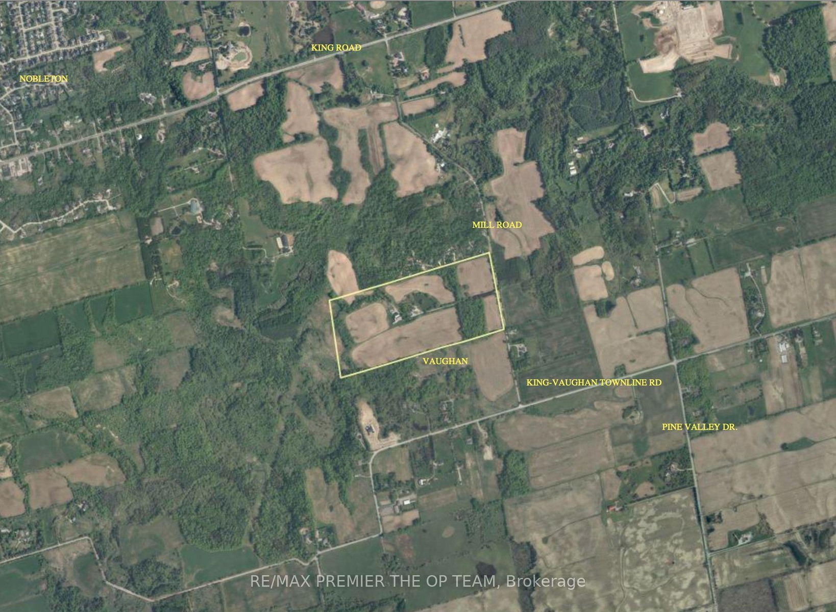 Welcome to the ultra rare opportunity at 12490 Mill Road in King City. This magnificent estate offers 86.4 spectacular acres on the prestigious boundary of Vaughan, just south of King Road. This property unfolds a distinguished estate masterclass in privacy and scale. A Grand gated entrance with a tree-lined drive to a 4-bedroom brick home overlooking a 1 Acre aeriated pond & pool. Farmed acreage for Favourable tax status. 16,000 square foot Large barn, two steel-sided driveshed, and 5-car garage. Mill Road paving planned this year (2026) Large, contiguous parcels of this caliber, particularly along the Vaughan boundary-rarely seldom become available.