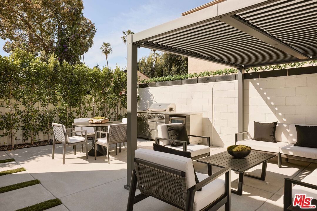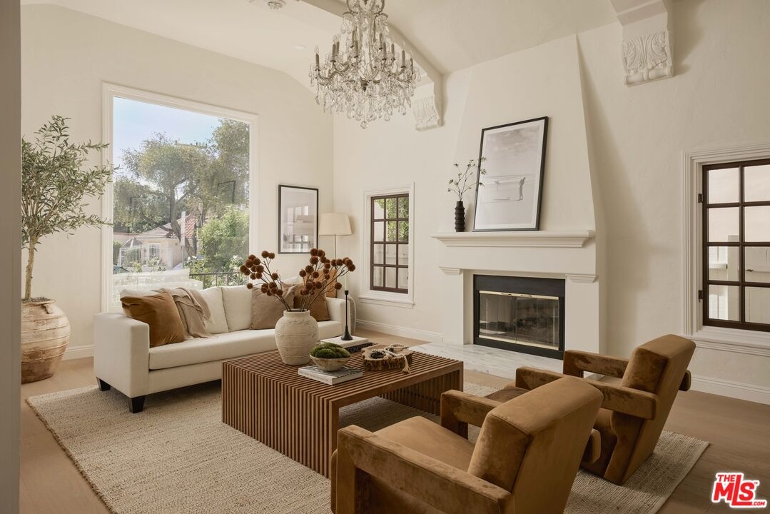 Set behind gates on a coveted residential block south of Burton Way in Beverly Hills, this 1931 Spanish jewel box combines timeless architecture with thoughtful modern refinement. Lush landscaping and a private garden courtyard create a gracious arrival, and the home's facade displays rich architectural texture, original detailing, and beautifully preserved period character. The block is known for its established residential character while remaining closely connected to the heart of Beverly Hills. The home preserves the scale, proportion, and character that define Spanish homes of this era. Inside, the dramatic living room is defined by well-proportioned scale and soaring faceted ceilings accented by original plaster crown moldings and sculptural corbel detailing. A statement fireplace anchors the space, while a large arched picture window frames the garden beyond and reinforces the symmetry. Natural light moves gracefully through the interior throughout the day, while the design balances the home's Spanish heritage with a refined modern interpretation. The dining room and kitchen connect naturally, creating an easy flow for everyday living and informal gatherings. Bedrooms are generously proportioned, including two en suite, and a separate office provides additional space for work or study. Bathrooms have been thoughtfully updated with timeless materials and sophisticated modern fixtures. Outdoor spaces extend naturally from the home, highlighted by a significant stainless steel outdoor kitchen and chef's center designed for outdoor dining and entertaining. Adjacent to the yard, a detached bonus space currently serves as a family play area and offers flexible space for a variety of uses. Ideally positioned within close reach of the Beverly Hills Triangle, the home offers classic architecture with effortless access to the best of Beverly Hills dining and shopping. A 1931 Spanish jewel box in one of Beverly Hills' most desirable residential pockets.