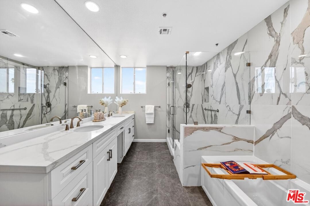 Located on desirable Hancock Park / 3rd Street Elementary School District, this updated corner-unit home offers an open-concept layout with abundant natural light. Each bedroom features its own en-suite bathroom. The spacious primary bedroom includes two closets and a private balcony, while the additional bedrooms offer walk-in closets and private balconies. The remodeled kitchen with a breakfast area flows seamlessly into the living and dining areas. Additional features include a powder room, secured tandem parking, guest parking, and a private storage unit. Conveniently located near Larchmont Village, Miracle Mile, with easy access to shopping, dining, and entertainment.