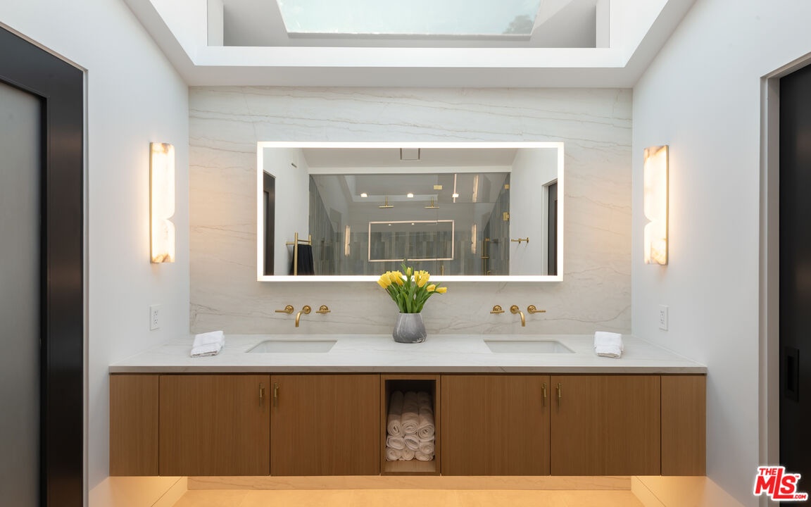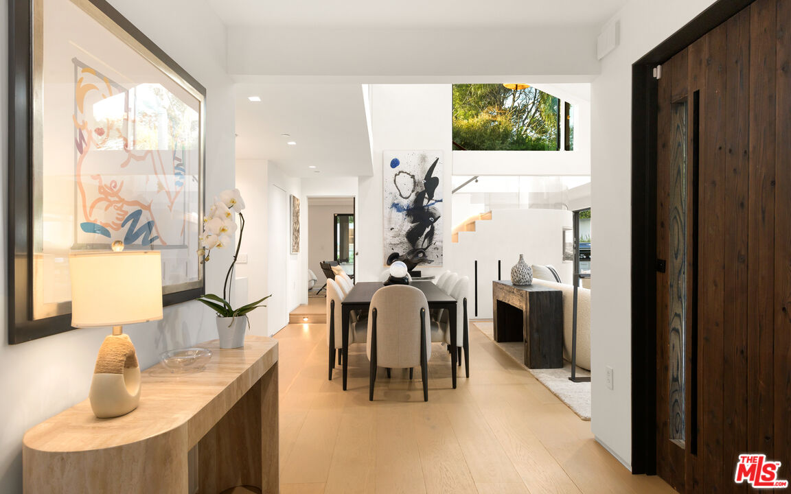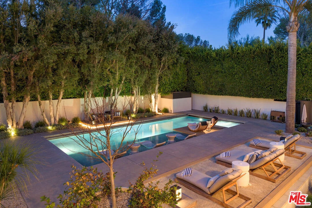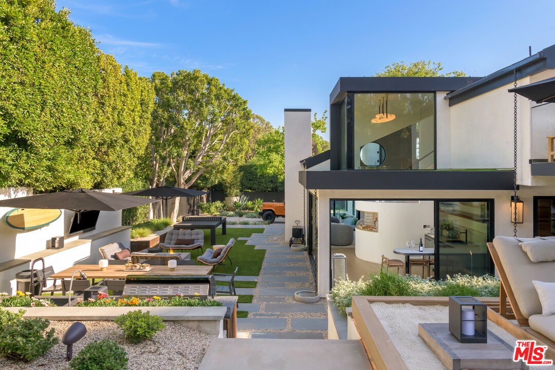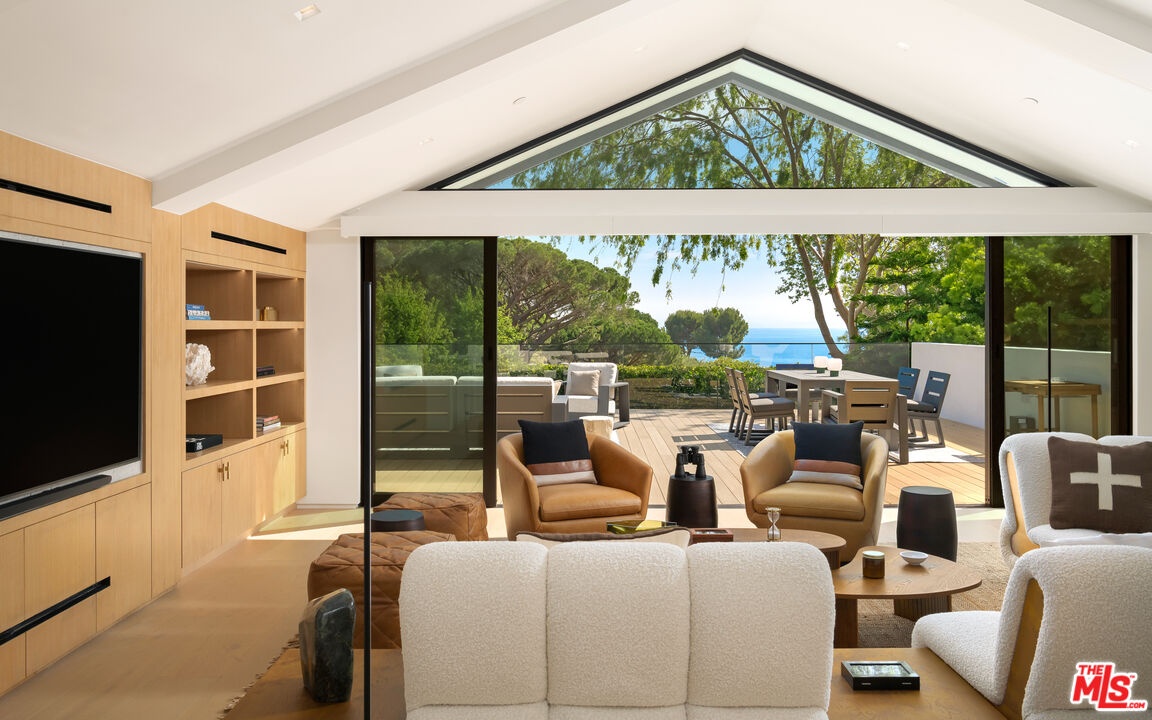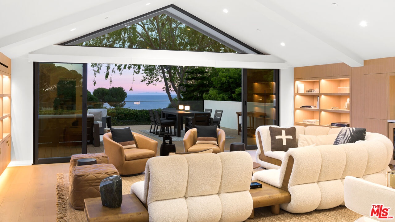 Privately set within a gated coastal enclave, 28022 Sea Lane presents a striking modern retreat where refined design meets effortless coastal living. Thoughtfully composed interiors and beautifully landscaped grounds create a sense of calm and privacy from the moment of arrival.Mature hedging and lush landscaping frame the approach to the home, where stone pathways lead to a reclaimed wood pivot entry door. Multiple outdoor lounge areas, fire pits, and water features create a layered outdoor environment designed for both relaxation and entertaining. Inside, wide plank wood floors and clean architectural lines establish a warm, understated palette. Custom Fleetwood doors and windows allow natural light to move throughout the home while creating a seamless connection to surrounding terraces and gardens. The main living areas unfold in an open, light filled layout where the living room, dining area, and chef's kitchen flow together with ease. A sleek fireplace anchors the living room while expansive sliding glass doors open directly to the outdoor entertaining areas. At the center of the home, the kitchen features a dramatic waterfall island and generous preparation space. Surfaces throughout the kitchen and wet bar are finished in Consentino carbon neutral ultracompact porcelain, complemented by custom millwork by Western Built and handcrafted Heath tile. The kitchen is equipped with Wolf appliances including induction cooking, oven, and microwave. Bedrooms are designed as quiet private retreats, while the bathrooms feature spa inspired finishes with clean lined stone surfaces and carefully integrated lighting.The primary suite offers vaulted ceilings, custom built ins, and sliding doors that open to a private terrace overlooking the landscaped grounds and pool. The suite continues into a large custom closet and dressing area with built-in storage, along with a skylit bathroom featuring dual vanities, a spacious shower with multiple shower heads and bench seating, and a separate water closet with bidet. Materials throughout the residence include Nakamoto Forestry Shou Sugi Ban wood detailing, adding depth and texture to the home's architectural palette. Outdoor living centers around a resort style pool and spa surrounded by landscaped gardens, sun decks, and lounge areas. A covered outdoor fitness area provides space for training, while the outdoor kitchen and dining terrace feature stone counters, built-in grilling, refrigeration drawers, and a Forno Venetzia pizza oven. An outdoor entertainment area includes a SunBrite television and integrated sound.One of the most distinctive features of the property is the private tennis court shared with only one neighboring residence. Adjacent to the court is an additional parcel of land that is solely owned and includes power, water, and a potting shed, offering an ideal setting for a cutting or vegetable garden. Private stairs nearby descend through coastal greenery to the beach, providing a direct connection to the sand and ocean.Modern systems throughout the home include Lutron lighting controls, Sonos audio throughout the residence, and integrated smart home technology. 28022 Sea Lane blends thoughtful architecture, refined materials, and beautifully designed outdoor spaces to create a sophisticated Malibu retreat designed for both entertaining and everyday living.